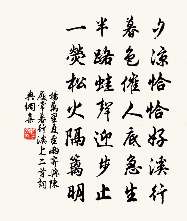 夕涼恰恰好溪行,暮色催人底急生。半路蛙聲迎步止,一熒松火隔籬明。