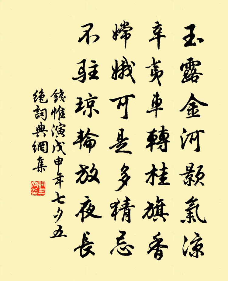 詩詞名句歷史字典書法欣賞書法字典國語詞典說文解字康熙字典古漢語字典標 題 作 者 詩 句 戊申年七夕五絕作者:錢惟演 朝代:宋代戊申年七夕五絕原文玉露金河顥氣涼,辛夷車轉桂旗香。嫦娥可是多猜忌,不駐瓊輪放夜長。詩詞問答問:戊申年七夕五絕的作者是誰?答:錢惟演問:戊申年七夕五絕寫於哪個朝代?答:宋代錢惟演戊申年七夕五絕書法欣賞戊申年七夕五絕書法作品詩詞推薦過李山人居仇遠〔宋代〕數椽竹屋傍秋江,屋外疏籬隔柳樁。客至旋分垂釣石,雨來自掩讀書窗。痴兒弄鏡時翻背,小婦彈箏不識腔。自古過滄浪峽劉滄〔唐代〕山疊雲重一徑幽,蒼苔古石瀨清流。出岩樹色見來靜,落澗泉聲長自秋。遠入虛明思白帝,寒生浩景想滄洲。如何奉和武功學士舍人紀贈文懿大師淨公徐鉉〔唐代〕已潔心源超世表,卻緣詩句有時名。初聞行業如耆宿,及見容顏是後生。寒食相將諸子游翟得園十詩楊萬里〔宋代〕小小茅亭短短窗,海棠圍里柳中央。乍晴萱草渾無力,落盡梅花尚有香。雜興十首劉克莊〔宋代〕諸公袞袞一番新,留得山林著放臣。鞍破馬移它廄去,巢空燕覺主家貧。甥陪棋局何須客,兒舉籃輿不覓人。膜外姬人怨服散篇江總〔隋代〕薄命夫壻好神仙。逆愁高飛向紫煙。金丹欲成猶百鍊。玉酒新熟幾千年。妾家邯鄲好輕薄。特忿仙童一丸藥。自悲聽南僧說偈詞施肩吾〔唐代〕師子座中香已發,西方佛偈南僧說。惠風吹盡六條塵,清淨水中初見月。京口留別張思順姜夔〔宋代〕伯勞飛燕若為忙,還憶東齋夜共床。別後無書非棄我,春前會面卻它鄉。連宵為說經憂患,異日相逢各老蒼。更欲香橘二首李石〔宋代〕霜余裊裊擷秋芳,露洗娟娟百寶光。齡冷欲餐瓊樹玉,手溫誰握洞庭香。挽恭靖司法兄九首劉宰〔宋代〕踏遍山崖與水邊,要教皇澤下氓編。祗今桐汭民猶活,問訊南昌尉已仙。早梅蒲壽宬〔宋代〕荷已全凋菊未殘,一枝的皪照江乾。暖風莫詫攙先意,留取清芬待歲寒。偈頌七十六首釋師範〔宋代〕達磨西來,添鹽減醬。後代兒孫,千般萬樣。誰信碁盤石,元在凌霄上。山僧恁麽道,已是龜毛長數丈。詠史上漢高帝八首陳普〔宋代〕欲來不解自操持,白日明庭抱愛姬。世降的從何處起,醉眠王母二家時。江夏八詠之二右靈竹寺賀鑄〔宋代〕高岸已為谷,斯人如蛻蟬。固應留寶刻,信示當家仙。宿屺瞻夜賦馬廷鸞〔宋代〕六十年前我已孤,嬰兒抱母泣呱呱。昊天罔極幽明隔,良月就盈今昔殊。雲塞斷行悲獨雁,風林反哺感群烏。澄江蝶戀花(醉宿鄭氏閣)朱松〔宋代〕清曉方塘開一鏡。落絮飛花,肯向春風定。點破翠奩人未醒。餘寒猶倚芭蕉勁。擬托行雲醫酒病。簾卷閒愁,空占宋江三十六贊龔開〔宋代〕長髯郁然,美哉丰姿。忍使尺宅,而見愁眉。聞葉正則閱藏經次其送客韻以問之陳傅良〔宋代〕順水去吳會,逆水來夔門。萬古逆順舟,以斗占旦昏。曩余好百家,信不及魯論。初亦半喜愕,久之乍亡存。白髮齋戒滿夜,戲招夢得白居易〔唐代〕紗籠燈下道場前,白日持齋夜坐禪。無復更思身外事,未能全盡世間緣。明朝又擬親杯酒,今夕先聞理管弦。方丈釣竿文同〔宋代〕霜刀裁綠筠,桂餌掛輕緡。斂跡天地間,側身江海濱。悠悠寶帳夜,寂寂煙波春。何時投竿歸,再與君子親。名句推薦日長睡起無情思,閒看兒童捉柳花。楊萬里《閒居初夏午睡起》 為問暗香閒艷,也相思、萬點付啼痕魯逸仲《南浦·旅懷》 兩株桃杏映籬斜,妝點商州副使家。王禹偁《春居雜興·兩株桃杏映籬斜》 主道明則下安,主道幽則下危。故下安則貴上,下危則賤上。荀子《荀子·正論》 陽關萬里道,不見一人歸。庾信《重別周尚書》 亂雲低薄暮,急雪舞迴風。杜甫《對雪》 乃知兵者是兇器,聖人不得已而用之。李白《戰城南》 衣不如新,人不如故。佚名《古艷歌》 眾人皆有以,而我獨頑似鄙。老子《老子·道經·第二十章》 寒更承夜永,涼夕向秋澄。駱賓王《送別》