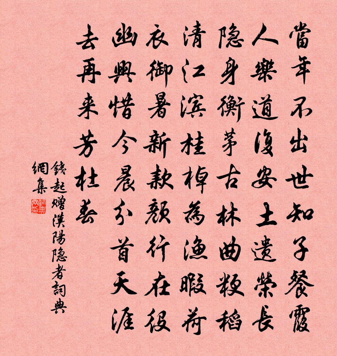 錢起贈漢陽隱者書法欣賞