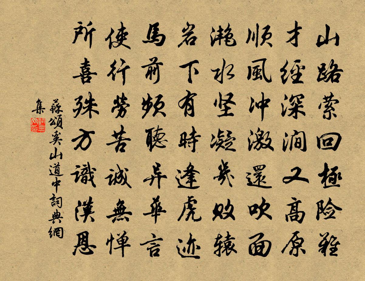 詩詞名句歷史字典書法欣賞書法字典國語詞典說文解字康熙字典古漢語字典標 題 作 者 詩 句 奚山道中作者:蘇頌 朝代:宋代奚山道中原文山路縈迴極險難,才經深澗又高原。順風衝激還吹面,灩水堅凝幾敗轅。岩下有時逢虎跡,馬前頻聽異華言。使行勞苦誠無憚,所喜殊方識漢恩。詩詞問答問:奚山道中的作者是誰?答:蘇頌問:奚山道中寫於哪個朝代?答:宋代蘇頌奚山道中書法欣賞奚山道中書法作品詩詞推薦和襲美傷顧道士鄭璧〔唐代〕斜漢銀瀾一夜東,飄飄何處五雲中。空留華表千年約,才畢丹爐九轉功。形蛻遠山孤壙月,影寒深院曉松風。門人錢唐吟姚勉〔宋代〕錢唐家家重生女,自小無人識機杼。教成歌舞十二三,花燕身材柳鶯語。去年學得琵琶成,今年學得彈秦箏。豪家題舅氏耕隱圖廖行之〔宋代〕詩書事業可公卿,垂上青冥卻反耕。舍己芸人吾弗爾,種田得飽我何營。一犁春雨寧論力,萬里秋雲會享成。堂上東鶩山石洞劉浚〔宋代〕滿山雲雨蛟龍走,萬壑風煙虎豹通。岩竇石泉流出冷,草庵禪影坐來空。挽趙通判五首彭龜年〔宋代〕向來三又泣陽關,猶望歸來肯自寬。今日重過更席處,卻思人世別離難。贈沈沅陵趙蕃〔宋代〕紹聖同年今幾家,泛然遊宦偶天涯。先因避賊來江左,身欠看山到永嘉。世祿相期會騰踏,束書寧復漫咨嗟。我今晝劉克莊〔宋代〕散懷輕病骨,汲古活心源。日炙桐陰晚,煙蒸豆穗繁。密紅雙鷺跡,深綠一鷗喧。未晝聊舒偃,茶香起小煙。游長安諸寺聯句常樂坊趙景公寺吳畫聯句段成式〔唐代〕慘澹十堵內,吳生縱狂跡。風雲將逼人,神鬼如脫壁。 ——段成式其中龍最怪,張甲方汗栗。黑漫興 十五王冕〔元代〕秋風清瘴癘,明月照山河。絕國干戈少,空城鼓角多。脫巾憐短髮,醉酒覺身和。漫對黃花坐,無勞白苧歌。題秋江待渡圖錢選〔宋代〕山色空濛翠欲流,長江清澈一天秋。茅茨落日寒煙外,久立行人待渡舟。吊盈盈三首王山〔宋代〕小巷朱橋花又春,洞房何事不歸雲。二年前過曾攜手,今日重來忽見墳。香魄已飛天上去,鳳簫猶似月中聞。縱然致敬五公祠堂曾豐〔宋代〕五公稷契益皋夔,朝跡才安輒復危。始信君非讎格處,皆緣國是有搖時。高山日矯行人首,喬木時顰故老眉。莫道夜中獨步庭下陸游〔宋代〕山月明如畫,江風冷借秋。衰遲亦可嘆,幽獨自成愁。斗柄垂江渚,笳聲下戌樓。我惟詩思在,從此亦宜休!南園用端中韻朱翌〔宋代〕有韓花太尉淮陰花家,十年種木今開花。松陰漸可張翠葆,花蹊久已蒸紅霞。早來雨過著芒屩,曲沼鏡平清見沙。泉山釋紹曇〔宋代〕接得靈源正脈親,險崖機里解翻身。莫教倒岳傾湫去,浸殺茫茫大地人。送譚廷碩司戶歸魚復晁公溯〔宋代〕平生惜芳辰,每負止酒詩。不量井楣瓶,安得如鴟夷。果中曲糵毒,抱病悔可追。雖無腐腸憂,乃有摏喉危。晚聞滿江紅 用李廷弼留別韻張野〔元代〕一夢黃梁,邯鄲道、幾人曾覺。空怨殺、津亭疊鼓,戍樓殘角。往歲相逢淮□渡,今年同向錢塘泊。嘆飄零、俱為鴛鴦湖棹歌 之九朱彝尊〔清代〕女牆官柳遍啼鴉,小閣臨風卷幔斜。笑指孩兒橋下水,雨晴漂出滿城花。長相思洪适〔宋代〕柳青青。酒清清。雨腳涔涔憶渭城。一尊和淚傾。山青青。水清清。水闊山重不計程。愁堆長短亭。代弟茝詠梅畫十景雪裡陳著〔宋代〕天花包盡世閒羞,也到孤山老樹頭。寄語東風為吹拂,本來面目自風流。名句推薦對酒當歌,強樂還無味。柳永《蝶戀花·佇倚危樓風細細》 風含翠篠娟娟淨,雨裛紅蕖冉冉香。杜甫《狂夫》 成事莫說,覆水難收。佚名《增廣賢文·上集》 寒眼亂空闊,客意不勝秋。楊炎正《水調歌頭·登多景樓》 富貴不離其身,然後能保其社稷,而和其民人。孔子及其弟子《孝經·諸侯》 落葉委埏側,枯荄帶墳隅。潘安《悼亡詩三首》 多情卻被無情惱。蘇軾《蝶戀花·春景》 蝸角虛名,蠅頭微利,算來著甚乾忙。蘇軾《滿庭芳·蝸角虛名》 尿泡雖大無斤兩,秤鉈雖小壓千斤。吳承恩《西遊記·第三十一回》 落葉聚還散,寒鴉棲復驚。李白《三五七言 / 秋風詞》
