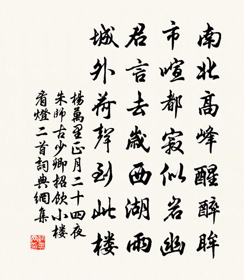 詩詞名句歷史字典書法欣賞書法字典國語詞典說文解字康熙字典古漢語字典標 題 作 者 詩 句 正月二十四夜,朱師古少卿招飲小樓看燈二首作者:楊萬里 朝代:宋代原文南北高峰醒醉眸,市喧都寂似岩幽。君言去歲西湖雨,城外荷聲到此樓。詩詞問答問:《正月二十四夜,朱師古少卿招飲小樓看燈二首》的作者是誰?答:楊萬里問:該詩寫於哪個朝代?答:宋代問:楊萬里的名句有哪些?答:楊萬里名句大全書法欣賞正月二十四夜,朱師古少卿招飲小樓看燈二首書法作品詩詞推薦戒言陸游〔宋代〕饒舌憂患始,銘膺勤戒深。談空摩詰默,對酒子光瘖。久已忘齊語,何嘗解越吟。悠然嫌未足,更撫絕弦琴。攤破浣溪沙·手卷真珠李璟〔唐代〕手卷真珠上玉鉤,依前春恨鎖重樓。風裡落花誰是主,思悠悠。青鳥不傳雲外信,丁香空結雨中愁。回首綠波三楚鵲踏枝馮延巳〔唐代〕煩惱韶光能幾許,腸斷魂消,看卻春還去。只喜牆頭靈鵲語,不知青鳥全相誤。心若垂楊千萬縷,水闊花飛,夢斷詠史詩鄧城胡曾〔唐代〕鄧侯城壘漢江乾,自謂深根百世安。不用三甥謀楚計,臨危方覺噬臍難。步虛歌陳仁玉〔宋代〕仙之來兮駕五龍,霓旌絳節冷然風。誰歟擘脯金盤供,垂要綠髮顏如童。五百餘載一瞬中,蓬萊水淺來何從。蔡翁秋晚寓嘆陸游〔宋代〕十里丹楓岸,三家小麥村。山多妨極目,秋晚易消魂。火舉船過埭,人行犬吠門。窮愁已如許,那更雨昏昏!交秋不雨戴表元〔宋代〕淤水飛成雨,焦田灌作秋。江潮雙趼底,伏蠟肩頭。蝦螺知何罪,蛟龍自不憂。吳兒有高廩,正盪采菱舟。吊草堂禪師李洞〔唐代〕杖屨疑師在,房關四壁蛩。貯瓶經臘水,響塔隔山鍾。乳鴿沿苔井,齋猿散雪峰。如何不見性,倚遍寺前松。五位釋子淳〔宋代〕兼中到,及盡有無真箇妙。披毛戴角火中行,縱橫不落今時道。和外舅夙興三首黃庭堅〔宋代〕暑逐池蓮盡,寒隨塞雁來。衣裘雖得暖,狐貉正相哀。僧汲轆轤曉,車鳴關鎖開。不因朝鼓起,來帙亂書堆。九日題塗溪白居易〔唐代〕蕃草蓆鋪楓葉岸,《竹枝》歌送菊花杯。明年尚作南賓守,或可重陽更一來。醉蓬萊仲殊〔宋代〕望金華真界,寶婺星垣,瑞符玄動。羽葆萊游,有八鸞環擁。日在龍房,下弦平月,見崧岳生申。天上三奇,人間從伯氏攜稚孺游保慶即事王洋〔宋代〕提攜未便即歸山,暫扣僧園且暫閒。歲晚東君顏色近,霜晴寒意有無間。前溪雨後渾通路,荒戍人歸不上關。筇竹送劉德修少卿潼川漕樓鑰〔宋代〕清朝重爭臣,選取妙一世。矯矯劉御史,一鶚勝百鷙。顧瞻最有力,步武亦嚴毅。一生憂國心,千古敢言氣。氣足行住坐臥三十二頌釋印肅〔宋代〕扁鵲盧醫速退邊,大家飽吃普庵圓。解冤釋結消諸病,感應無方不用錢。啼鵑史彌寧〔宋代〕點檢園禽誰口多,錯嫌百舌逞嘍羅。春歸怪見難留駐,攛掇元來卻是他。句晃逈〔宋代〕期月政成當事簡,不妨游燕楚宮春。初宿東閣追憶文簡丁公作宋祁〔宋代〕辭閣玉堂東,依然昔所從。舊池空嘆鳳,殘友不成龍。制藁流塵積,磚花駁鮮重。過車三步約,何日酹塋松。歌二首欽宗朱後〔宋代〕幼富貴兮厭綺羅裳,長入宮兮陪奉尊陽。今委頓兮流落異鄉,嗟造化兮速死為強。戴式之垂訪村居周弼〔宋代〕故人手持一緘書,扁舟清晨造我廬。為問舟從何方來,欲應未卜先知應先長吁。長安平旦朱門開,曳裾靸履喧春雷名句推薦年年送客橫塘路,細雨垂楊系畫船。范成大《橫塘·南浦春來綠一川》 百花頭上開,冰雪寒中見。辛棄疾《生查子·重葉梅》 今年對花最匆匆,相逢似有恨,依依愁悴。周邦彥《花犯·小石梅花》 近水樓台先得月,向陽花木易為春。蘇麟《斷句》 玉樹歌殘猶有曲,錦帆歸去已無家。曾棨《維揚懷古》 願得一心人,白頭不相離。卓文君《白頭吟》 為惡而畏人知,惡中猶有善路;為善而急人知,善處即是惡根。洪應明《菜根譚·概論》 微風起,清芬醞藉,不減酴醿。李清照《多麗·詠白菊》 兩岸月橋花半吐。紅透肌香,暗把遊人誤。真德秀《蝶戀花·兩岸月橋花半吐》 雨里雞鳴一兩家,竹溪村路板橋斜。王建《雨過山村》