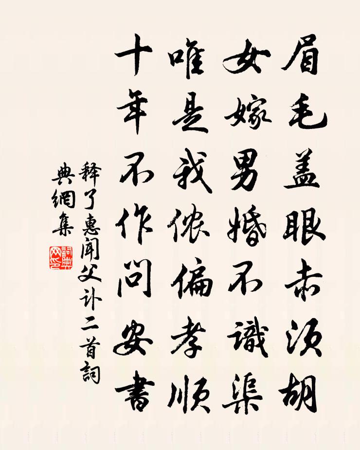 詩詞名句歷史字典書法欣賞書法字典國語詞典說文解字康熙字典古漢語字典標 題 作 者 詩 句 聞父訃二首作者:釋了惠 朝代:宋代聞父訃二首原文眉毛蓋眼赤鬚鬍,女嫁男婚不識渠。唯是我儂偏孝順,十年不作問安書。詩詞問答問:聞父訃二首的作者是誰?答:釋了惠問:聞父訃二首寫於哪個朝代?答:宋代釋了惠聞父訃二首書法欣賞聞父訃二首書法作品詩詞推薦和張中大王洋〔宋代〕憶昔開元夜宴圖,錦為方丈玉為壺。但夸北里樓吹笛,誰問長安米勝珠。事去牽連難雪恥,愁來陪奉長霜須。兔園孟氏(集有過孟十二倉曹十四主簿兄弟詩)杜甫〔唐代〕孟氏好兄弟,養親唯小園。承顏胝手足,坐客強盤飧。負米力葵外,讀書秋樹根。卜鄰慚近舍,訓子學誰門。點絳唇陳允平〔宋代〕鶯語愁春,海棠風裡胭脂雨。酒懷慵舉。閒撲亭前絮。漠漠斜陽,截斷愁來路。憑闌佇。滿懷離苦。分付樓南鼓。經范蠡舊居張蠙〔唐代〕一變姓名離百越,越城猶在范家無。他人不見扁舟意,卻笑輕生泛五湖。廬山草堂夜雨獨宿寄牛二李七庾三十二員外白居易〔唐代〕丹霄攜手三君子,白髮垂頭一病翁。蘭省花時錦帳下,廬山雨夜草庵中。終身膠漆心應在,半路雲泥跡不同。唯有擬行路難十八首鮑照〔南北朝〕奉君金巵之美酒,瑇瑁玉匣之雕琴。七彩芙蓉之羽帳,九華蒲萄之錦衾。紅顏零落歲將暮,寒光宛轉時欲沉。願君宮詞王珪〔唐代〕翡翠盤龍裝繡額,真珠雙鳳蹙花毬。時聞玉女牽簾笑,箭躍銅壺不算籌。和友人論詩二首汪炎昶〔宋代〕蒲專與檀版,拈著足家風。性覺隨資近,人難盡已同。奇非居正外,易正在難中。意近語須遠,形離神暗通。溫成皇后輓詞梅堯臣〔宋代〕鞏洛園陵啟,函關鹵部聞。素車迎紫氣,靈襪度青雲。歌欲傳長恨,人將問少君。明年賀元日,無復繡衣薰。武帝徐鈞〔宋代〕東南離析僅遺餘,枉受污名僭帝名。輸卻當年曹馬巧,不先受禪且驅除。頌古二十首釋道顏〔宋代〕三十二應不思議,十四無畏如流水。男子身中入定時,女子身中從定起。射策後作盧肇〔唐代〕射策明時愧不才,敢期青律變寒灰。晴憐斷雁侵雲去,暖見醯雞傍酒來。箭發尚憂楊葉遠,愁生只恐杏花開。曲江沁園春 仲敬吾友歸自曹南,而壽辰適至,喜劉敏中〔元代〕章,遂用其韻,俾奉觴者歌以侑歡雲萬里長風,一夕吹君,飛來自南。想江東渭北,同驚過雁,升高望遠,幾度停巴城晁公溯〔宋代〕比從關塞歷巴城,不復衣冠立漢庭。越巂江寒嗟獨往,瞿塘硤險駭初經。雙崖石立縣深翠,萬嶺排空送遠青。久抗舟中觀馬目烏龍山方回〔宋代〕一從為郡後,來往十年間。自笑成何事,猶容看此山。舊人多粗給,老子願常閒。今晚歸書屋,溪僧定叩關。題嚴光釣台歐陽詹〔唐代〕弭棹歷塵跡,悄然關我情。伊無昔時節,豈有今日名。辭貴不辭賤,是心誰復行。欽哉此溪曲,永獨古風清。贈裴司馬李白〔唐代〕翡翠黃金縷,繡成歌舞衣。若無雲間月,誰可比光輝。秀色一如此,多為眾女譏。君恩移昔愛,失寵秋風歸。愁苦秋晚幽居陸游〔宋代〕吳中秋晚氣猶和,疾豎其如此老何?鳥語漸稀人睡美,木陰初薄夕陽多。掃園日日成幽趣,撫枕時時亦浩歌。車轍千秋歲佚名〔宋代〕歡盈萬屋。聲雜當庭竹。騰寶篆,輝銀燭。東君將到處,祗隔郵亭宿。誰知道,此時誕個人如玉。紅葉題宮墨。流又登碧雲亭感懷三十首吳芾〔宋代〕晚上危亭憶孟君,龍山一醉見天真。堪嗟東道空遺臭,爭似尊前落帽人。名句推薦秋在水清山暮蟬,洛陽樹色鳴皋煙。王昌齡《送狄宗亨》 日暮九疑何處?認舜祠叢竹。文廷式《好事近·湘舟有作》 越人語天姥,雲霞明滅或可睹。李白《夢遊天姥吟留別 / 別東魯諸公》 半煙半雨溪橋畔,漁翁醉著無人喚。黃庭堅《菩薩蠻·半煙半雨溪橋畔》 苦雨思白日,浮云何由卷。李白《玉真公主別館苦雨贈衛尉張卿二首》 寂寞尊前席上,唯愁海角天涯。李清照《轉調滿庭芳·芳草池塘》 清夜何湛湛,孤燭映蘭幕。江淹《銅爵妓》 若問相思甚了期,除非相見時。晏幾道《長相思·長相思》 白雲映水搖空城,白露垂珠滴秋月。李白《金陵城西樓月下吟》 鴻雁不堪愁里聽,雲山況是客中過。李頎《送魏萬之京》