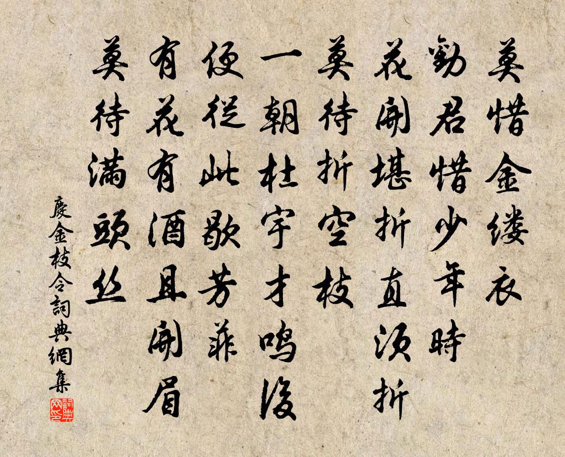 莫惜金縷衣。勸君惜、少年時。