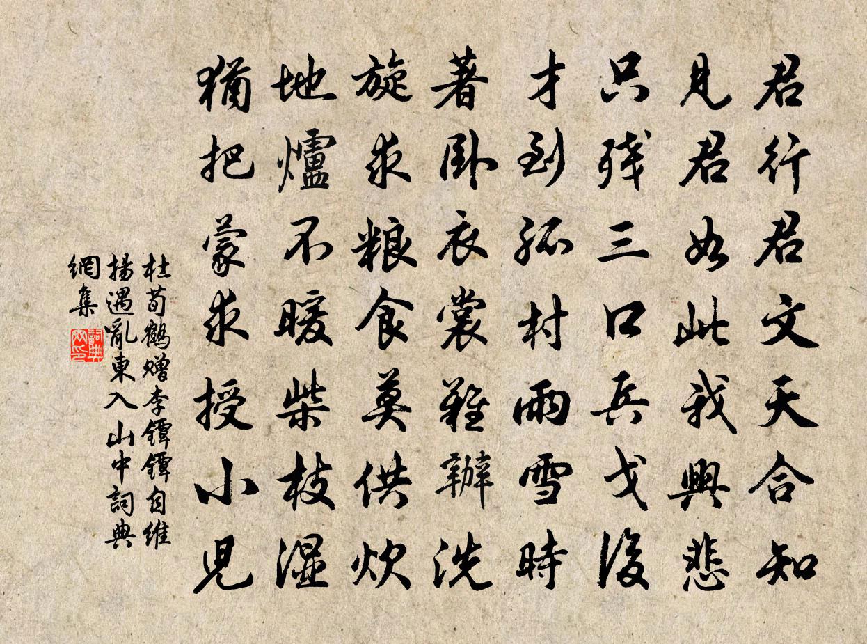 君行君文天合知,見君如此我興悲。只殘三口兵戈後,才到孤村雨雪時。