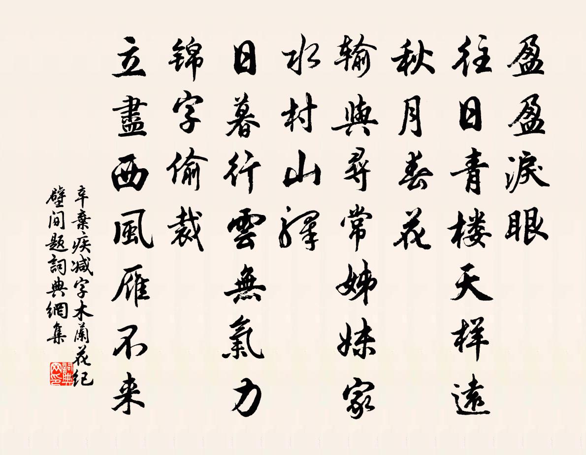辛棄疾減字木蘭花(紀壁間題)書法欣賞