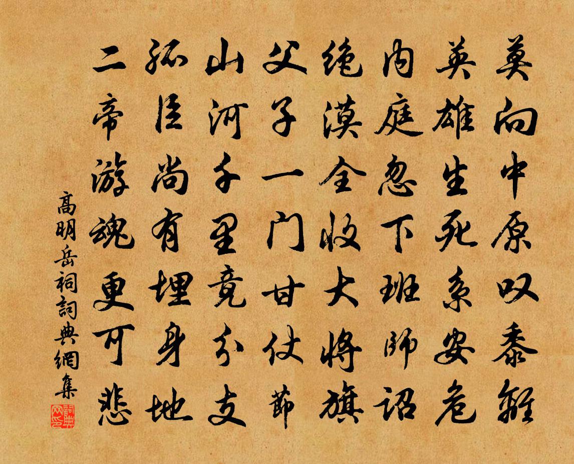 詩詞名句歷史字典書法欣賞書法字典國語詞典說文解字康熙字典古漢語字典標 題 作 者 詩 句 岳祠作者:高明 朝代:元代岳祠原文莫向中原嘆黍離,英雄生死系安危。內庭忽下班師詔,絕漠全收大將旗。父子一門甘仗節,山河千里竟分支。孤臣尚有埋身地,二帝遊魂更可悲!詩詞問答問:岳祠的作者是誰?答:高明問:岳祠寫於哪個朝代?答:元代問:岳祠是什麼體裁?答:七律高明岳祠書法欣賞岳祠書法作品詩詞推薦張功父請祠甚力,得之,簡以長句楊萬里〔宋代〕老夫不及朱師古,納卻太常少卿得潼府。老夫不及張約齋,乞得華州仙觀名雲台。金印如斗床滿笏,富貴何曾膏白寄白蓮寺隆虛岩顧逢〔宋代〕人自菁山出,先須問老師。未痊張籍眼,不廢貫休詩。課佛輪珠滑,翻經破帽欹。幾年修淨業,喜近白功池。句胡銓〔宋代〕君側無讒人,發口不須婉。夏初湖村雜題陸游〔宋代〕寒泉自換菖蒲水,活火閒煎橄欖茶。自是閒人足閒趣,本無心學野僧家。賦得冬日可愛庾承宣〔唐代〕宿霧開天霽,寒郊見初日。林疏照逾遠,冰輕影微出。豈假陽和氣,暫忘玄冬律。愁抱望自寬,羈情就如失。欣欣句李邴〔宋代〕漲海聲中萬國商。黃鶴洞中仙 繼重陽韻馬鈺〔元代〕傳得清虛劍。心內深深點。木上金絲來往牽。馬風占。更把風搖。卦象常推漸。功行時時檢。黃鶴沿中仙要成,題山石榴花白居易〔唐代〕一叢千朵壓闌乾,翦碎紅綃卻作團。風裊舞腰香不盡,露銷妝臉淚新乾。薔薇帶刺攀應懶,菡萏生泥玩亦難。爭及贈司徒兼侍中宋宣獻輓詞四首宋庠〔宋代〕一世文為伯,三階象有光。何言隆棟吉,忽嘆夜舟藏。襚禮朝頒冊,哀音路過喪。善人今不與,神理太茫茫。弼承索近詩復貺佳句輙次元韻奉和詩以語志不富弼〔宋代〕賦分蕭條只自如,生平常官情疏。亡功每嘆孤明主,得謝何妨作老天。官品尚叨三事貴,世緣應信一豪無。病來髀與二三友秋宵會話清上人院孟郊〔唐代〕何處山不幽,此中情又別。一僧敲一磬,七子吟秋月。激石泉韻清,寄枝風嘯咽。泠然諸境靜,頓覺浮累滅。扣寂山院避暑韓偓〔唐代〕行樂江郊外,追涼山寺中。靜陰生晚綠,寂慮延清風。運塞地維窄,氣蘇天宇空。何人識幽抱,目送冥冥鴻。懷園引謝莊〔南北朝〕鴻飛從萬里,飛飛河岱起。辛勤越霜霧,聯翩溯江汜。去舊國,違舊鄉,舊山舊海悠且長。回首瞻東路,延翮向秋農夫耕田張翀〔明代〕 農夫耕于田,數息而後一鋤。行者見而哂之,曰:“甚矣,農之惰也!數息而後一鋤,此田竟月不成!”農夫如夢令趙汝蕪〔宋代〕小砑紅綾箋紙。一字一行春淚。封了更親題,題了又還折起。歸來?歸來?好個瘦人天氣。春晚陸游〔宋代〕落絮飛花又滿城,年光大半付春酲。蹇驢閒後詩情減,陣馬拋來髀肉生。少日雕蟲真小技,暮年畫餅更虛名。囊中食菝葜苗張耒〔宋代〕江鄉有奇蔬,本草記菝葜。驅風利頑痹,解疫補體節。春深土膏肥,紫筍迸玉裂。烹之芼姜橘,盡取無可輟。應同頌古十八首釋寶印〔宋代〕不疑不徹不失,片片春風狼籍。至今江北江南,遊子徒勞外覓。休外覓,明如杲日黑如漆。二妃廟送裴侍御使桂陽李頎〔唐代〕沅上秋草晚,蒼蒼堯女祠。無人見精魄,萬古寒猿悲。桂水身歿後,椒漿神降時。回雲迎赤豹,驟雨颯文狸。受命贈太子少師元章簡公拘詞王珪〔唐代〕天子思賢共政塗,中台前日得真儒。正看浴鳳來雖晚,不覺冥鴻去已孤。曉月猶臨千里梓,春風又卷五雲圖。誰過名句推薦杏花時節雨紛紛。山繞孤村。水繞孤村。劉仙倫《一剪梅·唱到陽關第四聲》 忠臣挾難進之術,吐逆耳之言陳壽《三國志·魏書·辛毗楊阜高堂隆傳》 風乍起,吹皺一池春水。馮延巳《謁金門·風乍起》 清明節,雨晴天,得意正當年。薛昭蘊《喜遷鶯·清明節》 人問誰,對以名。吾與我,不分明。李毓秀《弟子規·謹》 為川者決之使導,為民者宣之使言。左丘明《國語·周語·邵公諫厲王弭謗》 善無主於心者不留,行莫辯於身者不立。墨子《墨子·02章 修身》 江淮度寒食,京洛縫春衣。王維《送綦毋潛落第還鄉 / 送別》 琴里知聞唯淥水,茶中故舊是蒙山。白居易《琴茶》 樓倚霜樹外,鏡天無一毫。杜牧《長安秋望》