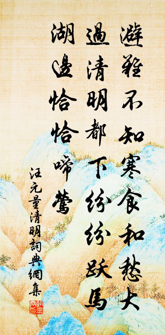詩詞名句歷史字典書法欣賞書法字典國語詞典說文解字康熙字典古漢語字典標 題 作 者 詩 句 清明作者:汪元量 朝代:宋代清明原文避難不知寒食,和愁大過清明。都下紛紛躍馬,湖邊恰恰啼鶯。詩詞問答問:清明的作者是誰?答:汪元量問:清明寫於哪個朝代?答:宋代問:汪元量的名句有哪些?答:汪元量名句大全汪元量清明書法欣賞清明書法作品詩詞推薦邵智卿挽章崔敦禮〔宋代〕列宿郎官帳,高風隱士廬。歲寒知勁柏,日暮厭輕車。德齒周三老,身名漢二疏。回頭八男子,玉立照階除。鴨責鷺艾性夫〔宋代〕物生天地間,謀食各從類。平疇我所家,方逐魚蝦細。爾鷺非吾徒,引頸乃旁睨。纖鱗動微影,忽已落長喙。潔白吐蕃別館臥病寄朝中諸友呂溫〔唐代〕星漢縱橫車馬喧,風搖玉佩燭花繁。豈知羸臥窮荒外,日滿深山猶閉門。頌古一百首釋智愚〔宋代〕草履為冠松作釵,一般瀟灑眼頭乖。語音只在風檐下,終日無人不下階。和范景仁王景彝殿中雜題三十八首並次韻其三梅堯臣〔宋代〕明月已生城上頭,小星光滅大星流。來朝放牓出宮去,何處殘花轉入溝。此張希良書齋去祖壠不百步扁曰望松取後山思黎廷瑞〔宋代〕老根憐蒼龍,芳粒長新穉。眷言丘中人,苓珀共千歲。晨瞻露華明,夕眺煙影翠。捫軀發深感,矯首落孤淚。思亭木蘭花/玉樓春賀鑄〔宋代〕羅巾粉汗和香浥。纖指留痕紅一捻。離亭再卜和歡期,尋見石榴雙翠葉。危樓欲上危腸怯。縱得鸞膠難寸接。西風天道吟胡宏〔宋代〕一氣安然不強為,大強先去少強隨。本來把定真訊息,不是迂愚卻是誰。再和潛師蘇軾〔宋代〕化工未議蘇群槁,先向寒梅一傾倒。江南無雪春瘴生,為散冰花除熱惱。風清月落無人見,洗妝自趁霜鍾早。惟有念奴嬌 贈王道人性初歸茅山陸文圭〔元代〕芙蓉城郭,有羽仙騎鶴,來從何處。曾拉茅君峰頂會,瑤佩隨風吹去。玉笈偷開,青囊拾得,笑看人間世。藏身壺春夜二首劉象〔唐代〕幾處兵戈阻路岐,憶山心切與山違。時難何處披懷抱,日日日斜空醉歸。一別杜陵歸未期,只憑魂夢接親知。近來望大梅欲回雪竇路險而止口占示同行王銍〔宋代〕起曉尋幽意氣豪,冥冥重霧溼征袍。天扶寶勢千山拱,海助寒聲萬籟高。休數興衰兩蝸角,從來憂樂一鴻毛。了知江城子劉秉忠〔元代〕平生行止懶編排。住蒿萊。走塵埃。社燕秋鴻,年去復年來。看盡好花春睡穩,紅興紫,任他開。紫微天上列三台過道人磯袁說友〔宋代〕幾年煙雨鎖蒼苔,咫尺侯門路不開。夜半一聲橫笛處,道人隨月過山來。鏡屏詩二首李廌〔宋代〕凝澄不動水淵盤,風拂泉生或細瀾。月影透簾朝日薄,龍輝繞匣夜光寒。玄冥借魄知神物,男子無聞已弱冠。照我風入松王吉昌〔元代〕乾坤兩卦上天梯。分柔健高低。六關爻變推天道,斡璇璣、日月東西。妙采精華成液,通神息,飲刀圭。溶溶金水送仲庶待制知澤州蔡襄〔宋代〕十年台省獻嘉謀,新總兵符鎮上游。琴有薰弦多舜俗,地連沙尾舊湘州。江邊行色船千丈,塞外威聲馬萬頭。宣室客久董嗣杲〔宋代〕身孤猶落葉,客久向餉英。少睡夜逾悄,多聞心更清。縣樓訛漏點,雨市雜溪聲。海上仙槎在,思乘幾凝情。次懷英韻李處權〔宋代〕亂來身世羨沙鷗,雪後溪山粲兩眸。不用東床呼外舅,當年雅契在仙舟。寄曇晦二首李處權〔宋代〕高僧闢館坐諸生,夜久亦聞弦誦聲。物外喜君能筆硯,塵中愧我漫簪纓。缽餐尚返慈烏哺,囊句時為老鳳鳴。他日名句推薦善學者盡其理,善行者究其難。荀子《荀子·大略》 曉月暫飛高樹里,秋河隔在數峰西韓翃《宿石邑山中》 卻愁擁髻向燈前,說不盡、離人話納蘭性德《一絡索·過盡遙山如畫》 雨聲颼颼催早寒,胡雁翅濕高飛難。杜甫《秋雨嘆三首》 玩人喪德,玩物喪志。佚名《尚書·周書·旅獒》 庭前時有東風入,楊柳千條盡向西。劉方平《代春怨》 朝真暮偽何人辨,古往今來底事無。白居易《放言五首·其一》 浪花有意千里雪,桃花無言一隊春。李煜《漁父·浪花有意千里雪》 敖不可長,欲不可從,志不可滿,樂不可極。戴聖《禮記·曲禮上》 眼覷著災傷教我沒是處,只落得雪滿頭顱。張養浩《一枝花·詠喜雨》