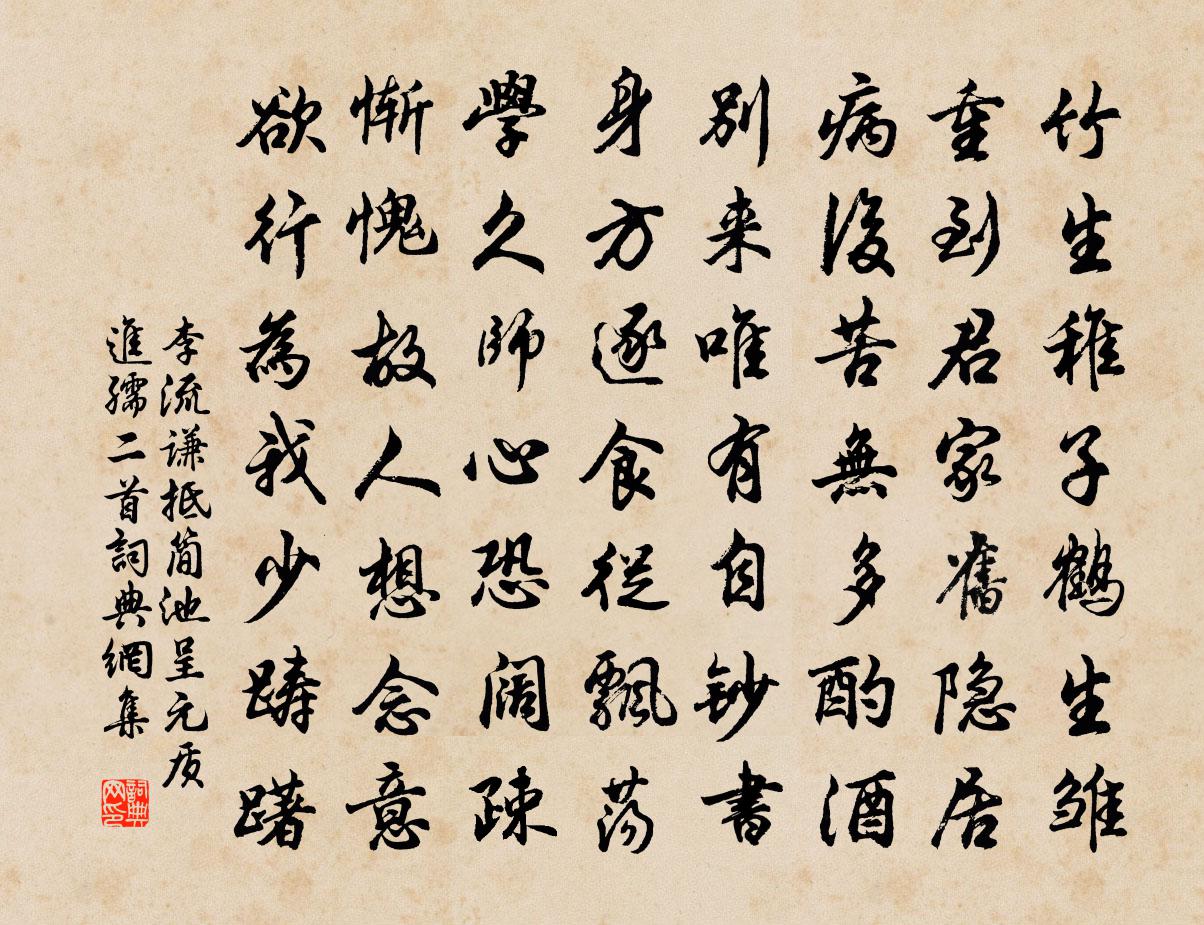 詩詞名句歷史字典書法欣賞書法字典國語詞典說文解字康熙字典古漢語字典標 題 作 者 詩 句 抵簡池呈元質進孺二首作者:李流謙 朝代:宋代抵簡池呈元質進孺二首原文竹生稚子鶴生雛,重到君家舊隱居。病後苦無多酌酒,別來唯有自鈔書。身方逐食從飄蕩,學久師心恐闊疎。慚愧故人想念意,欲行為我少躊躇。詩詞問答問:抵簡池呈元質進孺二首的作者是誰?答:李流謙問:抵簡池呈元質進孺二首寫於哪個朝代?答:宋代李流謙抵簡池呈元質進孺二首書法欣賞抵簡池呈元質進孺二首書法作品詩詞推薦浪淘沙·夜雨做成秋納蘭性德〔清代〕夜雨做成秋,恰上心頭。教他珍重護風流。端的為誰添病也,更為誰羞。密意未曾休,密願難酬。珠簾四卷月當樓張夢晉改流水詩唐寅〔明代〕淺淺水,斷又續,在山清,出山濁。曲曲折折難回頭,嗚嗚咽咽日夜哭。 問伊傷心何其多,悔恨當初出幽谷。苦雨方回〔宋代〕擬勒移文問雨龍,麥秋忍不念吾農。黃雲萬頃成泥爛,偏與閒檐活瓦松。懷素上人草書歌任華〔唐代〕吾嘗好奇,古來草聖無不知。豈不知右軍與獻之,雖有壯麗之骨,恨無狂逸之姿。中間張長史,獨放蕩而不羈,以寄題袁機仲侍郎殿撰建溪北山四景抗雲亭楊萬里〔宋代〕腳底一朵雲,乘之繞空碧。前身王子喬,今代李太白。下牢津歐陽修〔宋代〕依依下牢口,古戍郁嵯峨。入峽江漸曲,轉灘山更多。白沙飛白鳥,青障合青蘿。遷客初經此,愁詞作楚歌。知府丈袖賜新篇愈嘆精奇勉綴俚辭乾覽采李壁〔宋代〕書邊慣度短檠宵,心和南山扣角謠。霢霂幾隨風入夜,熒煌行見日升朝。自憐鏡里吳霜滿,難敵毫端海蜃搖。好是詰旦思之世豈有不押之韻輒和北山十首劉克莊〔宋代〕絕喜有肉漢,何嫌逐臭夫。形慳一爛粟,口遍四方糊。魯叟袗絺綌,荊卿袖匕圖。朝來詢酒甕,莫已變酸無。洛城觀酺應制陳子昂〔唐代〕聖人信恭己,天命允昭回。蒼極神功被,青雲秘籙開。垂衣受金冊,張樂宴瑤台。雲鳳休徵滿,魚龍雜戲來。崇恩勸農虞儔〔宋代〕郊原春已半,溝洫水先通。勸相寧文具,歸耕亦興濃。一犁新雨後,小隊亂山中。粗識斯民意,何須教缿筒。讀晦翁遺文悽愴有作孫應時〔宋代〕先生千載人,浩氣隘穹壤。早薄聲利交,超然傲塵鞅。飲酒讀離騷,追游必豪克。風月飽高吟,雲泉擅奇賞。切骨董逃行陸游〔宋代〕漢末盜賊如牛毛,千戈萬槊更相鏖。兩都宮殿摩雲高,坐見霜露生蓬蒿。渠魁赫赫起臨洮,殭屍自照臍中膏。危難水調歌頭(裴公亭懷古)王以寧〔宋代〕歲晚橘洲上,老葉舞愁紅。西山光翠,依舊影落酒杯中。人在子亭高處,下望長沙城郭,獵獵酒帘風。遠水湛寒碧五月二十四日宿永睦將口香積院僧軒東望甚遠張嵲〔宋代〕遠投僧舍青煙畔,夾路松音鐘磬幽。試倚危軒望鄉色,三巴日暮遠峰稠。龍池春草宋迪〔唐代〕鳳闕韶光遍,龍池草色勻。煙波全讓綠,堤柳不爭新。翻葉迎紅日,飄香借白蘋。幽姿偏占暮,芳意欲留春。已勝屢省乃成陳普〔宋代〕務本工夫在日新,悠悠莫自老青春。課功覈實惟時敏,德業何難輩古人。山村戴復古〔宋代〕野水開冰出,山雲帶雨行。白鷗乘曉泛,黃犢試春耕。地僻民風古,年豐米價平。村居自蕭灑,況有讀書聲。建州絕無芡意頗思之戲作陸游〔宋代〕鄉國雞頭賣早秋,綠荷紅縷最風流。建安城裡西風冷,白棗堆盤看卻愁。仲良見和再和謝焉四首楊萬里〔宋代〕豈不為寮久,茲焉獨愈親。卜居如不近,同志竟何因。山鳥頻招飲,江花解笑人。風顛仍雨急,枉卻一年春。江南冬至和人懷洛下陸龜蒙〔唐代〕昔居清洛涯,長恨苦寒遲。自作江南客,稀遲下雪時。有煙棲菊梗,無凍落杉枝。背日能尋徑,臨風尚覆棋。鳥聲名句推薦短夢依然江表,老淚灑西州。張炎《八聲甘州·記玉關踏雪事清游》 濁酒一杯家萬里,燕然未勒歸無計。范仲淹《漁家傲·秋思》 日出東南隅,照我秦氏樓。佚名《陌上桑》 雁柱十三弦,一一春鶯語。歐陽修《生查子·含羞整翠鬟》 山下孤煙遠村,天邊獨樹高原。王維《田園樂七首·其五》 夭夭園桃,無子空長。曹丕《煌煌京洛行》 大漠風塵日色昏,紅旗半卷出轅門。王昌齡《從軍行七首》 艷妝臨水最相宜。風來吹繡漪。吳文英《醉桃源·芙蓉》 龍蟠虎踞金陵郡,古來六代豪華盛。康與之《菩薩蠻令·金陵懷古》 夫賞者,所以喜眾,令士忘死也。罰者,所以正亂,令民畏上也。孫臏《孫臏兵法·威王問》