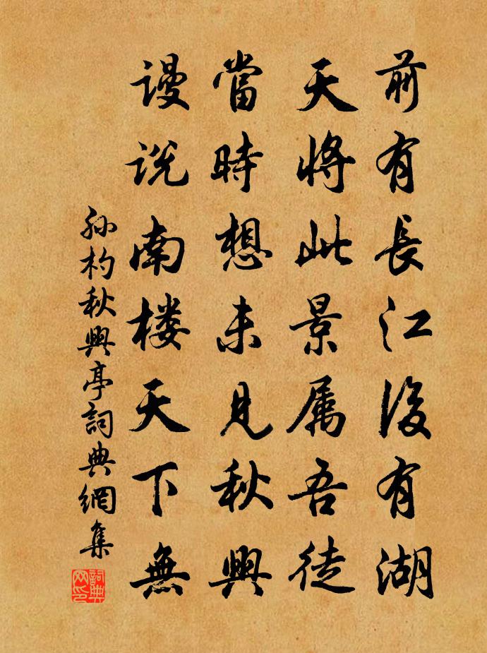 詩詞名句歷史字典書法欣賞書法字典國語詞典說文解字康熙字典古漢語字典標 題 作 者 詩 句 秋興亭作者:孫杓 朝代:宋代秋興亭原文前有長江後有湖,天將此景屬吾徒。當時想未見秋興,謾說南樓天下無。詩詞問答問:秋興亭的作者是誰?答:孫杓問:秋興亭寫於哪個朝代?答:宋代孫杓秋興亭書法欣賞秋興亭書法作品詩詞推薦三閭大夫劉威〔唐代〕三閭一去湘山老,煙水悠悠痛古今。青史已書殷鑑在,詞人勞詠楚江深。竹移低影潛貞節,月入中流洗恨心。再引又三絕徐鉉〔唐代〕銀燭金爐禁漏移,月輪初照萬上枝。造舟已似文事事,卜世應同八百期。程順子升齋吳泳〔宋代〕雨養焦谷牙,清晨勃然興,風入春筍節,一夕長數層。地道元敏樹,生意實可徵。一息不滋長,枯荄莽丘陵。所以過九疑馬大同〔宋代〕何侯拔宅登仙去,虞帝因山行廟基。人物由來相代謝,不知陵谷幾遷移。西江月(即席和書院諸友)魏了翁〔宋代〕早厭人間腐鼠,要希雲外飛皇。羲和不肯系朝陽。任向鬢邊來往。出谷聲中氣味,編蒲冊里晶光。至今心膽為渠狂偶題姜夔〔宋代〕阿八宮中酒未醒,天風吹髮夜泠泠。歸時只怕扶桑暖,赤腳橫騎太一鯨。湘西寺觀瀾軒戴復古〔宋代〕東岸樓台西岸山,瀟湘一片在中間。紅塵不到滄波上,僧與白雲相共閒。題畫廿四首唐寅〔明代〕鄧尉山邊七寶灘,高低如畫好溪山。十年游賞經行遍,多少名題竹樹間。清心鏡 顯決烈馬鈺〔元代〕出家兒,要決斷。一口咬碎,無明火鑽。道萬事、不系剛腸,堪稱個鐵漢。志無移,心不亂。認正古今,神仙公案再次韻王灼〔宋代〕築壇拜一軍驚,初識淮陰胯下生。能讀父書成底事,可憐世上逐虛名。抱疾謝李吏部贈訶黎勒葉包佶〔唐代〕一葉生西徼,齎來上海查。歲時經水府,根本別天涯。方士真難見,商胡輒自誇。此香同異域,看色勝仙家。茗飲已亥雜詩 311龔自珍〔清代〕畫禪有女定清真,合配琳南萬軸身。百里畿南風雪路,我來著手竟成春。答趙尉陳宓〔宋代〕親友鄉閭恨少逢,多因遊宦得從容。他年儻過鳴珂里,只恐飛翰不許從。龍水板橋院李新〔宋代〕送臘溫濃萬井同,筠輿猶走萬山中。曝成枯菜依檐白,染出春衣映壁紅。掩豆豚肩仍歲儉,傳觴釀翁幾家空。不知途間觀野菊易士達〔宋代〕林巒露骨草無芽,枯柳吟蟬蹟見沙。莫道西風全肅殺,行邊無處不黃花。寄方叔黃草道服姜特立〔宋代〕非蕉非苧復非絺,不是山人木葉衣。寄與詩翁莫嫌陋,看山長帝白雲歸。木山陸游〔宋代〕枯楠千歲遭風雷,披枝折乾吁可哀。輪囷無用天所赦,秋水初落浮江來。嵌空宛轉若耳鼻,峭瘦拔起何崔嵬。珠宮即事十首劉克莊〔宋代〕占斷百花白,摘來三伏涼。著身素馨國,荀令未為香。採桑子(櫻桃花)趙師俠〔宋代〕梅花謝後櫻花綻,淺淺勻紅。試手天工。百卉千葩一信通。余寒未許開舒妥,怨雨愁風。結子筠籠。萬顆勻圓訝許漁家傲(簡張德共)王千秋〔宋代〕黃栗留鳴春已暮。西園無著清陰處。昨日驟寒風又雨。花良苦。信緣吹落誰家去。病起日長無意緒。等閒還與春相名句推薦蘭溪三日桃花雨,半夜鯉魚來上灘。戴叔倫《蘭溪棹歌》 鼎湖流水清且閒,軒轅去時有弓劍,古人傳道留其間李白《飛龍引二首·其二》 燕歸花謝,早因循、又過清明。納蘭性德《紅窗月·燕歸花謝》 朝騁騖兮江皋,夕弭節兮北渚;屈原《九歌》 無善而致人譽,不如無惡而致人毀。洪應明《菜根譚·概論》 眼覷著災傷教我沒是處,只落得雪滿頭顱。張養浩《一枝花·詠喜雨》 垂死病中驚坐起,暗風吹雨入寒窗元稹《聞樂天授江州司馬》 君子以儉德辟難,不可榮以祿。佚名《易傳·象傳上·否》 子貢之無諂,原思之坐弦,是賢人守貧窮之法。王永彬《圍爐夜話·第四九則》 本分人,即是快活人,無奈做本分人者甚少。王永彬《圍爐夜話·第四則》