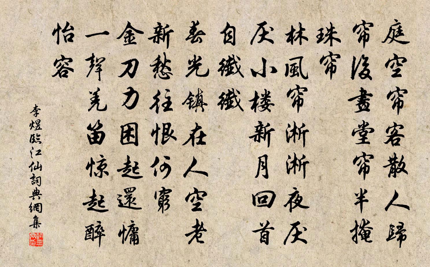 註:此首及上一首“臨江仙”詞牌原作為“謝新恩”,因王國維認為系《臨江仙》調,今暫從王說。