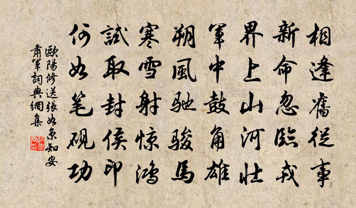 相逢舊從事,新命忽臨戎。界上山河壯,軍中鼓角雄。