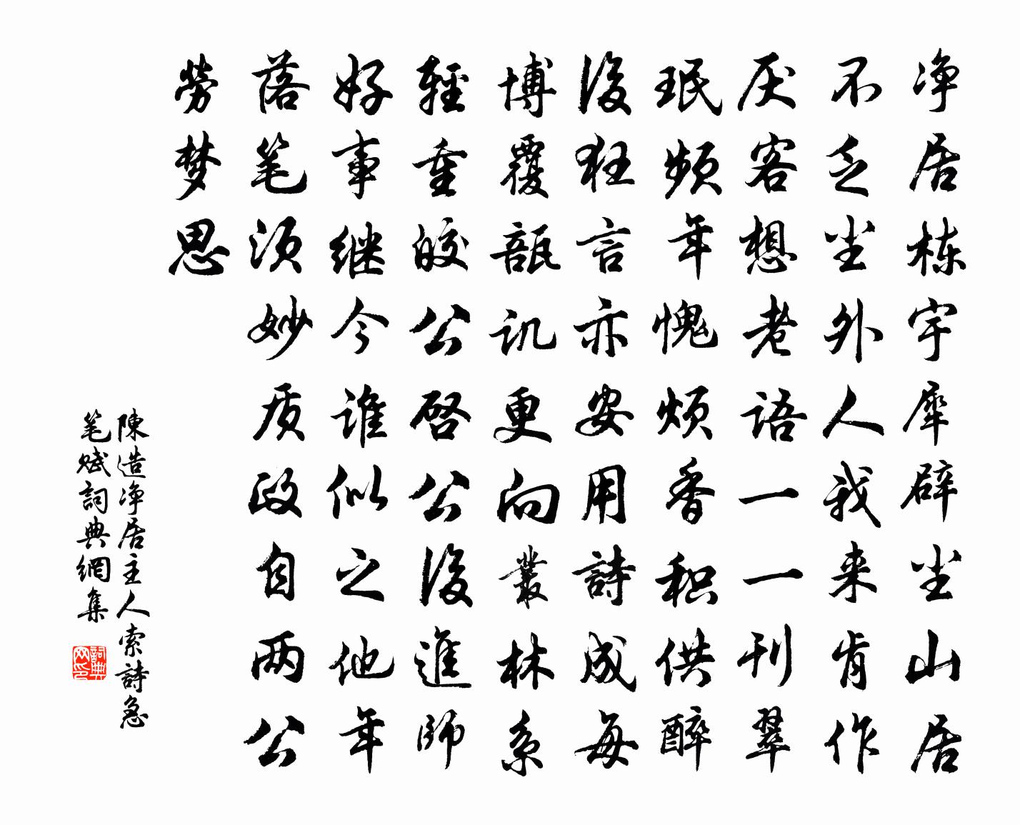 詩詞名句歷史字典書法欣賞書法字典國語詞典說文解字康熙字典古漢語字典標 題 作 者 詩 句 淨居主人索詩急筆賦作者:陳造 朝代:宋代淨居主人索詩急筆賦原文淨居棟宇犀辟塵,山居不乏塵外人。我來肯作厭客想,老語一一刊翠珉。頻年愧煩香積供,醉後狂言亦安用。詩成每博覆瓿譏,更向叢林系輕重。皎公啟公後進師,好事繼今誰似之。他年落筆須妙質,政自兩公勞夢思。詩詞問答問:淨居主人索詩急筆賦的作者是誰?答:陳造問:淨居主人索詩急筆賦寫於哪個朝代?答:宋代陳造淨居主人索詩急筆賦書法欣賞淨居主人索詩急筆賦書法作品詩詞推薦同孫子直和李參政東園韻十絕洪咨夔〔宋代〕孔明遁世吟梁甫,范蠡遭時策計然。鍾鼎山林非二物,莫隨窮達較蚩妍。崧高詩為九江趙使君壽楊冠卿〔宋代〕之綱之紀,允文允武。荊舒是懲,四方無侮。般涉調·哨遍·半世逢場作戲馬致遠〔元代〕半世逢場作戲,險些兒誤了終焉計。白髮勸東籬,西村最好幽棲,老正宜。茅廬竹徑,藥井蔬畦,自減風雲氣。嚼附江南本織錦圖上回文原作三首蘇軾〔宋代〕紅手素絲千字錦,故人新曲九迴腸。風吹絮雪愁縈骨,淚灑縑書恨見郎。秀亭秋懷十五首方回〔宋代〕痴痴誰氏子,晝夜安以偷。其人一何樂,惟我攢百憂。憂者謂速朽,頑骨病復瘳。樂當必老壽,顧已歸山丘。飢生疏古釋重顯〔宋代〕我有面鏡,到處懸掛。心聖不來,誰上誰下。在伯教授為考試之行不知其地漫成五詩送之趙蕃〔宋代〕平生未識荊州牧,詩卷記評王進之。鈴閣縱談詢保社,幸無過語恐遭嗤。金蓮出玉花 拆木字起馬鈺〔元代〕金汞定。富人榮非我景。子何憂。嘆浮生鬢染秋。生慧草。早修心端的好。道勝侯。袖攜雲訪玉樓。和元遺山十首王奕〔宋代〕人惟君與師,得在天地間。蜂蟻失所主,生息決不蕃。逐日渴未死,顧影悲餘年。平生東魯心,卑首瞻聖賢。上下偈頌一百一十七首釋紹曇〔宋代〕嶺上雲磨松偃蹇,岩前瀑漱石琮琤。瞿曇面目全彰露,誰道今朝始誕生。跛雲門棒,休放拍盲。一杓香湯三拜著,菩薩蠻蘇庠〔宋代〕園林寂寂春歸去。濛濛柳下飛香絮。野水接雲橫。綠煙啼曉鶯。江南鶗鴂夢。山色朝來重。小艇小灣頭。苹花苹葉偈頌五十一首釋大觀〔宋代〕九日無白醪,萸烹茗是好。好古說登高,誰踏古皇道。落葉鼓真風, * 說玄要。自笑太無端,相牽放荒草。柳宜城鵲巢歌顧況〔唐代〕相公宅前楊柳樹,野鵲飛來復飛去。東家斫樹枝,西家斫樹枝。東家西家斫樹枝,發遣野鵲巢何枝。相君處分留野將歸湖上留別陳宰方乾〔唐代〕歸去春山逗晚晴,縈迴樹石罅中行。明時不是無知己,自憶湖邊釣與耕。募兵杜范〔宋代〕召募古來有,今者何其對。文書急如雨,取辦都保間。百夫不錄十,一夫費千鈽。恐被嗜利徒,無能御國患。老母出塞曲陸游〔宋代〕千騎為一隊,萬騎為一軍,朝踐狼山雪,暮宿榆關雲。將軍羽箭不虛發,直到祁連無雁群。隆隆春雷收陣鼓,蜿蜿早行五首吳芾〔宋代〕我無政術強為官,所至將迎每厚顏。何事深村赤腳婦,亦聞鉦鼓出籬間。游山五題題憩賢亭余靖〔宋代〕虛亭遲嘉客,登臨日相繼。松篁夏吹寒,煙霞暮江霽。高興山光遠,急影波聲細。區區榮利途,扁舟暫時憩。和趙章泉寄詩韻劉宰〔宋代〕索居靈瑣久塵埃,一讀新篇病眼明。妄意嚴詩編杜集,敢陪郭隗上燕台。紆朱晚歲徒云爾,養素平生壯矣哉。更許鴛鴦湖棹歌 之九十朱彝尊〔清代〕秋水尋常沒釣磯,秋林隨意敞柴扉。八月田中黃雀?,九月盤中黃雀肥。名句推薦穿花蛺蝶深深見,點水蜻蜓款款飛杜甫《曲江二首》 蟬噪林逾靜,鳥鳴山更幽。王籍《入若耶溪》 瞿塘嘈嘈十二灘,此中道路古來難。劉禹錫《竹枝詞九首·其七》 以天下為沈濁,不可與莊語。莊子《莊子·雜篇·天下》 捲地風來忽吹散,望湖樓下水如天。蘇軾《六月二十七日望湖樓醉書》 砌下落梅如雪亂,拂了一身還滿。李煜《清平樂·別來春半》 乃翁知國如知兵,塞垣草木識威名。黃庭堅《送范德孺知慶州》 解落三秋葉,能開二月花。李嶠《風》 一手獨拍,雖疾無聲。韓非及後人《韓非子·功名》 道不同,不相為謀。孔子弟子《論語·衛靈公篇》