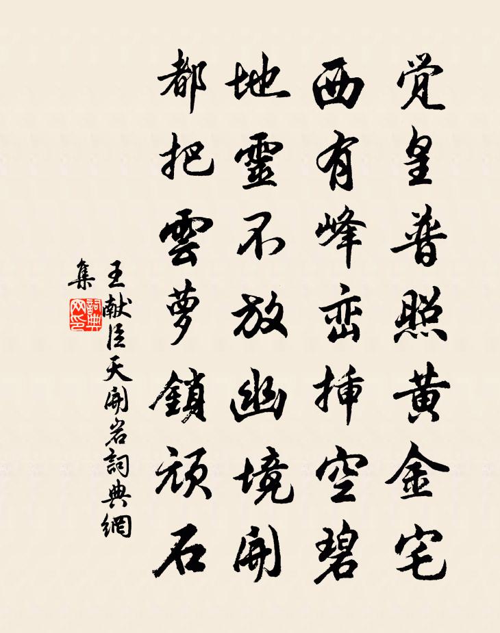 詩詞名句歷史字典書法欣賞書法字典國語詞典說文解字康熙字典古漢語字典標 題 作 者 詩 句 天開岩作者:王獻臣 朝代:宋代天開岩原文覺皇普照黃金宅,西有峰巒插空碧。地靈不放幽境開,都把雲蘿鎖頑石。詩詞問答問:天開岩的作者是誰?答:王獻臣問:天開岩寫於哪個朝代?答:宋代王獻臣天開岩書法欣賞天開岩書法作品詩詞推薦句王以詠〔宋代〕劍水落霞晴熨綠,衍峰新月夜梳鬟。曉雪陸游〔宋代〕觀雪剡溪天下勝,題詩常恨不能奇。未應便許凝之語,此興何曾有盡時?偈頌一百零二首釋慧遠〔宋代〕良宵三月十五,依舊神歌鬼舞。未須三四吐吞,且看七八吞吐。臨濟瞎驢倒跨,雲門 * 眼普。三人證鱉成龜,一漁父詞(其十四)趙構〔宋代〕春入渭陽花氣多。春歸時節自清和。沖曉霧,弄滄波。載與俱歸又若何。雨晴郊寓目賀鑄〔宋代〕城中厭雨過清和,偶出西郊野意多。蠶簇趁晴初摘繭,麥場經潤欲生蛾。營巢黃鳥啼深樹,引犢青牛飲暮河。老圃杏洪咨夔〔宋代〕萬山築底作春妍,一樹繁紅直幾錢。深院日長來燕後,平池水暖浴鵝天。弦歌禮樂詩書地,榜帖功名富貴天。兒輩遣懷杜牧〔唐代〕落魄江湖載酒行,楚腰纖細掌中輕。十年一覺揚州夢,贏得青樓薄倖名。正月三日閒行白居易〔唐代〕黃鸝巷口鶯欲語,烏鵲河頭冰欲銷。[黃鸝,坊名。烏鵲,河名。]綠浪東西南北水,紅欄三百九十橋。[蘇之官偈傾一百三十三首釋法薰〔宋代〕無心亦無法,非法亦非心。大勛不豎賞,柴扉草自深。李員外寄紙筆韓愈〔唐代〕題是臨池後,分從起草余。兔尖針莫並,繭淨雪難如。莫怪殷勤謝,虞卿正著書。神女廟蘇軾〔宋代〕大江從西來,上有千仞山。江山自環擁,恢詭富神奸。深淵鼉鱉橫,巨壑蛇龍頑。旌陽斬長蛟,雷雨移蒼灣。蜀守石佛釋了演〔宋代〕積念有年瞻石佛,今朝一見絕疑猜。都盧面目只如此,卻道三生鑿出來。程帥以古人名作詩見寄擬作謝之陳造〔宋代〕胸次不平當近酒,熱官奮揚肯回首。即今羊杜詩中仙,襄陽城中獅子吼。我將仲子趨黃堂,孰看畢戰搴旌幢。抗顏和陶答龐參軍六首蘇軾〔宋代〕丱妙侍側,兩髦丫分。歌舞壽我,永為歡欣。曲終棲然,仰視浮雲。此曲此聲,何時復聞。八月十七日,復登望海樓,自和前篇,是日榜蘇軾〔宋代〕眼昏燭暗細行斜,考閱精強外已夸。明日失杯君莫怪,早知安足不成蛇。送楊剛中赴淮安教授仇遠〔宋代〕西蜀楊君子,才為博士優。儒宮清似水,學舍不於舟。吳地仍多潦,淮田薄有收。雖非溫飽計,足解友朋憂。深靜堂莊珙〔宋代〕卜築愔愔不記年, * 布衲夙因緣。一燈明滅照秋雨,殘炷有無縈暮煙。空谷風篁自無韻,虛窗霜葉警安禪。昔游舟著淺李流謙〔宋代〕御風起帆如彍矢,不能萬里猶千里。中流浪頭屋高起,誤入淺洲舟閣底。愚公不量欲移山,篙人伎窮客長嘆。世言百一詩 十三應璩〔魏晉〕大魏承衰弊。復欲密其羅。蚍蜉猶見得。何雲鰍與蝦。狴犴既已備。歘復置黃沙。謹和老人賦牛尾貍二首洪咨夔〔宋代〕踏白霜明夜,牽黃木葉秋。斕斑文未豹,觳觫炙先牛。奈玉開三面,蒸酥讓一頭。酒邊縴手削,醉倒老浮丘。名句推薦刻薄不賺錢,忠厚不折本。馮夢龍《醒世恆言·卷三》 樹繞村莊,水滿陂塘。秦觀《行香子·樹繞村莊》 草滿池塘水滿陂,山銜落日浸寒漪。雷震《村晚》 萬里無人收白骨,家家城下招魂葬。張籍《征婦怨》 錦江近西煙水綠,新雨山頭荔枝熟。張籍《成都曲》 閏余成歲,律呂調陽。周興嗣《千字文·全文》 貧賤非辱,貧賤而諂求於人者為辱王永彬《圍爐夜話·第三一則》 唯見鴻雁飛,令人傷懷抱。高適《登百丈峰二首》 唯天下至誠,為能盡其性;能盡其性,則能盡人之性。子思《中庸·第二十二章》 愛子心無盡,歸家喜及辰。蔣士銓《歲暮到家》