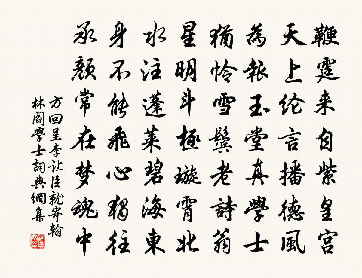 詩詞名句歷史字典書法欣賞書法字典國語詞典說文解字康熙字典古漢語字典標 題 作 者 詩 句 呈李讓臣就寄翰林閻學士作者:方回 朝代:宋代呈李讓臣就寄翰林閻學士原文鞭霆來自紫皇宮,天上綸言播德風。為報玉堂真學士,猶憐雪鬢老詩翁。星明斗極璇霄北,水注蓬萊碧海東。身不能飛心獨往,承顏常在夢魂中。詩詞問答問:呈李讓臣就寄翰林閻學士的作者是誰?答:方回問:呈李讓臣就寄翰林閻學士寫於哪個朝代?答:宋代方回呈李讓臣就寄翰林閻學士書法欣賞呈李讓臣就寄翰林閻學士書法作品詩詞推薦句韓維〔宋代〕一笛西風吹落日,滿帆行客背孤城。初夏陳紀〔宋代〕梅子黃時雨又晴,春衫未脫暑猶輕。天橫遠岫半眉綠,雲漏斜陽一眼明。野樹晚風清蝶夢,曲池芳草亂蛙聲。浮生雜詩李復〔宋代〕當路莫張機,張機不可行。潛深巢高杪,魚鳥知愛生。立義禁為非,意欲求無刑。刻核苟太至,視死心亦輕。偶作仇遠〔宋代〕元亭真止酒,昭文不鼓琴。文章成小伎,道德負初心。故友凋零盡,中年感慨深。從來麋鹿性,只是愛山林。窺開吟邵雍〔宋代〕物理窺開後,人情照破時。情中明事體,理外見天機。題吉水縣廳前新栽小松李中〔唐代〕劚開幽澗蘚苔斑,移得孤根植砌前。影小未遮官舍月,翠濃猶帶舊山煙。群花解笑香寧久,眾木雖高節不堅。輸我老病相仍以詩自解白居易〔唐代〕榮枯憂喜與彭殤,都似人間戲一場。蟲臂鼠肝猶不怪,雞膚鶴髮復何傷。昨因風發甘長往,今遇陽和又小康。[春癸丑上元三夕皆大雨雪陸游〔宋代〕雨雪連三日,孤城冷欲冰。泥深唯響屐,風惡更吹燈。空惱追歡客,何關在定僧。一杯嘗豉煎,寒影對崚嶒。暇日邀王天任諸公游南坡天任有詩因次韻虞儔〔宋代〕雨驟頻垂腳,山高故隱巔。南坡疑斷路,平地怪流泉。猿鶴誰為伴,鳧鴻亦墮前。梅黃雖借潤,榴火漫呈妍。人世竹枝歌十首汪元量〔宋代〕湘江日落亂帆飛,不向東歸便北歸。楊柳渡頭村店裡,青裙女子賣烏柙。釂飲一首蘇籀〔宋代〕珠零醇碧郁春槽,矯首梅林釂自陶。橫槊未應隨李廣,團詞亦足擬王襃。俯從觴詠山陰禊,遙說笙簧錦里遨。取次小雪後書事陸龜蒙〔唐代〕時候頻過小雪天,江南寒色未曾偏。楓汀尚憶逢人別,麥隴唯應欠雉眠。更擬結茅臨水次,偶因行藥到村前。鄰翁次韻孫翊尉李石〔宋代〕芻狗分明跡已陳,鑿開七竅是天真。低枝斥鷃從渠笑,深水蛟龍得自神。清苕釋文珦〔宋代〕清曉泛苕濱,長歌撥櫂頻。山川開霽景,草木暢余春。野老知閒趣,沙鷗似故人。絕勝拈塵尾,駕說弊精神。偈頌八十五首釋妙倫〔宋代〕游魚潤底沉浮,幽鳥林間下下。那堪東園刈麥,西疇插秧新田,小姑摘葉飼蠶,公子揚鞭走馬。望江南李綱〔宋代〕新雨足,一夜滿南塘。禾更稻向成初吐秀,芰荷雖敗尚余香。爽氣入軒窗。澄霽後,遠岫更青蒼。兩部蛙聲鳴鼓吹偶題張伯威〔宋代〕壺中別景絕塵埃,不是山靈閟不開。午夜月華冬雪,為無人向此時來。林下宋祁〔宋代〕林下追涼久,山西反照初。蘭苕香自怨,蟬腹飽猶虛。李暗傾冠外,棋殘折屐餘。蕭然皋壤樂,何必羨池魚。夜泊荊溪陳羽〔唐代〕小雪已晴蘆葉暗,長波乍急鶴聲嘶。孤舟一夜宿流水,眼看山頭月落溪。入秋遊山賦詩略無闕日戲作五字七首識之以野陸游〔宋代〕驢病比已損,秋風輕四蹄,朝游支遁寺,暮涉乾吉溪。青嶂環孤村,綠波溢橫堤。吾行本無定,所至窮攀躋。細推名句推薦山高月小,水落石出。蘇軾《後赤壁賦》 孤之有孔明,猶魚之有水也。陳壽《隆中對》 寧添一斗,莫添一口。佚名《增廣賢文·上集》 愁與西風應有約,年年同赴清秋。史達祖《臨江仙·閨思》 蟲有虺者,一身兩口,爭食相齕遂相殺也,人臣之爭事而亡其國者,皆虺類也。韓非及後人《韓非子·說林下》 信者人之乾也,義者行之節也。劉向《列女傳·貞順傳·陳寡孝婦》 無錢休入眾,遭難莫尋親。佚名《增廣賢文·上集》 一年最好,偏是重陽。吳文英《惜黃花慢·菊》 讀書不下苦功,妄想顯榮,豈有此理?王永彬《圍爐夜話·第一一四則》 已訴徵求貧到骨,正思戎馬淚盈巾。杜甫《又呈吳郎》