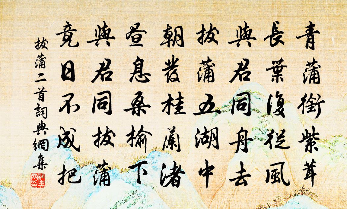 在湖上,和情人一塊兒拔著蒲草,心裡沉浸在甜蜜之中,可是只顧與情人說笑,拔了半天,手裡的蒲草還沒有一把呢。