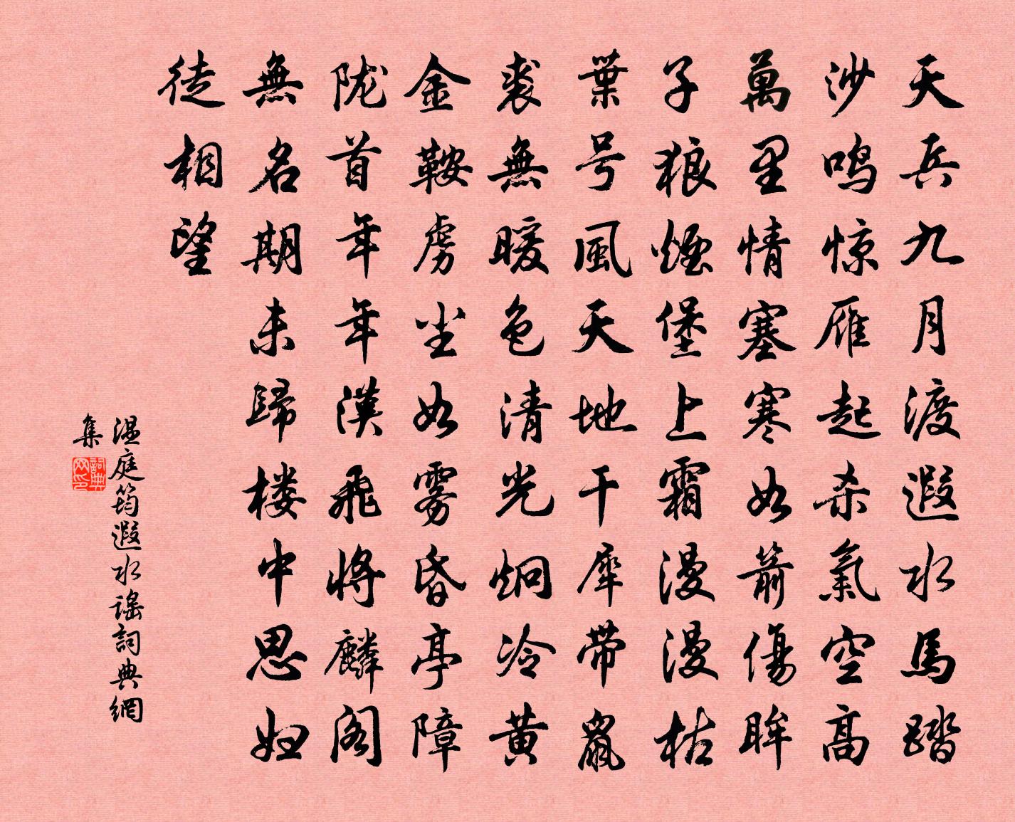天兵九月渡遐水,馬踏沙鳴驚雁起。殺氣空高萬里情,塞寒如箭傷眸子。