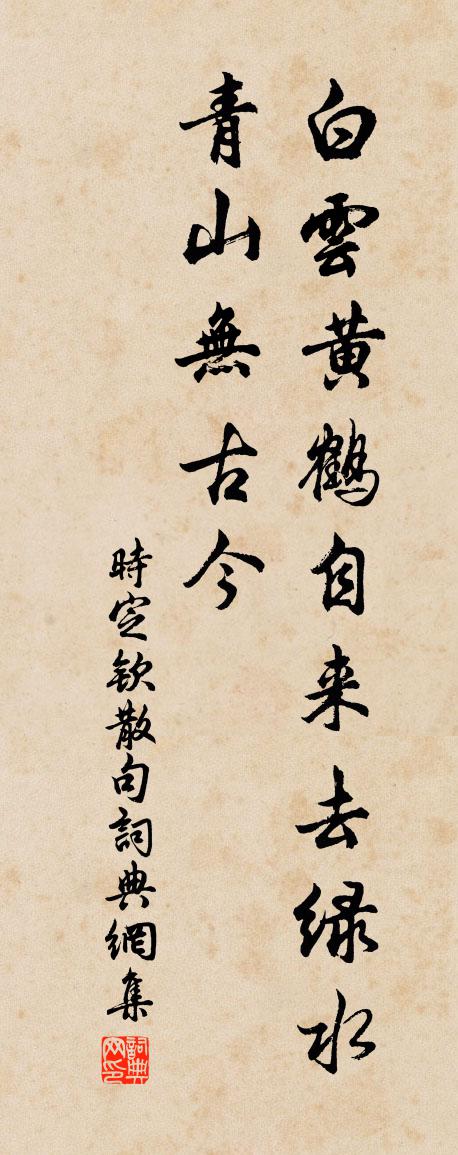 詩詞名句歷史字典書法欣賞書法字典國語詞典說文解字康熙字典古漢語字典標 題 作 者 詩 句 句作者:時定欽 朝代:宋代句原文白雲黃鶴自來去,綠水青山無古今。詩詞問答問:句的作者是誰?答:時定欽問:句寫於哪個朝代?答:宋代時定欽句書法欣賞句書法作品詩詞推薦富陽妙庭觀董雙成故宅發地得丹鼎覆以銅盤承蘇軾〔宋代〕鼎在耳二首人去山空鶴不歸,丹亡鼎在世徒悲。可憐九轉功成後,卻把飛升乞內芝。琉璃擊碎走金丹,無復神光發上史魏公壽三首孫應時〔宋代〕清都絳闕拱慈皇,鶴駕雞鳴起未央。父子至情如一日,國家慶事冠前王。公功實作風雲舊,帝學於今日月光。天壽吹角張耒〔宋代〕斷霞歸鳥隔山鍾,日過西山轉海空。長恨南城催曉急,五更吹角怨秋風。送張伯起入都二首方回〔宋代〕西湖風景異,因仕住桐川。太守令求宅,諸生為買田。冷官清可喜,遠道老堪憐。何似嚴灘守,投簪二十年。喜符郎詩有天縱孟郊〔唐代〕念符不由級,屹得文章階。白玉抽一毫,綠珉已難排。偷筆作文章,乞墨潛磨揩。海鯨始生尾,試擺蓬壺渦。幸當朝中措張掄〔宋代〕鳴榔驚起鷺鷥飛。山遠水瀰瀰。米賤茅柴酒美,霜清螃蟹螯肥。人生所貴,逍遙快意,此外皆非。卻笑東山太傅,解語花趙以夫〔宋代〕紅香濕月,翠影停雲,羅襪塵生步。並肩私語。知何事、暗遣玉容泣露。閒情最苦。任笑道、爭妍似妒。倒銀河,江園書事寄盧綸司空曙〔唐代〕種柳南江邊,閉門三四年。艷花那勝竹,凡鳥不如蟬。嗜酒漸嬰渴,讀書多欲眠。平生故交在,白首遠相憐。首尾吟邵雍〔宋代〕堯夫非是愛吟詩,詩是堯夫無必時。或讓或爭時既往,相因相革事難齊。羲軒堯舜前規矩,湯武桓文舊範圍。一筆再題巾山二絕貽王如山監簿舒岳祥〔宋代〕北山自負任翻句,多少詩人閣筆休。戎挾兩峰懷袖去,並它句子一時收。峽石鋪范成大〔宋代〕峰頭壁立偉天造,萬雉石城如帶繞。山骨鱗皴火種難,山下流泉卻宜稻。新秧一棱綠茸茸,茅花先秋雪搖風。後皇登鄆州溪堂黃庶〔宋代〕仁智模來物狀親,登臨宜入古圖身。慣看韓老詩中景,樹色泉聲似故人。遣興七首李流謙〔宋代〕舞空三尺雪,笑指玉如泥。早日羞屠狗,窮途悔射鼷。掛心無妄念,省分有幽棲。舌在何須問,端憂愧老妻。梅花絕句陸游〔宋代〕池館登臨雪半消,梅花與我兩無聊。青羊宮裡應如舊,腸斷春風萬里橋!王氏碧雞園六詠清室王灼〔宋代〕碧雞古名坊,奔騰車馬塵。那知小洞天,清絕欲無鄰。一室對林樾,四時禽語新。焚香讀周易,意得氣自伸。明月人日後歸自郡城楊萬里〔宋代〕倦來睡思酒般醲,曉起東園看曉風。孤負梅花三四日,新年人事到城中。湖口戴復古〔宋代〕水落山增峻,江空石出奇。倚篷看不足,解纜放教遲。沙上雁初到,樽前蟹可持。中秋能幾日,又是菊花時。舟過吳江謁臞庵翁少留為賦二詩仲並〔宋代〕明明窗色極知晚,隔岸喧闐祗掩關。上下亭台煙雨外,參差花竹水雲間。從多萌剪東南柳,勝絕新增西北山。客路箕山許月卿〔宋代〕箕山惟一瓢,襄邑亦四壁。古今一許氏,傳家以清白。茶山與東萊,三詩映圭璧。後來二三賢,題品互紬繹。南軒莫道晁說之〔宋代〕莫道飄零天一涯,安時自勝孰與嗟。已春庭宇不留雪,逢閏園林無早花。素履款游禪老室,白頭慣見富人家。胡然名句推薦其出不出,間不容髮。班固《漢書·傳·賈鄒枚路傳》 講性命之學者,不可無經濟之才。王永彬《圍爐夜話·第二六則》 沅有芷兮澧有蘭,思公子兮未敢言。屈原《九歌·湘夫人》 如貧得寶,如暗得燈,如飢得食,如旱得雲。馮夢龍《警世通言·卷九》 亂鴉三四點,愁坐話無憀。陳維崧《臨江仙·寒柳》 客睡何曾著,秋天不肯明杜甫《客夜》 半煙半雨溪橋畔,漁翁醉著無人喚。黃庭堅《菩薩蠻·半煙半雨溪橋畔》 江山如有待,花柳自無私。杜甫《後游》 勝敗兵家事不期,包羞忍恥是男兒。杜牧《題烏江亭》 欲心難厭如溪壑,財物易盡若漏卮。程登吉《幼學瓊林·卷三·人事》