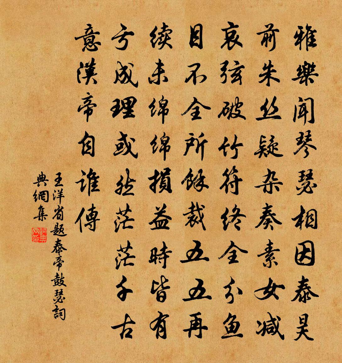詩詞名句歷史字典書法欣賞書法字典國語詞典說文解字康熙字典古漢語字典標 題 作 者 詩 句 省題泰帝鼓瑟作者:王洋 朝代:宋代省題泰帝鼓瑟原文雅樂聞琴瑟,相因泰昊前。朱絲疑雜奏,素1|1女減哀弦。破竹符終全,分魚目不全。所餘裁五五,再續未綿綿。損益時皆有,虧成理或然。茫茫千古意,漢帝自誰傳。詩詞問答問:省題泰帝鼓瑟的作者是誰?答:王洋問:省題泰帝鼓瑟寫於哪個朝代?答:宋代王洋省題泰帝鼓瑟書法欣賞省題泰帝鼓瑟書法作品詩詞推薦楊嗣勛惠茯苓高似孫〔宋代〕道是青神谷,元通白帝崖。有松如壯士,其魄化嬰兒。雲濕侵鴉嘴,天寒翦兔絲。堯初香摘髓,秦後雪凝脂。穴動夜檢故書得孫季蕃詞有懷其人二首劉克莊〔宋代〕貪聽譙更夜未眠,偶拈一卷向燈前。鳳簫按譜聲聲葉,鮫帕盛珠顆顆圓。洛叟曾規秦學士,蜀公晚喜柳屯田。江湖游九鎖龍大淵〔宋代〕峰巒九鎖路縈盤,翠色沾衣作晚寒。日暮神仙歸洞府,雨余星斗下天壇。人生何用千鍾貴,老去須求一室安。會得甘園杜甫〔唐代〕春日清江岸,千甘二頃園。青雲羞葉密,白雪避花繁。結子隨邊使,開筒近至尊。後於桃李熟,終得獻金門。古意十四首章雲心〔宋代〕谷風扇春和,卉木皆敷芬。貞松但如故,高標在煙雲。君子守常性,時榮非所欣。亦有孤鳳皇,不與眾鳥群。歸杜甫〔唐代〕束帶還騎馬,東西卻渡船。林中才有地,峽外絕無天。虛白高人靜,喧卑俗累牽。他鄉悅遲暮,不敢廢詩篇。姑蘇台作趙師秀〔宋代〕何人可與話登臨,徒倚危欄日又沈。千古蒼茫青史夢,一年迢遞故鄉心。天無雨雪梅花早,地有波濤雁影深。為是隆興書堂自警三十五首陳淳〔宋代〕人稟五行秀,卓然與物異。由其達大經,秉彝不容己。侍伯兄宿履庵即事呈本老王柏〔宋代〕朔風蕭騷霜正濃,追隨雁影來城東。樓閣寶門八字啟,一超逕入青蓮宮。老師槌拂活潑潑,臨機一喝開盲聾。舌根次安溪趙簿雲津閣韻陳宓〔宋代〕兼旬積雨截晴虹,洗出溪出罨畫中。別浦漁歌來暝色,長橋人語半秋空。吏閒剩得三更月,民阜多逢五日風。作計水調歌頭佚名〔宋代〕橘記一年景,梅泄小春英。見說彭成仙隱,對此慶生辰。壽比太公欠一,年並楚丘逾九,益壯異常人。細數稱觴日句朱復之〔宋代〕紅蕖老去羞明鏡,推讓朱榮上蓼梢。【中呂】粉蝶兒_丫髻環條,鄧玉賓〔元代〕丫髻環條,急流中棄官修道,鹿皮囊草履麻袍。翠岩前,青松下,把個茅庵兒圍抱。除了猿鶴,等閒間世無人到。遣興七首李流謙〔宋代〕懷抱向誰盡,窮交苦不多。相期慰岑寂,未厭數經過。濁酒隨斟酌,新詩聽講磨。吾今已三十,不擬問如何。雪晴項安世〔宋代〕夜來露生謝嫦娥,造得清霜爾許多。底事日高猶未落,看他青女嫁羲和。遠別離張耒〔宋代〕遠別離,明當入蜀去。酒酣日落客心驚,起與僕夫先議路。引車在庭牛在槽,桐枝裊裊秋風豪。別情惆悵氣不下,以青氈與志道真德秀〔宋代〕沖寒暫行役,遺汝以青氈。要識夜眠處,當如親膝前。凊溫供子職,清白保家傳。小令多堪法,毋顓字畫妍。小釀告熟童子索覆瓶紙坼舊藁與之趙蕃〔宋代〕太玄適足覆醬瓿,舊藁乃獲塓酒尊。從來事有幸不幸,一笑掀髯誰與論。夜宿華藏寺張鎡〔宋代〕蒼檜陰陰未掩門,閒來吹鬢一飛蚊。香騰廣殿游雲合,燈繞長廊列宿分。般若心華方照耀,毗耶寶自何繽紛。世緣西江月朱敦儒〔宋代〕琴上金星正照,硯中鸖眼相青。閒來自覺有精神。心海風恬浪靜。且喜面前花好,更聽林外鶯新。瓮頭清辣洞庭春名句推薦心病終須心藥治,解鈴還是系鈴人。曹雪芹《紅樓夢·第九十回》 不虛美,不隱惡司馬光《資治通鑑·唐紀·唐紀十三》 寧教我負天下人,休教天下人負我。羅貫中《三國演義·第四回》 春還草閣梅先動,月滿虛庭雪未消。王守仁《元夕二首》 醉臥沙場君莫笑,古來征戰幾人回?王翰《涼州詞二首·其一》 嫦娥應悔偷靈藥,碧海青天夜夜心。李商隱《嫦娥》 鐵衣霜露重,戰馬歲年深。戎昱《塞下曲·其六》 思君如流水,何有窮已時。徐幹《室思》 白日何短短,百年苦易滿。李白《短歌行》 人煙寒橘柚,秋色老梧桐。李白《秋登宣城謝朓北樓》