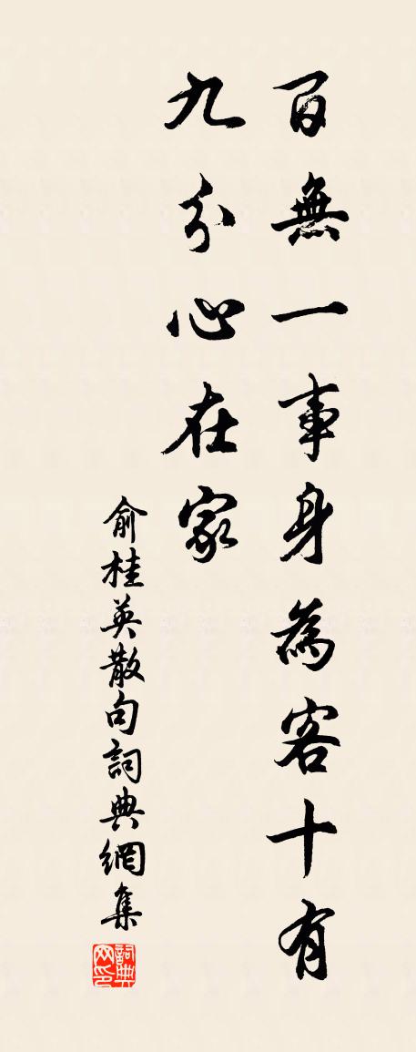 詩詞名句歷史字典書法欣賞書法字典國語詞典說文解字康熙字典古漢語字典標 題 作 者 詩 句 句作者:俞桂英 朝代:宋代句原文百無一事身為客,十有九分心在家。詩詞問答問:句的作者是誰?答:俞桂英問:句寫於哪個朝代?答:宋代俞桂英句書法欣賞句書法作品詩詞推薦和沈子美梅詩王洋〔宋代〕一氣如權衡,俯仰在緹室。鼓行橐籥間,草木俱應律。物物各有長,輩行皆屈膝。誰能長百花,寒梅最先密。自此留題方乾處士舊居范仲淹〔宋代〕風雅先生舊隱存,子陵台下白雲村。唐朝三百年冠蓋,誰聚詩書到遠孫。和孔密州五絕 東欄梨花蘇軾〔宋代〕梨花淡白柳深青,柳絮飛時花滿城。惆悵東欄二株雪,人生看得幾清明。宿水亭鮑溶〔唐代〕雕楹彩檻壓通波,魚鱗碧幕銜曲玉。夜深星月伴芙蓉,如在廣寒宮裡宿。偈六十三首釋道寧〔宋代〕開門待知識,知識不來過。知識既過,憑何施設。金果早期猨摘去,玉花晚後鳳銜來。西江月(送錢待制)蘇軾〔宋代〕莫嘆平原落落,且應去魯遲遲。與君各記少年時。須信人生如寄。白髮千莖相送,深杯百罰休辭。拍浮何用酒為池起晚自嘲陸游〔宋代〕辛苦一生何所獲,老向東阡與南陌。頭眩眼暗牙齒疏,能作人間幾時客?爾來偷惰更可笑,臥聽場中打新麥。老雞晚步溪旁示周次顏趙蕃〔宋代〕村醉不能醒,徐行得蹔停。路收泥活活,田擁麥青青。放意知予獨,喔詩賴子聽。要觀溪潦暴,卻畏晚風泠。山行觀紫雲洞胡仲弓〔宋代〕浪遊知幾載,久不到山巔。泉石曾留意,煙霞未有緣。松陰長匝地,塔穎欲鑽天。待洗塵埃腳,重來訪紫仙。禪房十事紙被釋紹曇〔宋代〕通身不掛寸絲,單明一色邊事。要知結角羅紋,徑問床分枕子。講稿公妓飲問政堂有誚予不來者借韻呈司戶同虞儔〔宋代〕東家誰念我累然,慚愧何曾十萬錢。病骨那禁三伏熱,長眉空負十分妍。睡涼喜有青奴伴,藥瞑頻呼赤腳煎。閣束春晴楊萬里〔宋代〕日透微風暖,風揉嫩日佳。秪知趲桃李,不道落梅花。立春帖子太上皇后閣周必大〔宋代〕冰泮西湖里,人游玉燭中。非關風習習,端為樂融融。用初三日韻簡伯玉昆仲趙蕃〔宋代〕雨勢忽已過,雲峰空復生。蹔能蘇暑病,未足慰農情。同社推詩好,今宵況月明。三人非對影,難弟與難兄。挽鍾保義杜范〔宋代〕竇館名猶在,燕山事有光。解衣非楚纊,指廩異齊棠。映日庭蘭蔚,餘風宰木香。翠眠垂世勸,寧復事雕章。金縷曲詞二首顧貞觀〔清代〕寄吳漢槎寧古塔,以詞代書,丙辰冬,寓京師千佛寺,冰雪中作。季子平安否?便歸來,平生萬事,那堪回首!行貴池道中作張祜〔唐代〕羸驂驅野岸,山遠路盤盤。清露月華曉,碧江星影寒。離群徒長泣,去國自加餐。霄漢寧無舊,相哀自語端。桂花蘇泂〔宋代〕手種秋風碧玉成,花開如粟水沉驚。人間商略年年事,到底其如一字清。水落二首楊萬里〔宋代〕輕寒瑟瑟入船中,閉卻船門下卻篷。要得新晴江水落,不應更恨打頭風。和程公辟游宿猿洞二首陳襄〔宋代〕幾年營此草堂棲,施飾名園百卉齊。曾學子真耕谷口,今容摩什老山西。龍台日上千峰出,雁塔雲生一徑迷。知有名句推薦下馬登鄴城,城空復何見。岑參《登古鄴城》 此已被私慾隔斷,不是知行的本體了。王陽明《傳習錄·卷上·徐愛錄》 可能無意傳雙蝶,盡付芳心與蜜房。宋祁《落花》 遊絲冉冉花枝靜,青壁迢迢白鳥過。王守仁《春晴》 蠶無夏織桑充寨,田廢春耕犢勞軍。杜荀鶴《題所居村舍》 陽關萬里道,不見一人歸。庾信《重別周尚書》 寸寸微雲,絲絲殘照,有無明滅難消。賀雙卿《鳳凰台上憶 * ·寸寸微雲》 心能辨事非,處事方能決斷;人不忘廉恥,立身自不卑污。王永彬《圍爐夜話·第二十則》 漫惹爐煙雙袖紫,空將酒暈一衫青。納蘭性德《浣溪沙·伏雨朝寒愁不勝》 虢國夫人承主恩,平明騎馬入宮門。張祜《集靈台·其二》