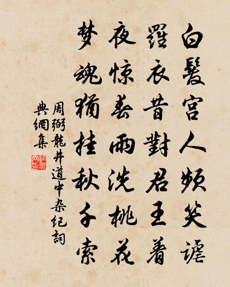 詩詞名句歷史字典書法欣賞書法字典國語詞典說文解字康熙字典古漢語字典標 題 作 者 詩 句 龍井道中雜紀作者:周弼 朝代:宋代龍井道中雜紀原文白髮宮人頻笑謔,羅衣昔對君王著。夜驚春雨洗桃花,夢魂猶掛鞦韆索。詩詞問答問:龍井道中雜紀的作者是誰?答:周弼問:龍井道中雜紀寫於哪個朝代?答:宋代周弼龍井道中雜紀書法欣賞龍井道中雜紀書法作品詩詞推薦白玉樓步虛詞(六之二)范成大〔宋代〕浮黎路,依約太微間。雪色寶階千萬丈,人間遙作白虹看。幢節度高寒。送查仲文三首項安世〔宋代〕先生江海乾,使者水曹郎。開絹印三道,懷人天一方。上江春水急,穿峽晚雲長。詩酒勤陶寫,中年屬易傷。酒闌高斯得〔宋代〕世道日淪忽,涔淚夜中滋。客問子何傷,傷予士氣痿。不見齊魯閧,所爭在糟醨。我勿燥已久,幸歌韓奕詩。若遭春帖子詞皇帝閣十二首宋祁〔宋代〕水暖蛟冰解,灰飛鳳管和。陽春與皇澤,並付女夷歌。送王西樞出鎮鄭圃八首之五賀鑄〔宋代〕前日神州尹,聲華掩趙張。春風長有待,難樹是甘棠。梅花五首楊公遠〔宋代〕高標獨立歲寒時,不受狂蜂浪蝶知。樹百千年枯更好,花三兩點少為奇。暗香疎影孤山句,卻月凌風水部詩。雇我挽雲門鄭君黃榦〔宋代〕結友雲門日,曾聞谷口翁。松肥三徑雨,鱸熟一絲風。行業鄉閭敬,詩書子姓同。論心獨余恨,秋草對碑豐。天台行王冕〔元代〕東南海闊秋無煙,天台山與天相連。丹霞紫霧互吞吐,重岡復嶺青盤旋。怪石長松磊磊兮落落,神芝靈草綿綿兮芊春日城南聞禽鳥聲喧甚為賦二十二韻戴表元〔宋代〕今日春氣至,新禽各啁嘲。豈無好唇舌,入耳何怓怓。雊鵒最多端,能以巧自餚。黃頭亦翾給,微吭和且調。無計追次仇仁近韻謾成三首方回〔宋代〕風雲乘變化,微賤忽公孤。內足窮過達,多求智返愚。談鋒椎衍奭,筆陣掃孫吳。時彥當如此,吾歸釣雪鱸。慶侄耆登第王仲修〔宋代〕錫宴便傾光祿酒,賜袍還照上林花。衣冠盛事堪書日,六世詞科只一家。南鄉子·生甲更生庚蕭廷之〔宋代〕生甲更生庚。此是丹頭切要明。藥嫩采來歸土釜,煎烹。文武剛柔次第行。片餉結丹成。沐浴防危更守城。到此不送葛都官南歸林之奇〔宋代〕不羨新為赤縣尹,惟羨暫向江南歸。江南羃羃梅雨時,風帆差差並鳥飛。罾竿夾岸長若桅,水籠畜魚鮮且肥。家在日暖萬年枝郭求〔唐代〕旭日升溟海,芳枝散曙煙。溫仁臨樹久,煦嫗在條偏。陽德符君惠,嘉名表聖年。若承恩渥厚,常屬棟樑賢。生植洛陽道江總〔隋代〕小平路四達。長楸聽五鍾。玉節迎司隸。錦車歸濯龍。弦歌聲不息。環佩響相從。花障蕩舟笑。日暎下山逢。西塞山懷古劉禹錫〔唐代〕西晉樓船下益州,金陵王氣黯然收。千尋鐵鎖沉江底,一片降幡出石頭。人世幾回傷往事,山形依舊枕江流。今逢偈十三首釋慧空〔宋代〕祖師心印,堪作何用。無位真人,屎也不直。獨步青霄,徒夸好手。和泥合水,罕遇同流。南陽酇詩王祜〔宋代〕置酒向南宮,分明將將雄。指蹤為第一,大國賞元戎。似續惟人傑,危忘盡狗功。賢哉垂儉德,千古仰清風。竊憶舊遊再賦一篇蘇頌〔宋代〕早見登龍奪錦標,繼聯官契仕蒙譙。雕章屢愛函京作,宰樹常論故國喬。久嘆徊翔淹禁閣,方欣良直贊清朝。前篇聽寒更寄朱兵曹巨川皎然〔唐代〕欹枕聽寒更,寒更發還住。一夜千萬聲,幾聲到君處。名句推薦雲來山更佳,雲去山如畫。張養浩《雁兒落兼得勝令》 青山欲共高人語。聯翩萬馬來無數。辛棄疾《菩薩蠻·金陵賞心亭為葉丞相賦》 武公不但歌淇澳,賢女猶能唁衛侯。姜塘《摘星樓九日登臨》 天道之數,至則反,盛則衰。管仲《管子·重令》 不知何日始工愁。記取那回花下一低頭。王國維《虞美人·弄梅騎竹嬉遊日》 雞聲茅店月,人跡板橋霜。溫庭筠《商山早行》 畫圖恰似歸家夢,千里河山寸許長。辛棄疾《鷓鴣天·送元濟之歸豫章》 一為遷客去長沙,西望長安不見家。李白《與史郎中欽聽黃鶴樓上吹笛 / 題北榭碑》 常思某人境界不及我,某人命運不及我,則可以知足矣王永彬《圍爐夜話·第六一則》 漢寢唐陵無麥飯,山溪野徑有梨花。趙鼎《寒食》