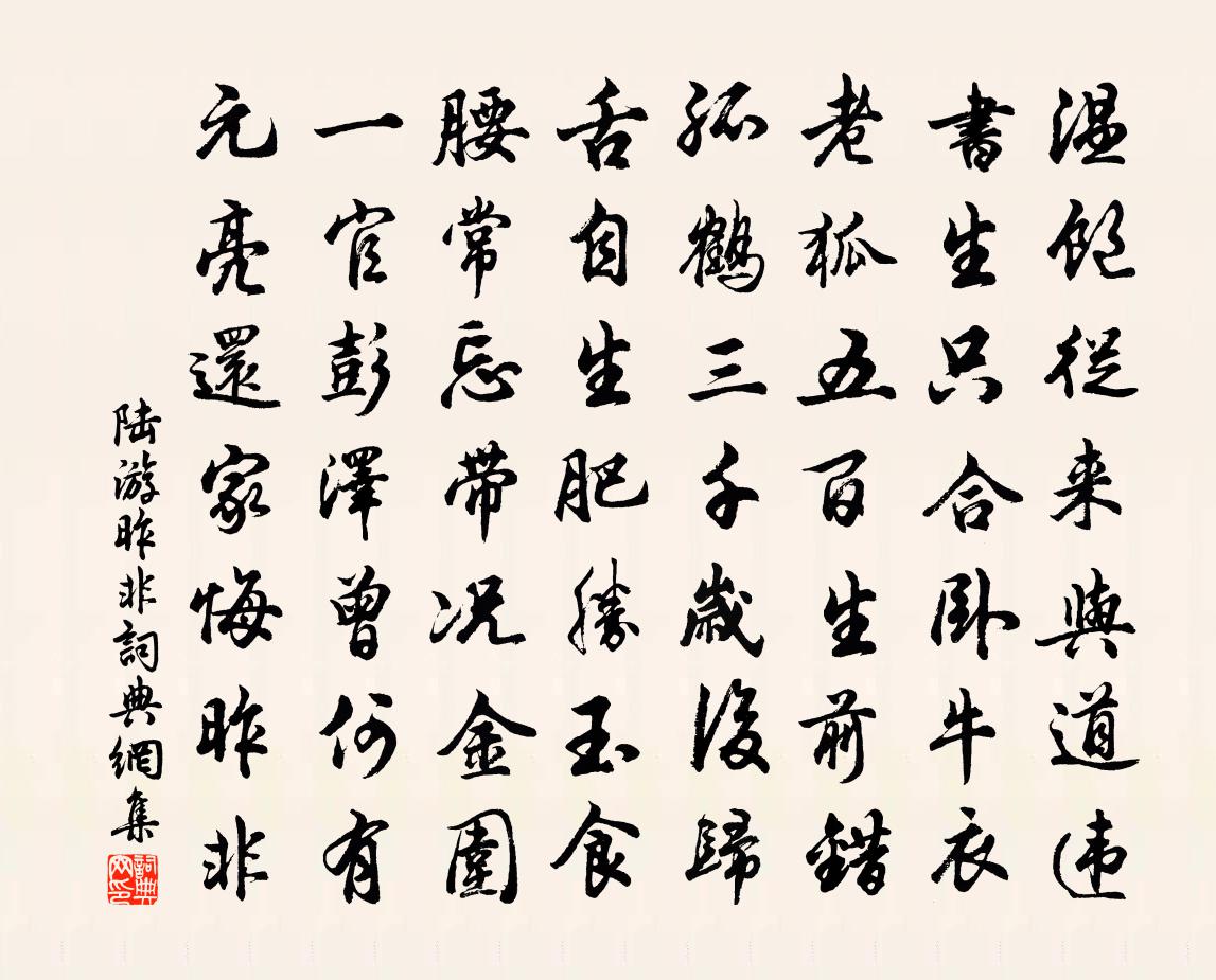 詩詞名句歷史字典書法欣賞書法字典國語詞典說文解字康熙字典古漢語字典標 題 作 者 詩 句 昨非作者:陸游 朝代:宋代昨非原文溫飽從來與道違,書生只合臥牛衣。老狐五百生前錯,孤鶴三千歲後歸。舌自生肥勝玉食,腰常忘帶況金圍。一官彭澤曾何有,元亮還家悔昨非。詩詞問答問:昨非的作者是誰?答:陸游問:昨非寫於哪個朝代?答:宋代問:陸游的名句有哪些?答:陸游名句大全陸游昨非書法欣賞昨非書法作品詩詞推薦送傳道者歸省母氏釋正覺〔宋代〕夜來霜嚇橘臍黃,乞與歸人懷冷香。到日跨門須轉卻,白頭不是本生娘。自警陸游〔宋代〕生世如夢境,淹速無定時。少壯不可恃,況汝迫耄期。五官及百骸,自揣日益衰,客來能送迎,要是強支持。百口次韻弟觀詠丹山池荷陳著〔宋代〕寺枕丹霞五月涼,藕花數朵碧漪塘。梵天幻出水雲錦,法雨洗空時世妝。七寶池邊分得種,大乘經里噴來香。是花使東川梁州夢元稹〔唐代〕夢君同繞曲江頭,也向慈恩院院游。亭吏呼人排去馬,所驚身在古梁州。送日本國僧敬龍歸韋莊〔唐代〕扶桑已在渺茫中,家在扶桑東更東。此去與師誰共到,一船明月一帆風。長干行李益〔唐代〕憶妾深閨里,煙塵不曾識。嫁與長乾人,沙頭候風色。五月南風興,思君下巴陵。八月西風起,想君發揚子。去來居茅山作劉誼〔宋代〕曾跨江西使者鞍,直言才上便休官。三茅得夢全清瘦,頭髮鬅鬙布襖寬。麴生訪宿白居易〔唐代〕西齋寂已暮,叩門聲嘀嘀。知是君宿來,自拂塵埃席。村家何所有?茶果迎來客。貧靜似僧居,竹林依四壁。廚燈入塞曲曹勛〔宋代〕黑水迢迢黑山暮,馬鳴蕭蕭夜爭度。胡笳四起黃雲愁,角聲嗚咽何悠悠。隴山行斷不回首,一番回首添白頭。偈頌二十一首釋普寧〔宋代〕去年十月十七,被命來屍敗席。陳逋弊積如山,中外倉庫亦立。勉效佛在世時,持缽沿門求乞。不憚涉險登危,波廬陵城外戴復古〔宋代〕郭外人煙好,行行過北阡。迎船分社肉,汲井種春田。綠樹前村路,黃梅細雨天。客游鄉土別,景物只同然。鹹平親郊八首諸臣撰〔宋代〕有牲斯純,有俎斯陳。進於上帝,昭報深仁。賀新郎(京學類申時作)姚勉〔宋代〕劍吼蛟龍怒。問蒼天、功名兩字,幾時分付。生個英雄為世用,須早青雲得路。卻底事、知音未遇。兩度入天飛折過鄰家陸游〔宋代〕今日病良已,筇枝發興新。高居遺世事,一笑過吾鄰。夕照明丹葉,秋風老白苹。素衣雖化盡,不為犯京塵。客舍對梅陸游〔宋代〕野迥林寒一水傍,密如疏蕊正商量。半霜半雪相仍白,無蝶無蜂自在香。月過曉窗移影瘦,風傳殘角引聲長。還憐登樓顧非熊〔唐代〕登樓一南望,淮樹楚山連。見雁無書寄,歸吳定此年。紀懷陸游〔宋代〕未斸要離冢畔雲,儈牛得食寄鄉枌。修身本欲善吾死,臨事豈忘尊所聞。時序管寧親饋奠,江山龐老上丘墳。飾巾贈韓侍禁李覯〔宋代〕閥閱山西舊將家,一官淪落向天涯。目皮相處應難識,髀肉生來只自嗟。野囿幾年飢虎豹,旱雷何日起龍蛇。吳歌苦雨聞包諫議欲見訪戲贈盧綸〔唐代〕草氣廚煙咽不開,繞床連壁盡生苔。常時多病因多雨,那敢煩君車馬來。次韻叔父台源歌黃庭堅〔宋代〕吾家叔度天與閒,晚喜著書如漆園。台平舊基水發源,但聞淙淙下林巒。一朝斬木見萬象,吞若雲夢胸中寬。漱滌名句推薦眼見的吹翻了這家,吹傷了那家,只吹的水盡鵝飛罷!王磐《朝天子·詠喇叭》 惟有兩行低雁,知人倚、畫樓月。范成大《霜天曉角·梅》 寒梅最堪恨,常作去年花。李商隱《憶梅》 昨夜秋風入漢關,朔雲邊月滿西山。嚴武《軍城早秋》 二分塵土,一分流水蘇軾《水龍吟·次韻章質夫楊花詞》 言不中法者,不聽也;行不中法者,不高也;事不中法者,不為也。商鞅《商君書·君臣》 總為浮雲能蔽日,長安不見使人愁。李白《登金陵鳳凰台》 遙知未眠月,鄉思在漁歌。杜荀鶴《送人游吳》 征人去日殷勤囑,歸雁來時數附書。王維《伊州歌》 燕子歸來依舊忙。憶君王,月破黃昏人斷腸。謝克家《憶君王·依依宮柳拂宮牆》