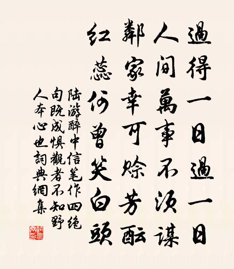 過得一日過一日,人間萬事不須謀。鄰家幸可賒芳醞,紅蕊何曾笑白頭。