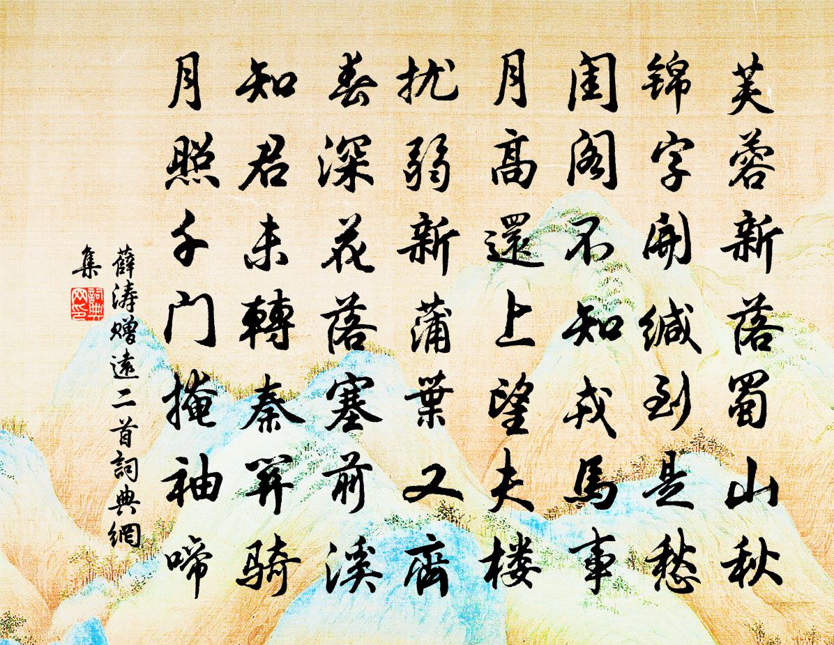 詩詞名句歷史字典書法欣賞書法字典國語詞典說文解字康熙字典古漢語字典標 題 作 者 詩 句 贈遠二首作者:薛濤 朝代:唐代贈遠二首原文芙蓉新落蜀山秋,錦字開緘到是愁。閨閣不知戎馬事,月高還上望夫樓。擾弱新蒲葉又齊,春深花落塞前溪。知君未轉秦關騎,月照千門掩袖啼。詩詞問答問:贈遠二首的作者是誰?答:薛濤問:贈遠二首寫於哪個朝代?答:唐代薛濤贈遠二首書法欣賞贈遠二首書法作品注釋全唐詩:卷803-54詩詞推薦感螢司馬扎〔唐代〕愛爾持照書,臨書嘆吾道。青熒一點光,曾誤幾人老。夜久獨此心,環垣閉秋草。大滌洞天留題樊處恭〔宋代〕持杯睥睨不逾時,一派寒聲落翠微。蛟室倒翻珠亂躍,瓊田耕破玉紛飛。壯懷搖動頻扶檻,濺沫飄零欲濕衣。繞磵故奚公學長輓詩虞儔〔宋代〕詩酒平生興,人琴畢竟空。儒冠成晚歲,尺牘到諸公。忽嘆群無鶴,誰留目送鴻。竹林家世事,清節見君同。賀新郎(及第作)姚勉〔宋代〕嘗不喜舊詞所謂‘宴罷瓊林,醉游花市,此時方顯男兒志。’以為男兒之志,豈止在醉游花市而已哉,此說殊未然薔薇花聯句裴度〔唐代〕似錦如霞色,連春接夏開。——劉禹錫波紅分影入,風好帶香來。 ——裴度得地依東閣,當階奉上台。 ——行句馮京〔宋代〕琴彈夜月龍魂冷,劍系秋風鬼膽粗。題趙質夫艇齋董穎〔宋代〕瘦竹吟風橫笛處,叢蕉著雨打蓬時。錦鱗只向銅盤釣,鱅比松江似更奇。相和歌辭。採蓮曲二首戎昱〔唐代〕雖聽採蓮曲,詎識採蓮心。漾楫愛花遠,回船愁浪深。煙生極浦色,日落半江陰。同侶憐波靜,看妝墮玉簪。涔陽漫興 其一王冕〔元代〕詔布河流復,其功說賈生。豈因疏鑿費?恰重戰爭名。軍士雖然散,農人尚未耕。九州多禹跡,何日與君評?樵叟貫休〔唐代〕樵父貌飢帶塵土,自言一生苦寒苦。擔頭擔個赤瓷罌,斜陽獨立濛籠塢。游吉祥登棘庵別業釋紹嵩〔宋代〕屋在瀑泉西,看來眼轉迷。松風清颯颯,秋日正淒淒。海鳥和濤望,山鼯隔水啼。何須更飛錫,祗此是曹溪。五月二十八日書詩人壁黃宗羲〔清代〕不鉤簾幕晝沉沉,難向庸醫話病深。不識詩人容易病,一春花鳥總關心。東韋曲野思唐彥謙〔唐代〕淡霧輕雲匝四垂,綠塘秋望獨顰眉。野蓮隨水無人見,寒鷺窺魚共影知。九陌要津勞目擊,五湖閒夢誘心期。孤燈柬陳南園翁森〔宋代〕自昔賢哲士,遭運每多屯。世途自屈曲,難揉胸輪囷。終夜起太息,所憂非賤貧。相望各努力,勗哉追古人。緋桃唐彥謙〔唐代〕短牆荒圃四無鄰,烈火緋桃照地春。坐久好風休掩袂,夜來微雨已沾巾。敢同俗態期青眼,似有微詞動絳唇。盡日夜出溪上宋祁〔宋代〕隴首孤雲斷,坳塘綠水周。螢光不欺夜,蟲織自悲秋。早雁離離度,歸舟泛泛流。萱蘇共搖落,底處是忘憂。元夕應人求題酒肆鐙陳著〔宋代〕鐙花三五夜,鼓笛十分春。欲見太平事,誰非沈醉人。一落索晁端禮〔宋代〕正向溪堂歡笑。忽驚傳新詔。馬啼準擬樂郊行,又卻近、長安道。鸛鵲樓邊初到。未花殘鶯老。崔徽歌舞有餘風,二月十日雨趙蕃〔宋代〕喜雪仍喜雨,相須旬日期。天民終自恤,歲事可前知。起我泛舟役,思渠荷笠詩。嗔人問米價,王掾果真痴。雜興張鎡〔宋代〕子云閉門學,非願雕蟲稱。於道實有省,爵位豈所營。洙泗嗟已遠,惜不偕群英。太玄法言書,莫誚徒擬經。名句推薦人間夢隔西風,算天上、年華一瞬。吳文英《惜秋華·七夕》 盡做舊愁都忘卻,新愁何處著王庭筠《謁金門·雙喜鵲》 莫飲卯時酒,昏昏醉到酉。佚名《增廣賢文·上集》 子胥既棄吳江上,屈原終投湘水濱。李白《行路難三首》 飛蓬各自遠,且盡手中杯。李白《魯郡東石門送杜二甫》 對秋深,離恨苦,數夜滿庭風雨。孫光憲《更漏子·對秋深》 典盡客衣三尺雪,煉精詩句一頭霜。王建《維揚冬末寄幕中二從事》 單者易折,眾則難摧魏收《魏書·列傳·卷八十九》 何以解憂?唯有杜康。曹操《短歌行》 春水碧於天,畫船聽雨眠。韋莊《菩薩蠻·人人盡說江南好》