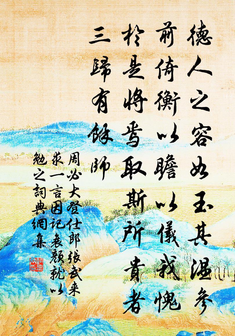 詩詞名句歷史字典書法欣賞書法字典國語詞典說文解字康熙字典古漢語字典標 題 作 者 詩 句 登仕郎張武來求一言因記衰顏就以勉之作者:周必大 朝代:宋代原文德人之容,如玉其溫。參前倚衡,以瞻以儀。我愧於是,將焉取斯。所貴者三,歸有餘師。詩詞問答問:《登仕郎張武來求一言因記衰顏就以勉之》的作者是誰?答:周必大問:該詩寫於哪個朝代?答:宋代書法欣賞登仕郎張武來求一言因記衰顏就以勉之書法作品詩詞推薦送王庾宋祁〔宋代〕倦客衣空化,求知刺欲漫。孤飛回鷁路,別淚溢鮫盤。待舉秋槐老,承顏夏枕安。新篇時寄我,魚信接長瀾。雲際院小池荷花才落,一葉急楊萬里〔宋代〕欲落荷花先自愁,如何落後免沉浮。誰將碧玉圓盤子,和蕊和花一一收。長沙勸耕真德秀〔宋代〕千金難買是鄉鄰,恩意相歡即至親。年若少時宜敬老,家才足後合憐貧。琵琶亭喻良能〔宋代〕琵琶人去幾經秋,司馬青衫亦故丘。唯有當時亭下水,無情依舊更東流。思蜀陸游〔宋代〕園廬已卜錦城東,乘驛歸來更得窮。只道驊騮開道路,豈知魚鳥困池籠。石犀祠下春波綠,金雁橋邊夜燭紅。未死句吳子良〔宋代〕問花何事人偏愛,會遇淵明把玩來。觀潮王琮〔宋代〕旗彩斜飛一命輕,舟人卻立萬舟迎。不應當日將軍事,猶到如今氣未平。陶穀題南唐官舍壁佚名〔唐代〕西川狗,百姓眼。馬包兒,御廚飯。漁家傲呂勝己〔宋代〕聞道西洲梅已放。幾時乘興同尋訪。稚子攜壺翁策杖。徐徐往。青山綠水皆堪賞。滿月當空川晃晃。卻呼艇子遙雙憶昔陸游〔宋代〕憶昔紹興中,束帶陪眾彥,沐浴雨露私,草木盡蔥蒨。一朝窮達異,相遇忘慶唁。遠官楚蜀間,寂寞返鄉縣。於時句周月船〔宋代〕緊去門前栽柳樹,逢春先綠向陽枝。紫微花董嗣杲〔宋代〕枝幹無皮癢有身,朱房翠戶演精神。星垣光射開花地,綸閣香侵視草臣。肘肘紫蕤飛烈日,心心黃粟舞晴塵。何從碧桃春/阮郎歸丁持正〔宋代〕幾年辛苦搗元霜。一朝瓊粉香。雲英縹渺曳仙裳。相將騎鳳凰。鍧帝樂,酌天漿。千年顏色芳。從茲歸去白雲鄉。聲聲慢 壽金桂軒,時有入道之意袁易〔元代〕宿雲不捲,輕雪初銷,乾坤正*冰霜。清入萱叢,誰知春在華堂。潘與笑觀戲彩,動星文、兩兩輝煌。堪羨處,看密庵先師贊釋崇岳〔宋代〕咬豬狗之手討巴鼻,奮劈胸之拳瞎卻頂門。出達磨身血,斷衲僧命根。纖毫不肯放過,叢林為讎為冤。個般種草決梅子汪炎昶〔宋代〕又是江南煙雨時,黃梅正解蹙人眉。平生謾說和羹事,一騎紅塵屢荔枝。伯夷頌韓愈〔唐代〕 士之特立獨行,適於義而已,不顧人之是非:皆豪傑之士,信道篤而自知明者也。一家非之,力行而不惑者寡熙寧蜡祭十三首佚名〔宋代〕穰穰豈豐上,翳侯休德。師承天和,欽象古則。嘉玉量幣,奠容翼翼。靈施暨民,罔有終極。挽蔡祭酒詩二首曹彥約〔宋代〕昔締金昆好,慈恩有舊題。及今如社燕,與子共朝雞。未見星常北,相逢日易西。定應湖上路,塞色黯招提。木芙蓉劉兼〔唐代〕素靈失律詐風流,強把芳菲半載偷。是葉葳蕤霜照夜,此花爛熳火燒秋。謝蓮色淡爭堪種,陶菊香穠亦合羞。誰道名句推薦四百年來成一夢,堪愁。王安石《南鄉子·自古帝王州》 天時人事日相催,冬至陽生春又來。杜甫《小至》 颯颯東風細雨來,芙蓉塘外有輕雷。李商隱《無題·颯颯東風細雨來》 似此星辰非昨夜,為誰風露立中宵。黃景仁《綺懷》 雄關漫道真如鐵,而今邁步從頭越。 * 《憶秦娥·婁山關》 傷高懷遠幾時窮。無物似情濃。張先《一叢花令·傷高懷遠幾時窮》 甘受人欺,定非懦弱;自謂予智,終是糊塗。王永彬《圍爐夜話·第一二五則》 夫君子之行,靜以修身,儉以養德。諸葛亮《誡子書》 傳聞一戰百神愁,兩岸強兵過未休。曹松《己亥歲二首·僖宗廣明元年》 吾生如寄,尚想三徑菊花叢。楊炎正《水調歌頭·把酒對斜日》