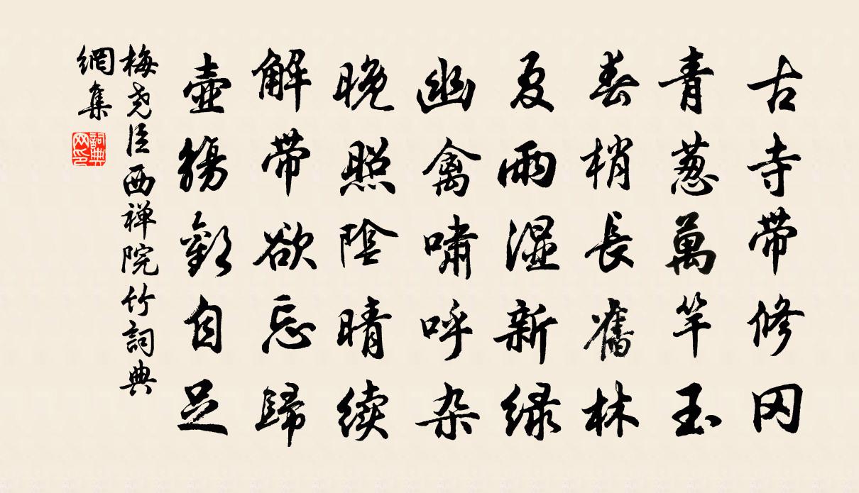 古寺帶修岡,青蔥萬竿玉。春梢長舊林,夏雨濕新綠。