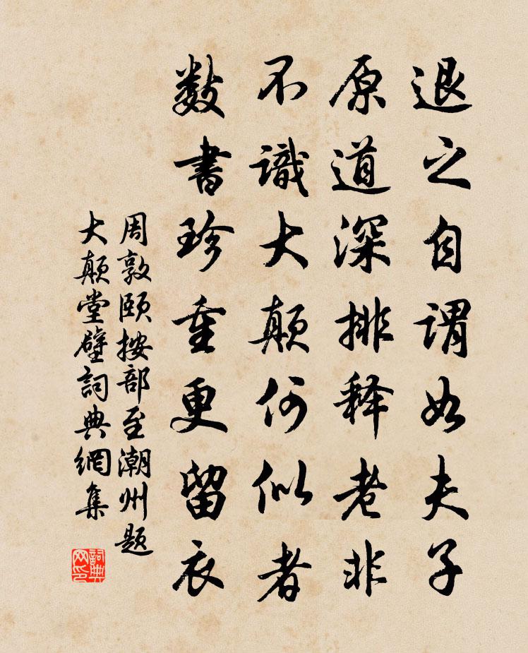 詩詞名句歷史字典書法欣賞書法字典國語詞典說文解字康熙字典古漢語字典標 題 作 者 詩 句 按部至潮州題大顛堂壁作者:周敦頤 朝代:宋代按部至潮州題大顛堂壁原文退之自謂如夫子,原道深排釋老非。不識大顛何似者,數書珍重更留衣。詩詞問答問:按部至潮州題大顛堂壁的作者是誰?答:周敦頤問:按部至潮州題大顛堂壁寫於哪個朝代?答:宋代周敦頤按部至潮州題大顛堂壁書法欣賞按部至潮州題大顛堂壁書法作品詩詞推薦句王度〔宋代〕雲生坐來石,風掩讀殘書。西府直舍盆池種蓮二首楊萬里〔宋代〕飛空天鏡墮莓苔,玉井移蓮旋旋栽。坐看一花隨手長,挨開半葉出頭來。稍添菱荇相縈帶,便有龜魚數往回。剩欲落梅馮時行〔宋代〕不禁清瘦怯風霜,遠信先憑驛使將。樓上笛聲吹舊曲,鑒中人面學新姜。飄零院宇仍多思,點綴簾櫳亦自香。留與減字木蘭花黃庭堅〔宋代〕見,復用前韻先往使君那裡。千騎塵中依約是。拂我眉頭。無處重尋庾信愁。山雲瀰漫。夾道旌旗聯復斷。萬事茫題池州弄水亭杜牧〔唐代〕弄水亭前溪,颭灩翠綃舞。綺席草芊芊,紫嵐峰伍伍。螭蟠得形勢,翬飛如軒戶。一鏡奩曲堤,萬丸跳猛雨。檻前送人赴闕趙蕃〔宋代〕雪後晴催江上船,一杯政爾話蟬連。人生契闊可堪數,後會渺茫還屬天。薦墨向來非草劃,除書此去定翩翩。西湖賢者之孝二百四十首申生林同〔宋代〕姬泣賊由於,子辭必罪姬。為憂君不樂,寧死莫君知。送敬法師歸福州姚合〔唐代〕結得隨緣伴,蟬鳴方出關。新經譯舊寺,故國與誰還。齋為無鍾早,心因罷講閒。東南數千里,何處不逢山。走筆再次西美韻兼簡季章周必大〔宋代〕天教尤物伴閒身,不為衣裳易介鱗。莫效盧亭思辟毒,且同李閣賦潛珍。釦金元重名兼器,飾帶空號假象真。久侍題沈弟所作短軸趙蕃〔宋代〕作詩政欲江山助,老矣東西南北人。弟卻把詩摹作畫,東西南北是知津。董伯懿示裴晉公平淮右題名碑詩用其韻和酬王安石〔宋代〕元和伐蔡何危哉,朝廷百口無一諧。盜傷中丞偶不死,利劍白日投天街。裹瘡入相議軍旅,國火一再更檀槐。上前情詩其二十四倉央嘉措〔清代〕傾城美色競群芳,品茗斗酒擅歡場。欲共卿卿兩相悅,不期魂魄歸帝鄉。處士隱居張祜〔唐代〕斜日半飛閣,高簾輕翳空。清香芙蓉水,碧冷琅玕風。絕岸派沿洑,修廊趾崇隆。唯當餌仙術,坐作朱顏翁。都中閒居王羨門〔唐代〕君王巡海內,北闕下明台。雲物天中少,煙花歲後來。河從御苑出,山向國門開。寂寞東京里,空留賈誼才。張府君輓詩史堯弼〔宋代〕頻年來往鄭公鄉,邂逅論文膝上郎。已訝樹風增感嘆,忽聞薤露送淒涼。【雙調】駐馬聽近鄭光祖〔元代〕秋閨財葉將殘,雨霽風高摧木杪;江鄉瀟灑,數株衰柳罩平橋。露寒波冷翠荷凋,霧濃霜重丹楓老。暮雲收,晴虹滿庭芳 邵公楊公為家緣拘擊告詞王哲〔元代〕論饑寒,公來問,中怎奈爺娘。牽兒絆,妻室惱愁腸。卦分明有說,田正、震地清涼。南看,前一點,何不*時詳立秋後作陸游〔宋代〕宋玉悲鞦韆載後,詩人例有早秋詩。老夫自笑心如石,三日秋風漫不知。十一月二十八日大雪有感釋寶曇〔宋代〕動地飛花變鶴林,天低直欲近牆陰。共知一飽明年事,誰識三號此日心。東望眼穿秦望白,西湖淚入鏡湖深。無邊連日得雨涼甚有作陸游〔宋代〕九淵龍起跨蒼茫,聊為西州洗亢陽。曉看空濛知歲稔,夜聞點滴覺心涼。紗幮不下蚊蠅靜,焙火微溫書畫香。睡足名句推薦脫鞍暫入酒家壚,送君萬里西擊胡岑參《送李副使赴磧西官軍》 慘慘柴門風雪夜,此時有子不如無。黃景仁《別老母》 何當共剪西窗燭,卻話巴山夜雨時。李商隱《夜雨寄北》 飛鴻過也。萬結愁腸無晝夜。蔣氏女《減字木蘭花·題雄州驛》 君子有三樂,而王天下不與存焉。孟子《孟子·盡心章句上·第二十節》 釀泉為酒,泉香而酒洌;歐陽修《醉翁亭記》 晝夜蔽日月,冬夏共霜雪。謝靈運《登廬山絕頂望諸嶠》 玉可碎而不可改其白,竹可焚而不可毀其節。羅貫中《三國演義·第七十六回》 酷暑天,葵榴發,噴鼻香十里荷花。白樸《得勝樂·夏》 自聞穎師彈,起坐在一旁。韓愈《聽穎師彈琴》