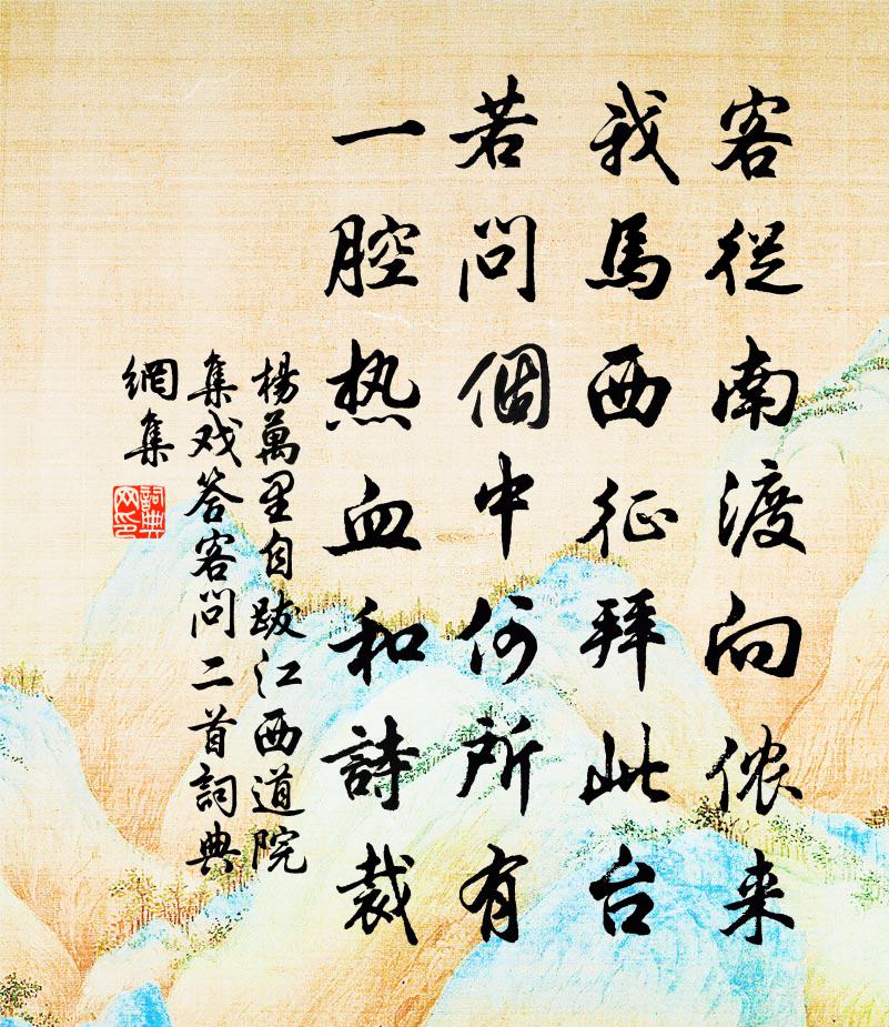 客從南渡向儂來,我馬西征拜此台。若問箇中何所有,一腔熱血和詩裁。