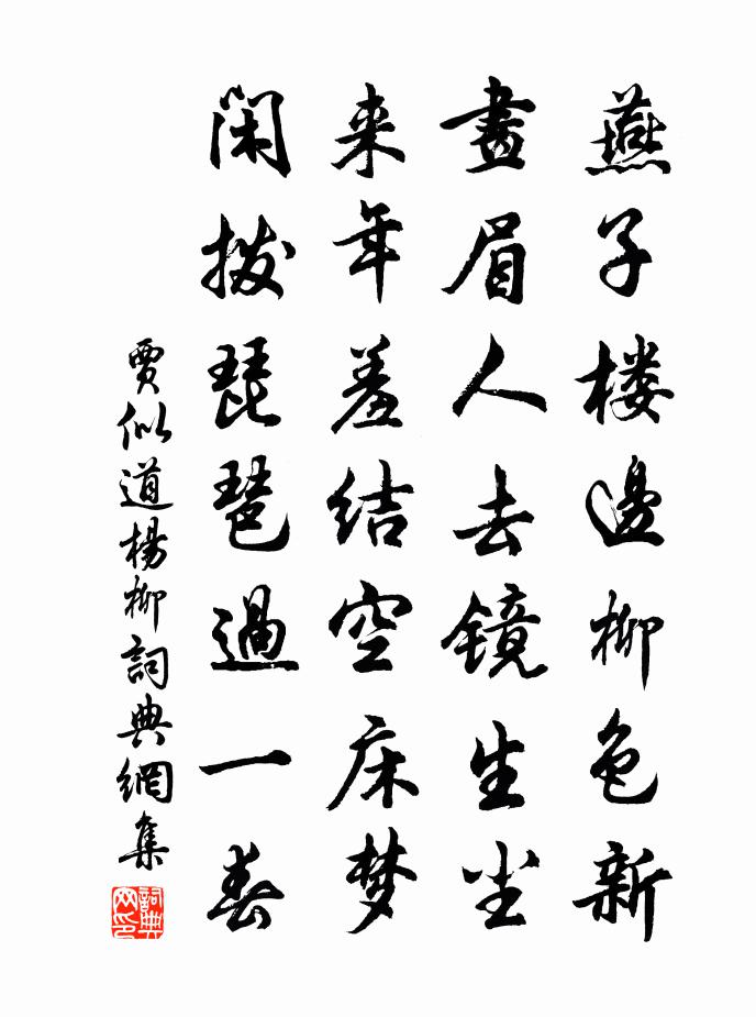 詩詞名句歷史字典書法欣賞書法字典國語詞典說文解字康熙字典古漢語字典標 題 作 者 詩 句 楊柳作者:賈似道 朝代:宋代楊柳原文燕子樓邊柳色新,畫眉人去鏡生塵。來年羞結空床夢,閒撥琵琶過一春。詩詞問答問:楊柳的作者是誰?答:賈似道問:楊柳寫於哪個朝代?答:宋代賈似道楊柳書法欣賞楊柳書法作品詩詞推薦杜鵑花成彥雄〔唐代〕杜鵑花與鳥,怨艷兩何賒。疑是口中血,滴成枝上花。一聲寒食夜,數朵野僧家。謝豹出不出,日遲遲又斜。寄劉泗州黃庭堅〔宋代〕萬馬千艘要路津,禪翁新畫兩朱輪。行春定得忘言對,金碧浮圖何姓人。滿江紅盧炳〔宋代〕罨畫池亭,對十萬、盈盈粉面。依翠蓋、臨風一曲,霓裳舞遍。亭上人如蓬島客,坐中別有飛瓊伴。占世間、風月橫浦十詠解太尉墓劉黻〔宋代〕檜肉不可食,但增忠義悲。焚香臨決日,扼腕議和時。偃月人何在,凌菸草亦知。曾聞無垢語,刊入墓頭碑。寄源休元結〔唐代〕天下未偃兵,儒生預戎事。功勞安可問,且有忝官累。昔常以荒浪,不敢學為吏。況當在兵家,言之豈容易。忽然謝謝疊山惠杜詩紙被陳紀〔宋代〕貧詩如蜜睡如錫,二貺偕來敢不登。錦軸一編變府稿,雪衾萬桿剡溪藤。朝來誦句能驅並,夜半眠雲稱伴僧。只恐雨晴風日絕佳徙倚門外陸游〔宋代〕茶釅無端廢午眠,杖藜信步到門前。青裙溪女結蠶卦,白髮廟巫催社錢。和邠老郎官湖懷古五首賀鑄〔宋代〕郎官老辭筆,得爾壽春碑。奸賊余靈在,斯文是戮屍。雪作兒童以衣袖盛之如柳花狀朱翌〔宋代〕六花幾歲不來南,大似優曇欲遇難。瓦響急傾鮫淚顆,袖寬先得柳花團。莫憂荔子明年少,已是梅英向臘殘。骨冷題蘇武忠節圖文天祥〔宋代〕忽報忠圖紀歲華,東風吹淚落天涯。蘇卿更有歸時國,老相兼無去後家。烈士喪元心不易,達人知命事何嗟。生平韓幹馬圖陸游〔宋代〕唐人畫馬如相馬,□□不在驪與共。天機入神即揮灑,氣脫毫素先騰驤。昔年曾畫穆王游八極,八龍之駿雲五色。十二月八日步至西村陸游〔宋代〕臘月風和意已春,時因散策過吾鄰。草煙漠漠柴門裡,牛跡重重野水濱。多病所須唯藥物,差科未動是閒人。今朝驀山溪(建康郡圃賞芍藥)侯置〔宋代〕玉麟春晚,綠篇甘棠蔭。可是惜花深,旋移得、翻階紅影。朱簾卷處,如在古揚州,寶瓔珞,玉盤盂,嬌艷交相映踏莎行姚寬〔宋代〕苹頁煙深,荷花露濕。碧蘆紅蓼秋風急。采菱渡口日將沈,飛鴻樓上人空立。彩鳳難雙,紅綃暗泣。回紋未剪吳刀慶春澤陳著〔宋代〕春困時光,風流昨夢,逢花便自醒醒。回首宣和,宮鶯掖燕相迎。歸來只戀春山好,到上林、枉是親曾。又誰知,題小槳劉褒〔宋代〕去日春蠶吐素絲,歸時秋菊剝金衣。沙鷗不入鴛鴻侶,依舊滄浪繞釣磯。雪霽曉登金山楊萬里〔宋代〕焦山東,金山西,金山排霄南斗齊。天將三江五湖水,並作一江字楊子。來從九天上,瀉入九地底。遇獄獄立摧,南樓令/唐多令張炎〔宋代〕雲冷未全開。檐冰雨沍苔。入花根、曖意先回。一夜綠房迎曉白,空憶遍、嶺頭梅。如幻舊情懷。尋春上吹台。正交韻秦會之題墨梅二首張於文〔宋代〕南枝春色弄微溫,記得清香撲酒尊。今日相逢隔煙霧,揚州殘夢足銷魂。四皓廟二首王禹偁〔宋代〕小言望小利,載在禮經中。遂有鷹犬輩,拔劍各爭功。一出定萬乘,去若冥冥鴻。寂寂千古下,孰繼采芝翁。名句推薦士有妒友,則賢交不親;君有妒臣,則賢人不至。荀子《荀子·大略》 高風吹玉柱,萬籟忽齊飄司空曙《風箏》 逞奸謀事,事難必其穩重,可惜他徒自壞心。王永彬《圍爐夜話·第五一則》 征蓬出漢塞,歸雁入胡天。王維《使至塞上》 猶喜閏前霜未下,菊邊依舊舞身輕。司空圖《白菊三首》 春生、夏長、秋收、冬藏,天之正也王詡《鬼谷子·持樞》 巴子城頭青草暮。巴山重疊相逢處。張先《漁家傲·和程公辟贈》 屈指數春來,彈指驚春去。高觀國《卜運算元·泛西湖坐間寅齋同賦》 心病終須心藥治,解鈴還是系鈴人。曹雪芹《紅樓夢·第九十回》 竹深樹密蟲鳴處,時有微涼不是風。楊萬里《夏夜追涼》