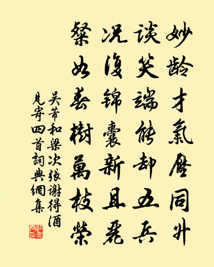 詩詞名句歷史字典書法欣賞書法字典國語詞典說文解字康熙字典古漢語字典標 題 作 者 詩 句 和梁次張謝得酒見寄四首作者:吳芾 朝代:宋代和梁次張謝得酒見寄四首原文妙齡才氣壓同升,談笑端能卻五兵。況復錦囊新且麗,粲如春樹萬枝榮。詩詞問答問:和梁次張謝得酒見寄四首的作者是誰?答:吳芾問:和梁次張謝得酒見寄四首寫於哪個朝代?答:宋代吳芾和梁次張謝得酒見寄四首書法欣賞和梁次張謝得酒見寄四首書法作品詩詞推薦八月望日深衣抱高廟御琴奠酒首歌南風繼作憶王奕〔宋代〕秋日暉暉兮槐市成林,白鳩關關兮漢柏陰陰。杏壇高兮幾尋,奠桂酒兮孤斟。蒼梧不可呼兮猶得抱南風之琴。哀顏楊花吳錫疇〔宋代〕飛舞隨春去不停,空條留得罩郵亭。狂心未肯沾泥死,猶作輕浮水上萍。雜曲歌辭。鳴雁行陸龜蒙〔唐代〕朔風動地來,吹起沙上聲。閨中有邊思,玉箸此時橫。莫怕兒女恨,主人烹不鳴。宮詞王仲修〔宋代〕卷幕風來滿殿涼,暉暉紅日上迴廊。郢坊初進酴醾酒,別是人間一種香。泊舟西村見居民雲數裡間有梅訪之殊未花趙蕃〔宋代〕漠漠煙村四五家,水清霜落路平沙。我來欲問梅訊息,地冷年年未放花。呈曾侍郎逮趙蕃〔宋代〕思人機作訪茶山,竹密如雲不敢刪。未覺風流成歲遠,政繇伯仲力追還。長公舊日曾一識,末路後來遭百艱。邂逅雜曲歌辭行路難三首顧況〔唐代〕君不見古來燒水銀,變作北邙山上塵。藕絲掛身在虛空,欲落不落愁 * 。睢水英雄多血刃,建章宮闕成灰燼。淮竹溪直院盛稱起予草堂詩之善暇日覽之多有可劉克莊〔宋代〕觸熱慵休息,誰知志士心。既名為惡木,不可就繁陰。炎赫當三伏,輪囷欲百尋。蔽牛徒隱映,下馬復沉吟。濁世狀江南仲秋沈仲昌〔唐代〕江南仲秋天,D 鼻大如船。雷是樟亭浪,苔為界石錢。尚長道十年離索杯酒話舊,憮然若隔世,醉筆楊萬里〔宋代〕麥黃秧碧百家衣,已熱猶寒四月時。雨復覓春無一寸,野薔薇發釅燕臘。古鼎作香爐范成大〔宋代〕雲雷縈帶古文章,子子孫孫永奉常。辛苦勒銘成底事?如今流落管燒香。贈五星陳東野方逢辰〔宋代〕粵從動靜極互根,裂為二氣分五行。未有二氣先有理,理與氣合人物生。人惟稟得天地氣,故為耳目形口鼻。人惟送潘臞齋赴會稽講席陳深〔宋代〕四十臞仙發未班,譚經海上看青山。曹江鞠白漫難讀,禹廟梅梁去自還。疊嶂曉晴詩筆說,平湖風定酒船閒。曾聞湘君祠(一作湘妃怨)陳羽〔唐代〕二妃怨處雲沉沉,二妃哭處湘水深。商人酒滴廟前草,蕭颯風生斑竹林。西樓月 勉道友馬鈺〔元代〕閒行閒坐閒眠。養丹田。常把東西南北,合和煎。處玄妙。波中燎。用抽添。五彩霞光覆載,一胎仙。地震蒲松齡〔清代〕康熙七年六月十七日戌刻,地大震。余適客稷下,方與表兄李篤之對燭飲。忽聞有聲如雷,自東南來,向西北去。甘棠橋袁說友〔宋代〕波入南溪綠,荷薰夾岸香。一川虹倒影,百步帶橫塘。舟榜橋邊柳,魚驚月下榔。人亡遺愛遠,誰復賦甘棠。留題光相寺王之望〔宋代〕至人悲念攝冥頑,倏見光明指顧間。億劫未曾親見佛,一宵今得暫棲山。從來葉障須除結,此去功名直等閒。欲以四休居士詩三首黃庭堅〔宋代〕無求不著看人面,有酒可以留人嬉。欲知四休安樂法,聽取山谷老人詩。賦順適堂葉茵〔宋代〕暗觸闊陵機,茅居峙竹扉。安時貧亦樂,聞道詠而歸。鳧鶴從長短,鳶魚自躍飛。吾猶臧谷耳,夷跖是耶非。名句推薦天門中斷楚江開,碧水東流至此回。李白《望天門山》 誤用聰明,何若一生守拙王永彬《圍爐夜話·第四一則》 牽衣頓足攔道哭,哭聲直上乾雲霄。杜甫《兵車行》 何事春風容不得?和鶯吹折數枝花。王禹偁《春居雜興·兩株桃杏映籬斜》 若要人不知,除非己莫為。佚名《增廣賢文·上集》 合歡桃核終堪恨,里許元來別有人。溫庭筠《南歌子詞二首 / 新添聲楊柳枝詞》 盈盈一水間,脈脈不得語。佚名《迢迢牽牛星》 故鄉遙,何日去。家住吳門,久作長安旅。周邦彥《蘇幕遮·燎沉香》 口之宣言也,善敗於是乎興左丘明《國語·周語·邵公諫厲王弭謗》 風雨如晦,雞鳴不已。佚名《風雨》