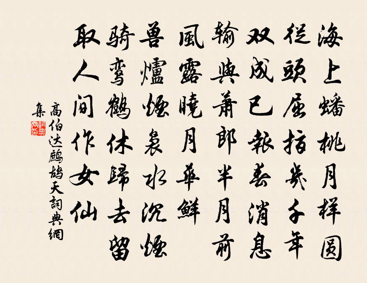 詩詞名句歷史字典書法欣賞書法字典國語詞典說文解字康熙字典古漢語字典標 題 作 者 詩 句 鷓鴣天作者:高伯達 朝代:宋代鷓鴣天原文海上蟠桃月樣圓。從頭屈指幾千年。雙成已報春訊息,輸與蕭郎半月前。風露曉,月華鮮。獸爐煙裊水沉煙。騎鸞ⅶ鶴休歸去,留取人間作女仙。詩詞問答問:鷓鴣天的作者是誰?答:高伯達問:鷓鴣天寫於哪個朝代?答:宋代問:鷓鴣天是什麼體裁?答:詞高伯達鷓鴣天書法欣賞鷓鴣天書法作品詩詞推薦滄州百姓歌佚名〔唐代〕新河得通舟楫利,直達滄海魚鹽至。昔日徒行今騁駟,美哉薛公德滂被。雁來紅孫吳會〔宋代〕訾碧成朱被眼瞞,分明是葉作花看。道人本不知香色,只與窗前草一般。春郊王銍〔宋代〕碧飛紅斷正傷春,萬里天涯一病身。芳草路長樓百尺,樓中更有憑欄人。琵琶洲王洋〔宋代〕塞外風煙能記否,天涯淪落自心知。眼中風物參差是,只欠江州司馬詩。挽游勉之侍郎二首劉克莊〔宋代〕不假橫金貴,居然比玉溫。諸公從上雍,一老立東門。伯氏推難弟,先師有嫡孫。耆英凋落盡,舊事向誰論。上雪潭三汲亭陳岩〔宋代〕水沫拋來驟出奇,滿空灑下雪紛披。雲端驚見雙峰面,恰是仙人剪水時。利州北佛龕前重於去歲題處作蘇頲〔唐代〕重岩載看美,分塔起層標。蜀守經塗處,巴人作禮朝。地疑三界出,空是六塵銷。臥石鋪蒼蘚,行塍覆綠條。歲年玩易齋趙蕃〔宋代〕晉士祖虛無,寧殊卜篋書。公今編幾絕,加我問何加。滿庭霜/滿庭芳李璆〔宋代〕白玉肌膚,清冰神彩,仙妃何事煙村。自然標韻,羞入百花群。不易盈盈瘦質,犯寒臘、獨作春溫。溪橋外,斜枝初秋即事陸游〔宋代〕簾櫳雨過不勝清,秋氣依依似有情。高棟尚余雙燕宿,短莎先放百蟲鳴。挑燈剩欲開書秩,擘蟹時須近酒觵。卻媿菩薩蠻陳克〔宋代〕綠陰寂寂櫻桃下。盆池劣照薔薇架。簾影假山前。映階紅葉翻。芭蕉籠碧砌。猧子中庭睡。香徑沒人來。拂牆花又用前韻呈曉村陳著〔宋代〕溪山兩相望,只隔五長亭。一見坐聯日,高談氣拂星。好賓知絡秀,兼仆困樵青。此會受多益,歸途杖可銘。春晚感事陸游〔宋代〕據鞍千里何曾病,閉戶安眠百病生。每憶嘉陵江上路,插花藉草醉清明。游嶺門山詩謝靈運〔南北朝〕西京誰修政。龔汲稱良吏。君子豈定所。清塵慮不嗣。早蒞建德鄉。民懷虞芮意。海岸常寥寥。空館盈清思。協以送王端公之太原歸覲相公戎昱〔唐代〕柱史今何適,西行詠陟岡。也知人惜別,終美雁成行。春雨桃花靜,離尊竹葉香。到時丞相閣,應喜棣華芳。梅花 其四王冕〔元代〕昔年曾踏西湖路,巢居閣上春無數。雪晴月白影精神,瑪瑙坡前第三樹。虬枝屈夷交碧苔,疏花暖送珍珠胎。初疑驀山溪佚名〔宋代〕小山蒼翠,竹影橫窗畔。青縷斷薰爐,覺身居、風台月觀。清香招近,誰為植幽叢,金作蓓,蕾成花,尚帶鵝黃淺題真仁夫畫卷劉克莊〔宋代〕草木黃落,水雲莽蒼。孤舟卸帆,凍雁失行。昔余遠遊,沿漓泝湘。堠長店疏,仆痡馬僵。行李蕭然,有詩滿囊。次韻楊廷秀待制瑞香花周必大〔宋代〕濡橋忍凍兩眉攢,漢殿含香別一般。粉面固宜垂紫袖,錦裳何必著中禪。禁庭侍史令同宿,宮帽花枝故自欒。咀嚼試製舉人呈同舍諸公二首蘇轍〔宋代〕早歲同科止六人,中年零落半埃塵。卻將舊學收新進,幾誤今生是後身。骯髒別都遺老驥,沉埋秘府愧潛鱗。憐君名句推薦日初出大如車蓋,及日中則如盤盂,此不為遠者小而近者大乎?列禦寇《兩小兒辯日》 何當重相見,尊酒慰離顏。溫庭筠《送人東遊》 樓兒忒小不藏愁。幾度和雲飛去、覓歸舟蔣捷《虞美人·梳樓》 君子反道以修德;正德以出樂;和樂以成順。呂不韋《呂氏春秋·紀·季夏紀》 章台柳,章台柳,昔日青青今在否?韓翃《章台柳·寄柳氏》 相望試登高,心隨雁飛滅。孟浩然《秋登蘭山寄張五》 惆悵南朝事,長江獨至今。劉長卿《秋日登吳公台上寺遠眺》 烽火照西京,心中自不平。楊炯《從軍行》 山迴路轉不見君,雪上空留馬行處。岑參《白雪歌送武判官歸京》 莫道桑榆晚,為霞尚滿天。劉禹錫《酬樂天詠老見示》