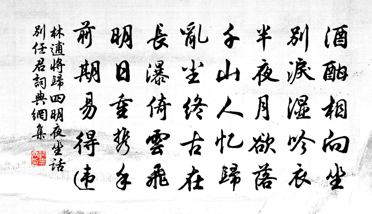 詩詞名句歷史字典書法欣賞書法字典國語詞典說文解字康熙字典古漢語字典標 題 作 者 詩 句 將歸四明夜坐話別任君作者:林逋 朝代:宋代將歸四明夜坐話別任君原文酒酣相向坐,別淚濕吟衣。半夜月欲落,千山人憶歸。亂塵終古在,長瀑倚雲飛。明日重攜手,前期易得違。詩詞問答問:將歸四明夜坐話別任君的作者是誰?答:林逋問:將歸四明夜坐話別任君寫於哪個朝代?答:宋代林逋將歸四明夜坐話別任君書法欣賞將歸四明夜坐話別任君書法作品詩詞推薦新秋自喜信筆曹勛〔宋代〕裊裊秋色來不慳,翩翻落葉鋪闌乾。藏鶯杜燕圃中靜,廬葉藕花波水寒。我生逢辰似陸賈,老去恨未歸長安。天公植萱石介〔宋代〕一人鬼橫行,武鬼王則羞鬼。今西鬼夷之鬼。抗中國而敵萬乘。西夷之服,升黃堂而驕諸侯。尊於天子,滿於九州邀月坐中庭胡仲弓〔宋代〕邀月坐中庭,清影不可駐。舉酒澆枯腸,落笑欠長句。瀣氣惟沾衣,秋聲遠鳴樹。磕睡依危欄,夢斷足幽趣。秋晚野步貫休〔唐代〕藤屨兼閩竹,吟行一水傍。樹涼蟬不少,溪斷路多荒。燒岳陰風起,田家濁酒香。登高吟更苦,微月出蒼茫。句劉郇伯〔唐代〕人生分外愁。大將軍宴會被命作詩陸雲〔魏晉〕在昔奸臣。稱亂紫微。神風潛駭。有赫茲威。靈旗樹斾。如電斯揮。致天子屆。於河之沂。有命冉集。皇輿凱歸。奉使契丹二十八首其十五虜帳蘇轍〔宋代〕虜帳冬住沙陀中,索羊織葦稱行宮。從官星散依冢阜,氈廬窟室欺霜風。舂粱煮雪安得飽,擊兔射鹿夸強雄。朝廷廢宅花朱慶餘〔唐代〕數樹荒庭上,芬芳映綠苔。自緣逢暖發,不是為人開。色艷鶯猶在,香消蝶已回。相從無勝事,誰向此傾杯。入歙方岳〔宋代〕野竹吾鄉路,逢人似故知。社寒催燕早,夜雨勒花遲。草入思連夢,山邀到歙詩。客中春一半,煞是負春彝。大滌洞天留題蘇瀛〔宋代〕天作名山滿世間,洞霄畢竟出塵寰。達翁不問長生藥,高興惟通九鎖關。願學坡仙遊赤壁,肯如謝老陟東山。羽人暇日游逍遙台睹南華塑像獨置一榻旁無侍衛前蘇頌〔宋代〕憶昔初讀南華篇,但愛閎辨如川源。沉酣漸得見真理,馳騖造化游胚渾。潛心四紀不知倦,間日講解時尋溫。其言臨江仙·昨夜個人曾有約納蘭性德〔清代〕昨夜個人曾有約,嚴城玉漏三更。一鉤新月幾疏星。夜闌猶未寢,人靜鼠窺燈。原是瞿唐風間阻,錯教人恨無情。虞姬墓范成大〔宋代〕劉項家人總可憐,英雄無策庇嬋娟。戚姬葬處君知否?不及虞兮有墓田。紹興朝會十三首佚名〔宋代〕八音克諧,萬舞有奕。上公奉觴,率茲百辟。聲效呼嵩,祝聖人壽。億截萬年,天長地久。思歸宋祁〔宋代〕刻意傷春屬暮樓,江皋歸棹悵夷猶。青蘿怨鶴英山曉,疏笛吟龍臥塢秋。掩泣泥陽思祖廟,長懷彭澤廢先疇。裂繻山中作人名詩方岳〔宋代〕負郭太幽深,結茅容易得。雖無桃李園,石老松柏直。山北雨后蒼,山南霽雲白。荷鋤課諸兒,陸續蔬甲拆。送著作范禮部知彭州項安世〔宋代〕三十六峰當郡前,世間無此好山川。辭家上馬消一日,去蜀題橋今七年。草奏南宮文似錦,紬書東觀筆如椽。批風代陳思王白馬篇鮑照〔南北朝〕白馬騂角弓。鳴鞭乘北風。要途問邊急。雜虜入雲中。閉壁自往夏。清野徑還冬。僑裝多闕絕。旅服少裁縫。埋身宿別瀑上二首劉克莊〔宋代〕十里荒荊手共開,屐痕歷歷在青苔。山中猿鳥愁予去,爭問先生幾日回。喜遷鶯(福唐平盪海寇宴犒將士席上作)曾覿〔宋代〕七閩形勝。鎮南紀會府,山川交映。簫鼓喧天,綺羅盈市,不負四時風景。共喜太平無事,豈料潢池不逞。殄群醜名句推薦君子周而不比,小人比而不周。孔子弟子《論語·為政篇》 從此信音稀,嶺南無雁飛。李師中《菩薩蠻·子規啼破城樓月》 芝蘭生於深林,不以無人而不芳,君子修道立德,不謂窮困而改節。佚名《孔子家語·在厄》 夫死戰場子在腹,妾身雖存如晝燭。張籍《征婦怨》 書當快意讀易盡,客有可人期不來。陳師道《絕句·書當快意讀易盡》 冰簟銀床夢不成,碧天如水夜雲輕。溫庭筠《瑤瑟怨》 隔牖風驚竹,開門雪滿山。王維《冬晚對雪憶胡居士家》 上無威,下生亂。來俊臣《羅織經·治下卷第三》 飲馬渡秋水,水寒風似刀。王昌齡《塞下曲四首》 君子時詘則詘,時伸則伸也。荀子《荀子·仲尼》