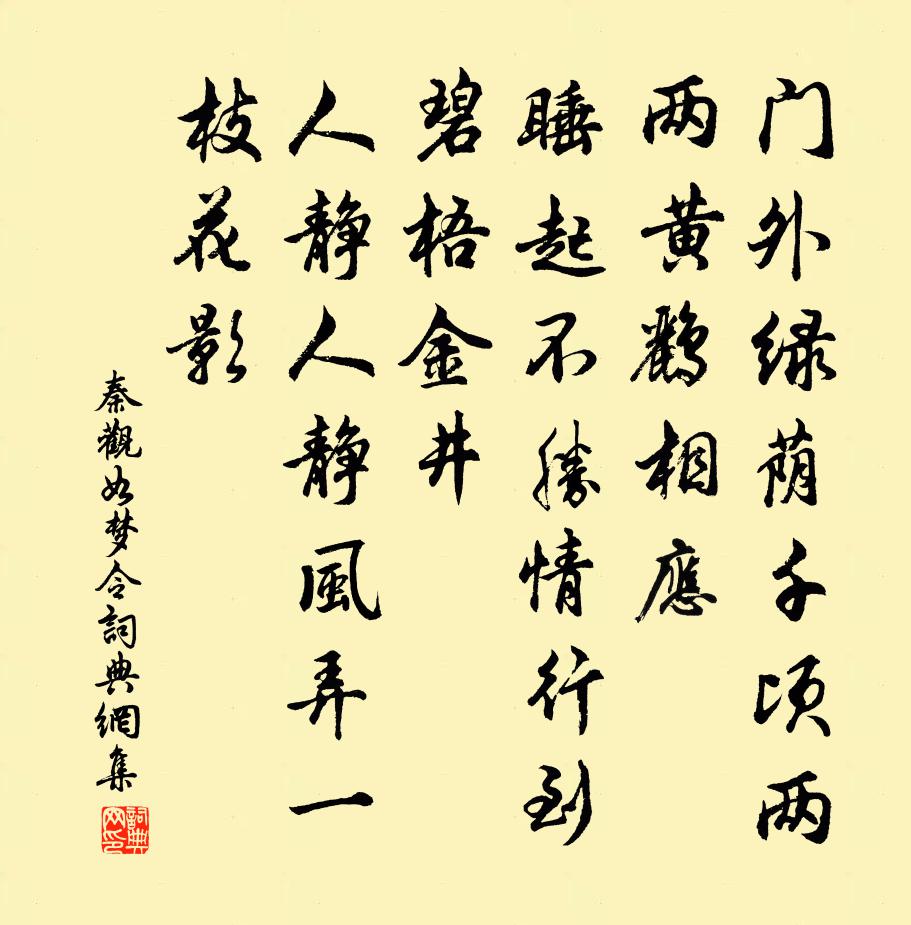 門外綠蔭千頃,兩兩黃鸝相應。睡起不勝情,行到碧梧金井。
