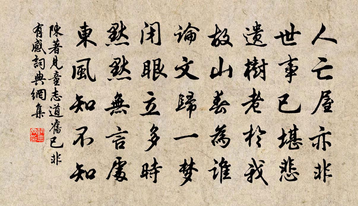 詩詞名句歷史字典書法欣賞書法字典國語詞典說文解字康熙字典古漢語字典標 題 作 者 詩 句 見童志道舊已非有感作者:陳著 朝代:宋代見童志道舊已非有感原文人亡屋亦非,世事已堪悲。遺樹老於我,故山春為誰。論文歸一夢,閉眼立多時。默默無言處,東風知不知。詩詞問答問:見童志道舊已非有感的作者是誰?答:陳著問:見童志道舊已非有感寫於哪個朝代?答:宋代陳著見童志道舊已非有感書法欣賞見童志道舊已非有感書法作品詩詞推薦和東林湛堂禪師喜雪韻五首袁燮〔宋代〕寂寞東林一老禪,殷勤念我惠佳篇。敢煩見在慈悲佛,為我投誠過去仟。齊天樂(賦橙)史達祖〔宋代〕犀紋隱隱鶯黃嫩,籬落翠深偷見。細雨重移,新霜試摘,佳處一年秋晚。荊江未遠。想橘友荒涼,木奴嗟怨。就說前後植木犀樓上月台盡見諸山張鎡〔宋代〕盛世適親逢,樓台等地雄。無形兼有象,俱在太和中。【雙調】壽陽曲_銀台燭,金盧摯〔元代〕銀台燭,金獸煙,夜方闌畫堂開宴。管弦停玉杯斟較淺,聽春風遏雲歌遍。金蕉葉,銀萼花,卷長江酒杯低亞。醉以詩句詠梅真與雪霜娛晚景方蒙仲〔宋代〕難得雪成持,不標風無賴。生來避鬧藍,行不超 * 。題竹溪近藁二首劉克莊〔宋代〕□上翁新授□□,□□字字費精研。韓嬰豈敢為□□,郭象安能□□□。曾是嘔心多警語,或疑枕膝有奇傳。溪□旅舍書事楊時〔宋代〕懶拙乖時尚,支離與世殊。饋漿驚禦寇,避席愧陽居。觸事紛難解,忘形色易鋤。不須修混沌,機械本來無。秦中逢王先生趙嘏〔唐代〕萬水東流去不回,先生獨自負仙才。蕊宮橫浪海邊別,鶴翅駐雲天上來。幾處 * 深羽衛,誰家殘月下樓台。春風卜運算元 和師韻馬鈺〔元代〕業重多思算。豈悟爻和象。深謝風仙特地來,便把頑遇喚。忿怒常思難。性燭須教燦。真樂真歡散盡愁,師弟常為巫山張循之〔唐代〕流景一何速,年華不可追。解佩安所贈,怨咽空自悲。詠霧蘇味道〔唐代〕氤氳起洞壑,遙裔匝平疇。乍似含龍劍,還疑映蜃樓。拂林隨雨密,度徑帶煙浮。方謝公超步,終從彥輔游。晚出陳師道〔宋代〕應俗敢辭疾,衝風寧小驅。聊為一日役,不憚百金軀。雪路無行跡,冰枝有落烏。寒門閉蕭瑟,窮里聽唏吁。偈頌四十一首釋慧暉〔宋代〕鬼箭南山射石虎,神鋒北嶽刺驪龍。好是滿堂霜月夜,寒冰出火舊家風。攝事齋宮偶書歐陽修〔宋代〕齋宮岑寂偶偷閒,猶覺閒中興未闌。美酒清香銷晝景,冷風殘雪作春寒。丹心未死惟憂國,白髮盈簪盍掛冠。誰為送郭六侍從之武陵郡劉長卿〔唐代〕常愛武陵郡,羨君將遠尋。空憐世界迫,孤負桃源心。洛陽遙想桃源隔,野水閒流春自碧。花下常迷楚客船,洞中烏西北流寓士舟赴南省陳杰〔宋代〕天馬從西極,雲鵬起北溟。黍離懷故國,風景過新亭。文物衣冠會,山河廟神靈。獨無中上策,一聳漢臣聽。清心鏡 寄西庵李法師馬鈺〔元代〕李法師,聽予勸。休苦哀人,自先救援。把心燈、剔正光明,照箇中宮殿。大丹成,功夫遍。惺灑靈童,自然出現覓桂花高吉〔宋代〕金粟如來佛,拈花微笑時。煩君修月斧,分我占秋枝。且約黃香住,莫令青女知。夜窗清不寐,剩讀幾篇詩。強起迎春戲寄思黯白居易〔唐代〕杖策人扶廢病身,晴和強起一迎春。他時蹇跛縱行得,笑殺平原樓上人。巴東書事寇準〔宋代〕鄉思終日有,孤淡厭琴樽。眾木侵山徑,寒江逼縣門。浪沉灘見脊,雨過壁生痕。憔悴悲蘭蕙,因思楚屈原。名句推薦春雲不變陽關雪,桑葉先知胡地秋。李昂《從軍行》 天若不愛酒,酒星不在天。李白《月下獨酌四首》 分手脫相贈,平生一片心。孟浩然《送朱大入秦》 佳人重勸千長壽。柏葉椒花芬翠袖。毛滂《玉樓春·己卯歲元日》 碧雲天,黃葉地,秋色連波,波上寒煙翠。范仲淹《蘇幕遮·懷舊》 對飲食,勿揀擇。食適可,勿過則。李毓秀《弟子規·謹》 相逢喚醒京華夢,吳塵暗斑吟發。詹玉《齊天樂·送童瓮天兵後歸杭》 無為在歧路,兒女共沾巾。王勃《送杜少府之任蜀州 / 送杜少府之任蜀川》 無我原非你,從他不解伊。曹雪芹《紅樓夢·第二十二回》 去國十年老盡、少年心。黃庭堅《虞美人·宜州見梅作》