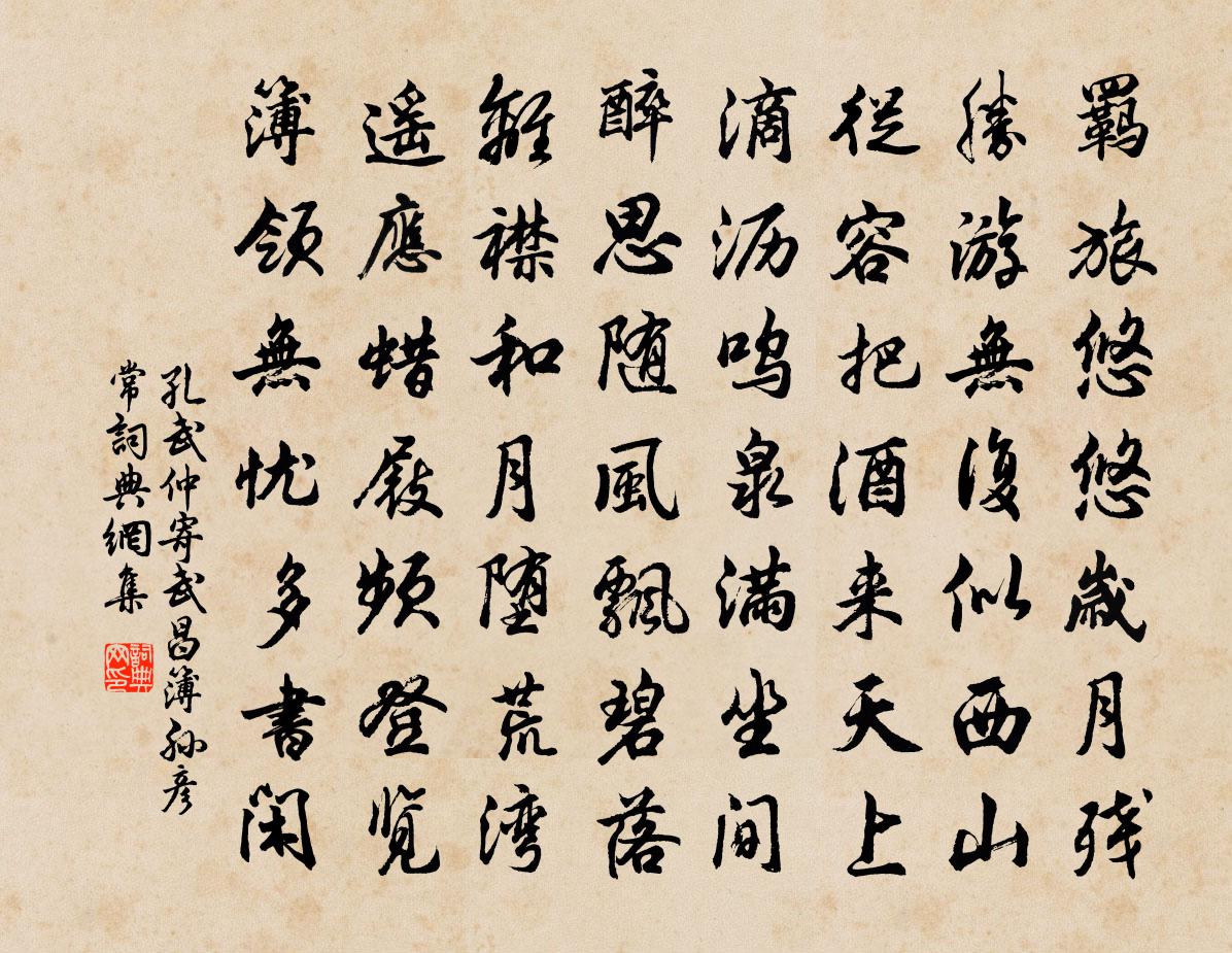 詩詞名句歷史字典書法欣賞書法字典國語詞典說文解字康熙字典古漢語字典標 題 作 者 詩 句 寄武昌簿孫彥常作者:孔武仲 朝代:宋代寄武昌簿孫彥常原文羈旅悠悠歲月殘,勝游無復似西山。從容把酒來天上,滴瀝嗚泉滿坐間。醉思隨風飄碧落,離襟和月墮荒灣。遙應蠟屐頻登覽,簿領無憂多書閒。詩詞問答問:寄武昌簿孫彥常的作者是誰?答:孔武仲問:寄武昌簿孫彥常寫於哪個朝代?答:宋代孔武仲寄武昌簿孫彥常書法欣賞寄武昌簿孫彥常書法作品詩詞推薦南園趙嘏〔唐代〕雨過郊園綠尚微,落花惆悵滿塵衣。芳尊有酒無人共,日暮看山還獨歸。晨興韓偓〔唐代〕曉景山河爽,閒居巷陌清。已能消滯念,兼得散餘酲。汲水人初起,回燈燕暫驚。放懷殊未足,圓隙已塵生。諾惺庵枕上范成大〔宋代〕噩夢驚回曉枕寒,青燈猶照藥爐邊。紙窗弄色如朧月,又了浮生一夜眠。獵橋午憩坐睡楊萬里〔宋代〕路是山腰帶,苔為石面花。隔溪聞鳥語,疏竹見人家。雨足睛須耐,神勞睡卻佳。睡魔推不去,知我怪新茶。宮詞一百首岳珂〔宋代〕夜深雪壓內門前,一榻還驚四璧天。上相傳觴妻擁炭,歸來{右鼻右乾}息頓安眠。送杜尉秩滿還天台劉宰〔宋代〕眼看時事廢因循,官路三年子獨勤。袖有新詩頻教我,邑無長策可留君。向來過計尤周隕,此去何時靜楚氣。未必沐浴詹初〔宋代〕暮春河水暖春暉,浴罷悠悠自坐磯。弄柳乘風興未盡,高歌一曲日西歸。隴西行謝惠連〔南北朝〕未若蔽牛。永保液瞞。嗟我君子。勖爾何言。雜劇·西遊記·第六本楊景賢〔元代〕萬里香風下九天仙真鶴馭盡翩翩一誠上達祗園地永保皇圖億萬年 第二十一折貧婆心印(唐僧一行人上,雲)脫次南真宮龔道士壁間韻樓鑰〔宋代〕幽舍足留客,疎篁不用林。相過幾樽酒,清坐一瑤琴。野鶴伴仙隱,閒雲寄此心。黃冠如有許,來者為低簪。褒城驛二首元稹〔唐代〕容州詩句在褒城,幾度經過眼暫明。今日重看滿衫淚,可憐名字已前生。憶昔萬株梨映竹,遇逢黃令醉殘春。梨枯竹鄭燮〔清代〕一節復一節,千枝攢萬葉。 我自不開花,免撩蜂與蝶。 傷友李群玉〔唐代〕玉棺來九天,鳧舄掩窮泉。蕪沒池塘嶼,淒涼翰墨筵。短期存大夢,舊好委浮煙。我有幽蘭曲,因君遂絕弦。湘中雜詠十絕王炎〔宋代〕中流四顧浪花平,雙櫓夾船鵝鸛鳴。欸乃聲中山水綠,不妨緩緩計歸程。秋釋奠於學萬舍人示詩次韻以酬虞儔〔宋代〕昔年泮水忽專城,文會何妨一再盟。已媿簿書成俗吏,卻陳俎豆見諸生。一時同隊魚猶在,千載重來鶴更清。況有西風王安石〔宋代〕少年不知秋,喜聞西風生。老大多感傷,畏此蟠蟀鳴。況乃舍親友,抱病獨遠行。中夜臥不周,惻惻感我情。起視猛虎詞儲光羲〔唐代〕寒亦不憂雪,飢亦不食人。人肉豈不甘,所惡傷明神。太室為我宅,孟門為我鄰。百獸為我膳,五龍為我賓。蒙馬題舊拄杖齊己〔唐代〕親采匡廬瀑布西,層崖懸壁更安梯。攜行三十年吟伴,未有詩人□□□。和李光化秋詠四首其一曉范仲淹〔宋代〕牆外轆轤響,樓前江漢欹。曙光和月色,猶記早朝時。景定壬戌除夜丁石〔宋代〕羅列椒盤人未眠,紅爐圍坐笑燈前。時光過隙那知老,才到雞鳴又一年。名句推薦雁行緣石徑,魚貫度飛梁。鮑照《代出自薊北門行》 婦姑相喚浴蠶去,閒看中庭梔子花。王建《雨過山村》 萬里無人收白骨,家家城下招魂葬。張籍《征婦怨》 葉暗乳鴉啼,風定老紅猶落。蔣元龍《好事近·葉暗乳鴉啼》 君子以遏惡揚善,順天休命。佚名《易傳·象傳上·大有》 腸斷月明紅豆蔻,月似當時,人似當時否?納蘭性德《鬢雲松令·枕函香》 佇立傷神。無奈輕寒著摸人。朱淑真《減字木蘭花·春怨》 靡蕪盈手泣斜暉,聞道鄰家夫婿歸。魚玄機《閨怨》 舉杯邀明月,對影成三人。李白《月下獨酌四首·其一》 日上,正赤如丹,下有紅光,動搖承之。姚鼐《登泰山記》