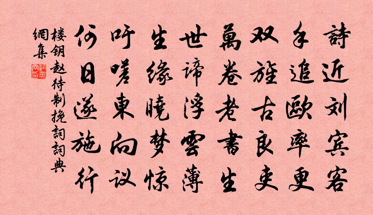 詩詞名句歷史字典書法欣賞書法字典國語詞典說文解字康熙字典古漢語字典標 題 作 者 詩 句 趙待制輓詞作者:樓鑰 朝代:宋代趙待制輓詞原文詩近劉賓客,手追歐率更。雙旌古良吏,萬卷老書生。世諦浮雲薄,生緣曉夢驚。吁嗟東向議,何日遂施行。詩詞問答問:趙待制輓詞的作者是誰?答:樓鑰問:趙待制輓詞寫於哪個朝代?答:宋代樓鑰趙待制輓詞書法欣賞趙待制輓詞書法作品詩詞推薦病中書懷呈友人溫庭筠〔唐代〕逸足皆先路,窮郊獨向隅。頑童逃廣柳,羸馬臥平蕪。黃卷嗟誰問,朱弦偶自娛。鹿鳴皆綴士,雌伏竟非夫。采地三堂道中寄公卷吳則禮〔宋代〕久坐懶成癖,誰令老作魔。逢人說江海,著處是關河。隴底烽燧暗,海門鴻雁多。西樓雲水白,猶奈酒樽麽。過楊二渡三首楊萬里〔宋代〕春跡無痕可得尋,不將詩眼看春心。鶯邊楊柳鷗邊草,一日青來一日深。鳳仙王鎡〔宋代〕鳳簫聲斷彩鸞來,弄玉仙遊竟不回。英氣至今留世上,年年化作此花開。經嚴秘校維故宅武元衡〔唐代〕掩淚山陽宅,生涯此路窮。香銷芸閣閉,星落草堂空。麗藻浮名里,哀聲夕照中。不堪投釣處,鄰笛怨春風。古柏釋文珦〔宋代〕庭前雙柏子,曾入祖師禪。黛色參天古,貞心比石堅。材堪舟楫用,名在邶鄘篇。歲晚冰霜里,清標獨蔚然。飲酒 其八陶淵明〔魏晉〕青松在東園,眾草沒其姿,凝霜殄異類,卓然見高枝。連林人不覺,獨樹眾乃奇。提壺撫寒柯,遠望時復為。吾生送僧自然過許蜂薛嵎〔宋代〕知心逢豈易,語別喜從容。因得靜中趣,又尋雲外峰。吟篇題在竹,拄杖曲如松。後會期難定,來書勿厭重。城南劉克莊〔宋代〕瀕江多海物,比屋盡閩人。四野方多壘,三間欲卜鄰。古斷腸曲三十首周端臣〔宋代〕舊家院落舊秋風,只有當時人不同。惆悵一窗無用月,為誰涼夜曬梧桐。仙人篇曹植〔魏晉〕仙人攬六著。對博太山隅。湘娥拊琴瑟。秦女吹笙竽。玉樽盈桂酒。河伯獻神魚。四海一何局。九州安所知。韓終和通判弟隨亨書感韻柴望〔宋代〕風沙萬里夢堪驚,地老天荒只此情。世上但知王蠋義,人間惟有伯夷清。堂前歸燕春何處,花外啼鵑月幾更。莫話過鉛山石井李彌遜〔宋代〕抱石寒泉涌帝青,淨涵窟宅駐鯢鯨。誰知潤物功無盡,只見岩腰鑒樣平。薛記室收過莊見尋率題古意以贈王績〔唐代〕伊昔逢喪亂,歷數閏當餘。豺狼塞衢路,桑梓成丘墟。余及爾皆亡,東西各異居。爾為背風鳥,我為涸轍魚。逮承寄廣南劉僕射殷文圭〔唐代〕戰國從今卻尚文,品流才子作將軍。畫船清宴蠻溪雨,粉閣閒吟瘴嶠雲。暴客卸戈歸惠政,史官調筆待儒勛。漢儀次韻徐直翁仙霞嶺近衢州陳著〔宋代〕道大誰能用,功名一念微。釋然文石夢,輕似岫雲歸。霞嶺空重歷,天書的又飛。翻身鳳池去,分閫卻成非。題資州東岩鄭鋼〔宋代〕逕轉得幽谷,雲岩屹相向。谽谺偃重檐,彎環依疊嶂。緬想融結初,鐫鑱自天匠。了無斧鑿跡,但覺盤根壯。深可菩薩蠻(有寄)蘇軾〔宋代〕城隅靜女何人見。先生日夜歌彤管。誰識蔡姬賢。江南顧彥先。先生那久困。湯沐須名郡。惟有謝夫人。從來見擬對花邵雍〔宋代〕新花色鮮艷,故花色憔悴。明朝花更開,新花何有異。游山西村陸游〔宋代〕莫笑農家臘酒渾,豐年留客足雞豚。山重水複疑無路,柳暗花明又一村。簫鼓追隨春社近,衣冠簡樸古風存。從今名句推薦田家占氣候,共說此年豐。孟浩然《田家元日》 月色燈山滿帝都,香車寶蓋隘通衢。李商隱《觀燈樂行》 平皋行雁下,曲渚雙鳧出。崔元翰《奉和聖制重陽旦日百寮曲江宴示懷》 白鳥朱荷引畫橈,垂楊影里見紅橋,欲尋往事已魂消。王士禎《浣溪沙·紅橋》 不是冤家不聚頭,冤家相聚幾時休?馮夢龍《警世通言·卷二》 白日來深殿,青雲滿後塵杜甫《寄李十二白二十韻》 上所用者,奸亦為忠;上所棄者,忠亦為奸。來俊臣《羅織經·察奸卷第八》 掛席幾千里,名山都未逢。孟浩然《晚泊潯陽望廬山》 多少天涯未歸客,盡借籬落看秋風。唐寅《菊花》 岸邊兩兩三三,浣沙游女。柳永《夜半樂·凍雲黯淡天氣》