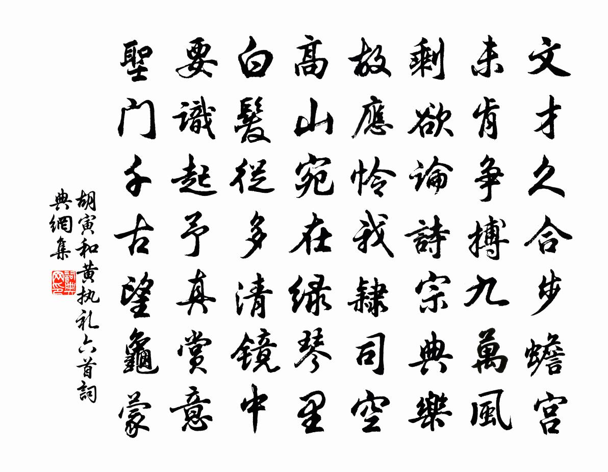 詩詞名句歷史字典書法欣賞書法字典國語詞典說文解字康熙字典古漢語字典標 題 作 者 詩 句 和黃執禮六首作者:胡寅 朝代:宋代和黃執禮六首原文文才久合步蟾宮,未肯爭搏九萬風。剩欲論詩宗典樂,故應憐我隸司空。高山宛在綠琴里,白髮從多清鏡中。要識起予真賞意,聖門千古望龜蒙。詩詞問答問:和黃執禮六首的作者是誰?答:胡寅問:和黃執禮六首寫於哪個朝代?答:宋代胡寅和黃執禮六首書法欣賞和黃執禮六首書法作品詩詞推薦送道人歸舊岩方乾〔唐代〕舊岩終副卻歸期,岩下有人應識師。目睹嬰孩成老叟,手栽松柏有枯枝。前山低校無多地,東海淺於初去時。若把趙金氏墓許復道〔宋代〕進骨青山足古今,北邙深鎖暮雲平。夜台長寄千秋烈,子燕何須吊王京。漢陽即事儲光羲〔唐代〕楚國千里遠,孰知方寸違。春遊歡有客,夕寢賦無衣。江水帶冰綠,桃花隨雨飛。九歌有深意,捐佩乃言歸。浮雲樓和趙嘏曾鞏〔宋代〕萬里聊供遠眼開,檐前不盡水聲哀。朝雲尚拂陽台去,羽獵曾圍夢澤來。解帶欲留長日坐,傾壺難飲故人杯。邅窮杏花吳融〔唐代〕粉薄紅輕掩斂羞,花中占斷得風流。軟非因醉都無力,凝不成歌亦自愁。獨照影時臨水畔,最含情處出牆頭。裴回劉、阮妻二首元稹〔唐代〕仙洞千年一度閒,等閒偷入又偷回。桃花飛盡東風起,何處消沉去不來。芙蓉脂肉綠雲鬟,罨畫樓台青黛山。千樹走筆和張功父玉照堂十絕楊萬里〔宋代〕梅詩脫草巳流傅,要赴梅前更雪前。喚醒誠齋山里夢,落英如雪枕磚眠。龍山送客二首楊萬里〔宋代〕念念還鄉未得還,偶因送客到龍山。分明認得西歸路,只是回車卻入關。登樓寄胡家兄弟張籍〔唐代〕獨上西樓盡日閒,林煙演漾鳥蠻蠻。謝家兄弟重城裡,不得同看雨後山。倪秀才惠橄欖二首趙蕃〔宋代〕故憐枉作近南官,南果何曾上客盤。橄欖忽來蕉作裹,欣然卻作近鄉看。小重山(席上和人韻送李子永提乾)辛棄疾〔宋代〕旋制離歌唱未成。陽關先畫出,柳邊亭。中年懷抱管弦聲。難忘處,風月此時情。夜雨共誰聽。盡教清夢去,兩三至揚州文天祥〔宋代〕苦作江頭乞食翁,一層破廟五更風。眼前境界身何許,始悟人間萬法空。頌古三十一首釋原妙〔宋代〕銀蟾出海照無私,處處分明是阿誰。見面不須重問訊,從教日炙與風吹。送張子宓分教澧陽樓鑰〔宋代〕澧陽渺何許,遠在天盡頭。頃為郡樓記,圖志不可求。王侯錄故實,頗亦費冥搜。忠以申明著,學有車公優。外挹寒雀楊萬里〔宋代〕百千寒雀下空庭,小集梅梢話晚晴。特地作團喧殺我,忽然驚散寂無聲。春秋戰國門公子無忌周曇〔唐代〕按劍臨籠震咄呼,鷂甘梟戮伏鳩辜。能憐鈍拙誅豪俊,憫弱摧強真丈夫。寄鄭谷郎中齊己〔唐代〕詩心何以傳,所證自同禪。覓句如探虎,逢知似得仙。神清太古在,字好雅風全。曾沐星郎許,終慚是斐然。偈釋善清〔宋代〕隨隨隨,昔昔昔,隨隨隨後無人識。夜來明月上高峰,元來只是這個賊。甿入城行趙執信〔清代〕村甿終歲不入城,入城怕逢縣令行。行逢縣令猶自可,莫見當衙據案坐。但聞坐處已驚魂,何事喧轟來向村。鋃鐺和孫莘老題召伯斗野亭張舜民〔宋代〕我登甘棠埭,所向殊未平。舟行汙池中,頓失江湖青。蛙聲亂僧唄,鴟吻赫市甍。意向伯喈死,苟與衛士傾。開池名句推薦尋河愁地盡,過磧覺天低。岑參《磧西頭送李判官入京》 東風吹雨過青山,卻望千門草色閒。盧綸《長安春望》 道之以政,齊之以刑,民免而無恥。孔子弟子《論語·為政篇》 清明時節雨紛紛,路上行人慾斷魂。杜牧《清明》 人之事兄,不可同於事父,何怨愛弟不及愛子乎?顏之推《顏氏家訓·兄弟篇》 氣性乖張,多是夭亡之子;語言深刻,終為薄福之人。王永彬《圍爐夜話·第二九則》 大兒鋤豆溪東,中兒正織雞籠。辛棄疾《清平樂·村居》 鳥雀呼晴,侵曉窺檐語。周邦彥《蘇幕遮·燎沉香》 天蒼蒼,野茫茫。風吹草低見牛羊。佚名《敕勒歌》 故園書動經年絕,華發春唯滿鏡生。崔塗《春夕》