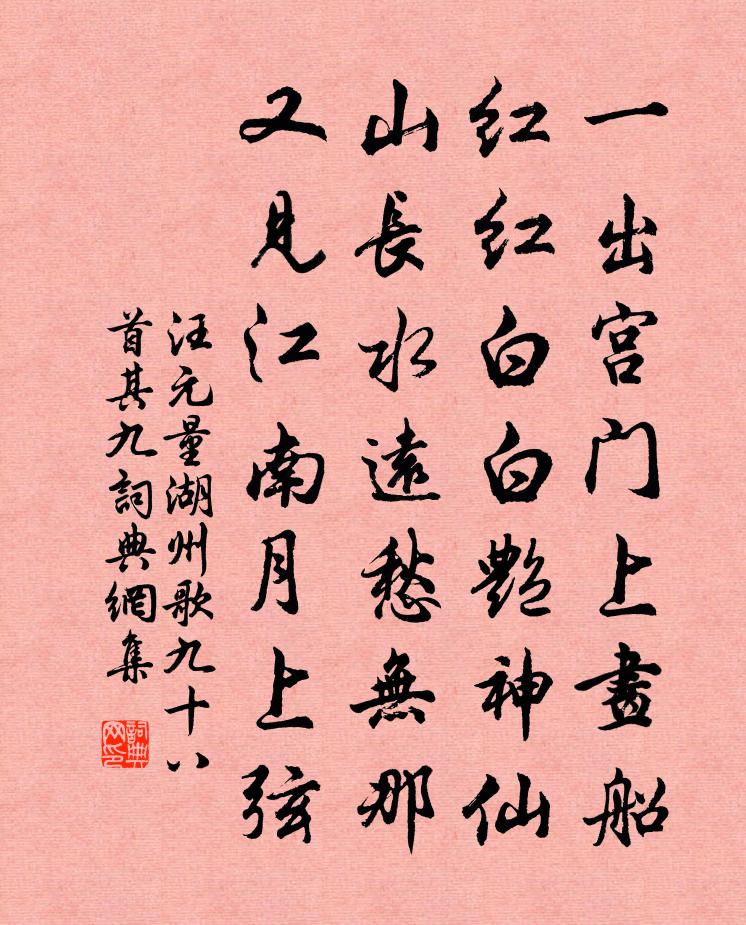 一出宮門上畫船,紅紅白白艷神仙。山長水遠愁無那,又見江南月上弦。