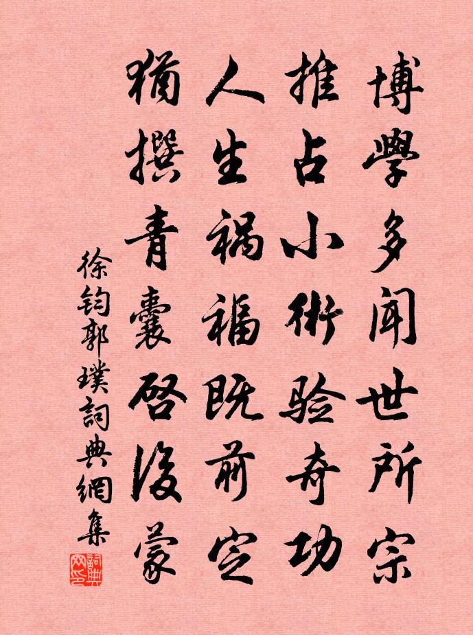 詩詞名句歷史字典書法欣賞書法字典國語詞典說文解字康熙字典古漢語字典標 題 作 者 詩 句 郭璞作者:徐鈞 朝代:宋代郭璞原文博學多聞世所宗,推占小術驗奇功。人生禍福既前定,猶撰青囊啟後蒙。詩詞問答問:郭璞的作者是誰?答:徐鈞問:郭璞寫於哪個朝代?答:宋代徐鈞郭璞書法欣賞郭璞書法作品詩詞推薦贈海珠湛老李昴英〔宋代〕也曾勘破到風幡,坐得形枯鬢早斑。衲子指為真鐵漢,江神幻出小金山。華亭浪急翻船入,蔥嶺雲深挈履還。香燼初聞貶謫,續喜量移,登乾越亭贈鄭校書劉長卿〔唐代〕青青草色滿江洲,萬里傷心水自流。越鳥豈知南國遠,江花獨向北人愁。生涯已逐滄浪去,冤氣初逢渙汗收。何事題徐浩書法華經王安石〔宋代〕一切法無差,水牛生象牙。莫將無量義,欲覓妙蓮華。豆葉黃/憶王孫陳克〔宋代〕樹頭初日鵓鳩鳴。野店山橋新雨晴。短褐無泥竹杖輕。水泠泠。梅片飛時春草青。立秋雨院中有作杜甫〔唐代〕山雲行絕塞,大火復西流。飛雨動華屋,蕭蕭梁棟秋。窮途愧知己,暮齒借前籌。已費清晨謁,那成長者謀。解衣頌古二十五首釋崇岳〔宋代〕拄地撐天全體用,夕陽影里不藏身。有時獨坐孤峰頂,寂寂猶聞落葉頻。陳無逸張仲實皆授徒城中相望遣悶小詩往問戴表元〔宋代〕間身不用苦咨嗟,隨分風流閱歲華。白日垂簾同賣卜,清流岸幘勝趨衙。飛書漆槧詩無草,夾注高檠眼未花。更喜謁諸葛丞相廟陸游〔宋代〕漢中四百天所命,老賊方持太阿柄。區區梁益豈足支,不忍安坐觀異姓。遺民亦知王室在,閏位那乾天統正。公雖華亭百詠安公像許尚〔宋代〕浮缽來滄海,幡然厭世塵。補陀崖畔月,長照定中身。旅寓書事杜荀鶴〔唐代〕日日驚身事,淒淒欲斷魂。時清不自立,發白傍誰門。中路殘秋雨,空山一夜猿。公卿得見面,懷抱細難言。贈日本僧觀語孟孫華孫〔元代〕日本沙門性頗靈,自攜語孟到禪扄。也知中國尊朱子,不學南方誦墨經。於中好 詠史納蘭性德〔清代〕馬上吟成促渡江,分明閒氣屬閨房。生憎久閉金鋪暗,花冷回心玉一床。添哽咽,足淒涼。誰教生得滿身香。只今南山羅漢贊十六首黃庭堅〔宋代〕香醉山中夏木陰,來禽磊磊承風霧。山鳥沖飛墮聖前,小僧澡雪羞時供。胡奴知是說法時,故奉金爐聽時事。有說東兵長句十韻杜牧〔唐代〕上黨爭為天下脊,邯鄲四十萬秦坑。狂童何者欲專地,聖主無私豈玩兵。玄象森羅搖北落,詩人章句詠東征。雄如次張守韻四首劉子翬〔宋代〕促席山堂夜,寒燈吐碎金。酒分鄰瓮美,栗爆地爐深。疏懶難堪事,紛華易壞心。自惟貪寸祿,雙鬢老侵尋。德壽宮即事六首任希夷〔宋代〕萬年觴舉慶重華,百辟需雲始拜嘉。壽宴開時先雪宴,天共舞罷帶宮花。及第後寄廣陵故人(一作寄淮南李相公紳)章孝標〔唐代〕及第全勝十政官,金鞍鍍了出長安。馬頭漸入揚州郭,為報時人洗眼看。雨後行菜圃蘇軾〔宋代〕夢回聞雨聲,喜我菜甲長。平明江路濕,並岸飛兩槳。天公真富有,膏乳瀉黃壤。霜根一蕃滋,風葉漸俯仰。未任莫笑陸游〔宋代〕莫笑窮閻叟,人生亦已稀。眾中容後死,險處得先歸。初服還韋布,晨飧美蕨薇。床頭周易在,拾此復疇依?雨後清曉梳頭,讀書懷古堂二首楊萬里〔宋代〕蟲響余霄寂,荷妝赴曉鮮。梳頭花霧裡,照水柳風前。舊雨仍今雨,新年勝故年。登城有佳眺,秋稼正連天。名句推薦善謀生者,但令長幼內外,勤修恆業,而不必富其家王永彬《圍爐夜話·第九則》 樸實渾厚,初無甚奇,然培子孫之元氣者,必此人也。王永彬《圍爐夜話·第十九則》 滄海桑田,謂世事之多變;河清海晏,兆天下之昇平。程登吉《幼學瓊林·卷一·地輿》 此際閒愁郎不共,月移窗罅春寒重。王士禎《蝶戀花·和漱玉詞》 南湖秋水夜無煙,耐可乘流直上天。李白《游洞庭湖五首·其二》 細柳開營揖天子,始知灞上為嬰孩李白《司馬將軍歌》 游女昔解佩,傳聞於此山孟浩然《萬山潭作》 莫道桑榆晚,為霞尚滿天。劉禹錫《酬樂天詠老見示》 留連戲蝶時時舞,自在嬌鶯恰恰啼。杜甫《江畔獨步尋花·其六》 綠雲擾擾,梳曉鬟也;杜牧《阿房宮賦》
