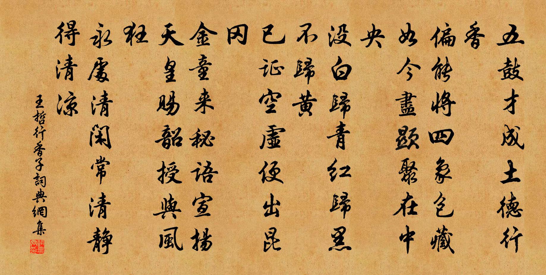 詩詞名句歷史字典書法欣賞書法字典國語詞典說文解字康熙字典古漢語字典標 題 作 者 詩 句 行香子作者:王哲 朝代:元代行香子原文五鼓才成,土德行香。偏能將、四象包藏。如今盡顯,聚在中央。沒白歸青,紅歸黑,不歸黃。已證空虛,便出崑岡。金童來、秘語宣揚。天1|1皇賜韶,授與風狂。永處清閒,常清靜,得清涼。詩詞問答問:行香子的作者是誰?答:王哲問:行香子寫於哪個朝代?答:元代問:行香子是什麼體裁?答:詞王哲行香子書法欣賞行香子書法作品詩詞推薦西江月向子諲〔宋代〕微步凌波塵起,弄妝滿鏡花開。春心擲處眼頻來。秀色著人無耐。舊事如風無跡,新愁似水難裁。相思日夜夢陽台夢中作四首曹勛〔宋代〕閬苑東頭白玉京,五雲拂拂護層城。龍鸞高並旌幢過,知是仙班退紫清。車駕幸玉津園晚歸進詩洪邁〔宋代〕五更猶自雨如訂,無限都人仰翠華。翻手作雲方悵望,舉頭見日共驚嗟。天公的有施生妙,帝力堪同造物夸。上苑偶題陳宓〔宋代〕忿欲喪軀真狂死,孝忠致命勝偷生。此心一片陽剛德,莫遣纖毫暫不明。秋柳四首·其二王士禎〔清代〕娟娟涼露欲為霜,萬縷千條拂玉塘。浦里青荷中婦鏡,江乾黃竹女兒箱。空憐板渚隋堤水,不見琅琊大道王。若過養竹記白居易〔唐代〕 竹似賢,何哉?竹本固,固以樹德,君子見其本,則思善建不拔者。竹性直,直以立身;君子見其性,則思中觀音大士贊釋原妙〔宋代〕大海波心,磐陀石上。真觀淨觀,是相非相。如月在天,無水不現。水月俱捐,如何瞻仰。咄,切忌妄想。春日雜興王同祖〔宋代〕輕寒漠漠雨霏霏,春院人閒半掩扉。風力不知多幾許,出門只見杏花飛。句晃貫之〔宋代〕思與諸公論人物,試憑清議賦招魂。草堂不見杜陵老,折得青松度水歸。感春三首張耒〔宋代〕我昨西來到昌谷,主人致酒留我宿。坐中少年美如玉,高歌清歡春夜促。還家病酒對殘春,東風落花吹滿屋。出無登棲霞寺塔蔣渙〔唐代〕三休尋磴道,九折步雲霓。瀍澗臨江北,郊原極海西。沙平瓜步出,樹遠綠楊低。南指晴天外,青峰是會稽。次韻楊宰二首陳造〔宋代〕早緣官事坐兒痴,晚悟騷人賦汨泥。耐病久閒金腰褭,扶衰時近玉東西。詞場尚友心終在,詩力逢君價自低。欲試庵中睡起五頌寄海印長老韓維〔宋代〕四風標韻出風塵,高下雖殊一色均。為我終朝談實相,參差庭柏敞精神。巫山一段雲馬鈺〔元代〕玉女開金殿,金公鎖玉關。真清真淨養胎仙。雲透坎離間。貪看靈光上下。忘了之乎也者。神珠吐出九般霞。跨鶴趙僉見過不值有詩次韻方岳〔宋代〕向來曾管重湖月,五老當門但讀書。見說邦人猶感慨,恨予不學藺相如。扇子詩李石〔宋代〕煙雨青絲百尺樓,江南樹樹拂人頭。此間豈是藏樽處,醉里一聲黃鷅鶹。奉寄何正父總乾岳珂〔宋代〕經旬羽懶慣山居,不寫城間一字書。把菊見山新趣倦,泛蓮依水舊交疎。無心是處友麋鹿,有客寄誰烹鯉魚。見說賀新郎黃人傑〔宋代〕突屼金仙屋。素秋深、長空霽雨,萬山如浴。驚破元戎呼小隊,來看飛泉噴玉。正晚谷,清鏡圓熟。還是紫微初度和趙王送峽中軍詩庾信〔南北朝〕樓船聊習戰。白羽試撝軍。山城對卻月。岸陣抵平雲。赤虵懸弩影。流星抱劍文。胡笳遙警夜。塞馬暗嘶羣。客行素梅 其九王冕〔元代〕不向羅浮問醉仙,笑呼孤鶴下吳天。春風吹散梅花雪,香滿西湖載酒船。名句推薦一上高城萬里愁,蒹葭楊柳似汀洲。許渾《鹹陽城東樓 / 鹹陽城西樓晚眺 / 西門》 醉者之墜於車也,雖疾不死。骨節與人同,而犯害與人異,其神全也。列子及其弟子《列子·黃帝》 那堪疏雨滴黃昏。更特地、憶王孫。歐陽修《少年游·欄乾十二獨憑春》 白雲一片去悠悠,青楓浦上不勝愁。張若虛《春江花月夜》 待人寬一分是福,利人實利己的根基。洪應明《菜根譚·概論》 背法而治,此任重道遠而無馬、牛,濟大川而無舡、楫也。商鞅《商君書·弱民》 秋鬢含霜白,衰顏倚酒紅。尹式《別宋常侍》 命里無時,求之不來。馮夢龍《醒世恆言·卷十八》 春來遍是桃花水,不辨仙源何處尋。王維《桃源行》 行人莫問當年事,故國東來渭水流。許渾《鹹陽城東樓 / 鹹陽城西樓晚眺 / 西門》
