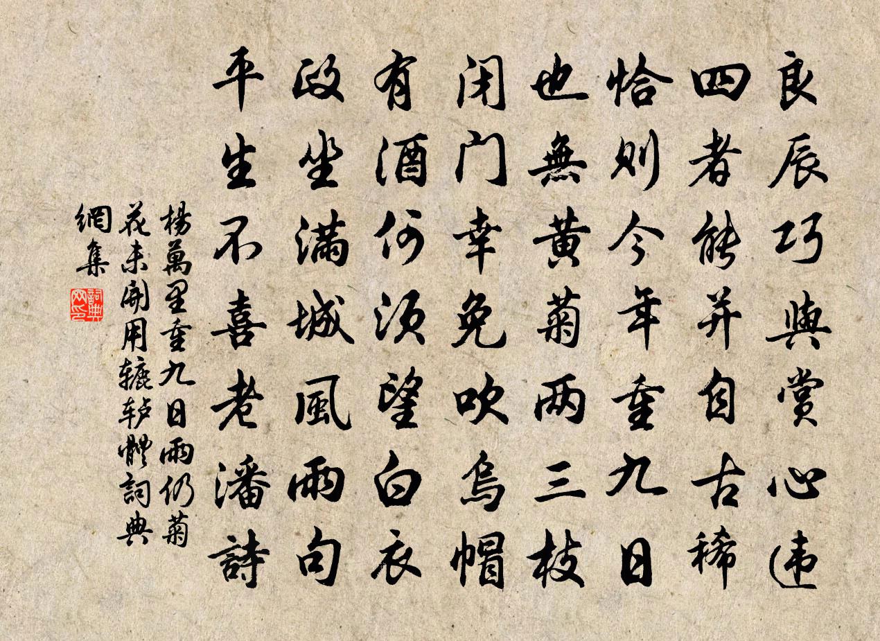 良辰巧與賞心違,四者能並自古稀。恰則今年重九日,也無黃1/1菊兩三枝。