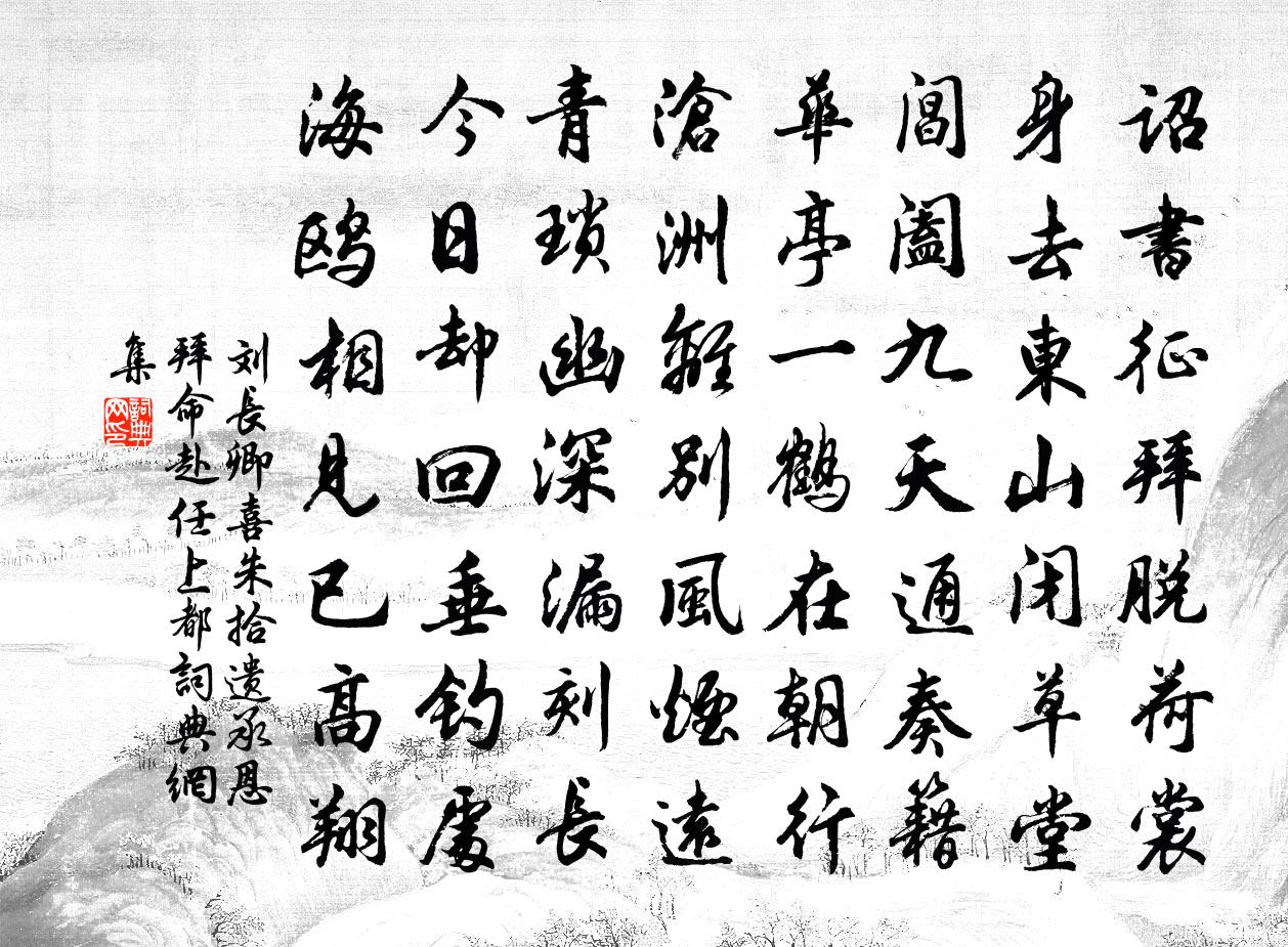 劉長卿喜朱拾遺承恩拜命赴任上都書法欣賞