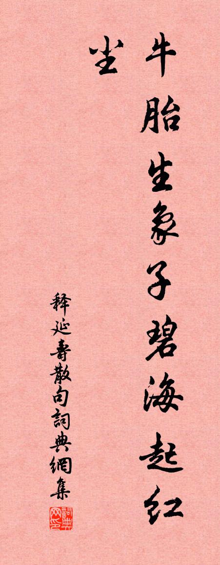 詩詞名句歷史字典書法欣賞書法字典國語詞典說文解字康熙字典古漢語字典標 題 作 者 詩 句 句作者:釋延壽 朝代:宋代句原文牛胎生象子,碧海起紅塵。詩詞問答問:句的作者是誰?答:釋延壽問:句寫於哪個朝代?答:宋代釋延壽句書法欣賞句書法作品詩詞推薦春日汎舟南湖因遍游近港坐間書客所攜四扇張鎡〔宋代〕絲簧同上木蘭船,細草熏熏柳色天。要是有詩方稱此,不然枉作地行仙。酬樂天聞新蟬見贈劉禹錫〔唐代〕碧樹鳴蟬後,煙雲改容光。瑟然引秋氣,芳草日夜黃。夾道喧古槐,臨池思垂楊。離人下憶淚,志士激剛腸。昔聞感興陳造〔宋代〕如鏡江流去,賓士合自羞。病容霜後葉,歸興浪前漚。岐路三生債,風埃一飽謀。山田饒芋栗,珍重故園秋。黃雀行李頻〔唐代〕欲竊高倉集御河,翩翩疑渡畏秋波。朱宮晚樹侵鶯語,畫閣香簾奪燕窠。疏影暗棲寒露重,空城飢噪暮煙多。誰令浣沙溪(黃鐘·第三)周邦彥〔宋代〕樓上晴天碧四垂。樓前芳草接天涯。勸君莫上最高梯。新筍已成堂下竹,落花都上燕巢泥。忍聽林表杜鵑啼。示葛都院釋崇岳〔宋代〕從來佛法無多子,利益人天越古今。棒喝交馳難近傍,信知徹底老婆心。講稿公妓飲問政堂有誚予不來者借韻呈司戶同虞儔〔宋代〕生涯冷淡我胡然,客里空囊愧疚一錢。已負酒杯同笑語。強排詩句斗清妍。官間只起樊籠嘆,內熱真猶膏火煎。試踏歌詞四首·其二劉禹錫〔唐代〕桃蹊柳陌好經過,燈下妝成月下歌。為是襄王故宮地,至今猶自細腰多。清泉院用柱間韻胡仲弓〔宋代〕僧居一路曲通村,日落層巔生暮雲。白石巧於山背出,清泉時向澗邊聞。缽盂未信承龍化,錫杖曾經解虎紛。歸去後園雙松李復〔宋代〕群木喜春妍,凋落寒霜苦。昂藏兩大夫,森然須鬣古。堅姿不可回,正色少媚嫵。清風發好音,和氣琴中語。初夏戲題徐夤〔唐代〕長養薰風拂曉吹,漸開荷芰落薔薇。青蟲也學莊周夢,化作南園蛺蝶飛。懷昔陸游〔宋代〕昔者戍梁益,寢飯鞍馬間。一日歲欲暮,揚鞭臨散關。增冰塞渭水,飛雪暗岐山。悵望釣璜公,英概如可還。挺劍贈徐樵隱趙友直〔宋代〕天命靡有常,空視時運覆。珍重山間翁,抱道庸自玉。欣髯發清興,開軒恣遐矚。空谷閴無人,惟有雲相逐。山翁萬年春 衲衣丘處機〔元代〕衲襖秋來,著身漸覺時相稱。霜天淨。暢懷遊興。不怕西風勁。百片千條,上下穿聯定。寬還正。外疏狂性。內放金陵即事三首王安石〔宋代〕結綺臨春歌舞地,荒蹊狹巷兩三家。東風漫漫吹桃李,非復當時仗外花。滿江紅范成大〔宋代〕山繞西湖,曾同泛、一篙春綠。重會面、未溫往事,先翻新曲。勁柏喬松霜雪後,知心惟有孤生竹。對荒園、猶解遣興三絕舒岳祥〔宋代〕讀書未盡老駸駸,更把殘編往復尋。六籍精微心已耗,只將韓杜子光陰。蝶戀花(西堂竹閣,日氣溫然,戲作)丘崈〔宋代〕逼砌筠窗圍小院。日照花枝,疏影重重見。金鴨無風香自暖。臘寒才比春寒淺。畫景溫溫烘筆硯。閒把安西,六紙細雨遙懷故人李建勛〔唐代〕江雲未散東風暖,溟濛正在高樓見。細柳緣堤少過人,平蕪隔水時飛燕。我有近詩誰與和,憶君狂醉愁難破。昨夜姚大本以李義山詩韻作詩題息繼作朱槔〔宋代〕隱几心疑水,攜杯影照山。六窗開畔岸,一榻埽中間。柏子方饒舌,花枝忽解顏。定余牛逢牧,夢起蝶相關。閶闔名句推薦秋菊有佳色,裛露掇其英。陶淵明《飲酒·其四》 芙蓉如面柳如眉,對此如何不淚垂。白居易《長恨歌》 多少新亭揮淚客,誰夢中原塊土。劉克莊《賀新郎·送陳真州子華》 莫笑他人老,終須還到老。佚名《增廣賢文·上集》 畫圖省識春風面,環珮空歸夜月魂。杜甫《詠懷古蹟五首·其三》 高岸為谷,深谷為陵。佚名《十月之交》 俯飲一杯酒,仰聆金玉章。韋應物《郡齋雨中與諸文士燕集》 明月隨良掾,春潮夜夜深。王昌齡《送郭司倉》 相看兩不厭,只有敬亭山。李白《獨坐敬亭山》 林花著雨胭脂濕,水荇牽風翠帶長。杜甫《曲江對雨》