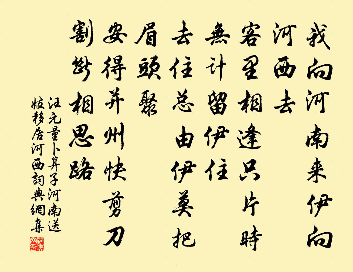 我向河南來,伊向河西去。客里相逢只片時,無計留伊住。