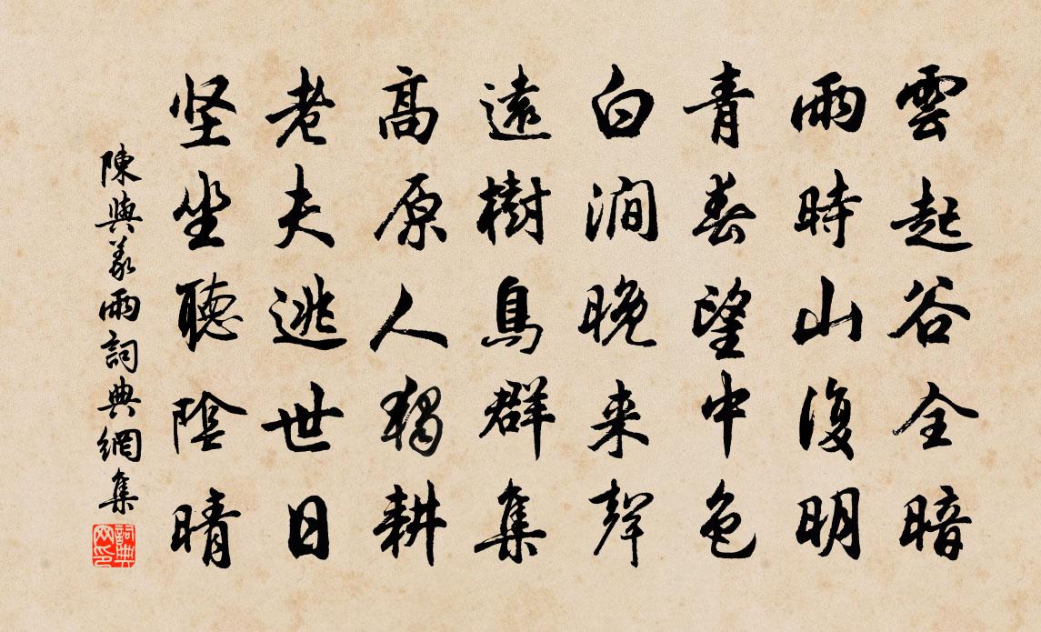 雲起谷全暗,雨時山復明。青春望中色,白澗晚來聲。