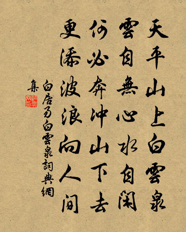 天平山上白雲泉,雲自無心水自閒。何必奔沖山下去,更添波浪向人間。