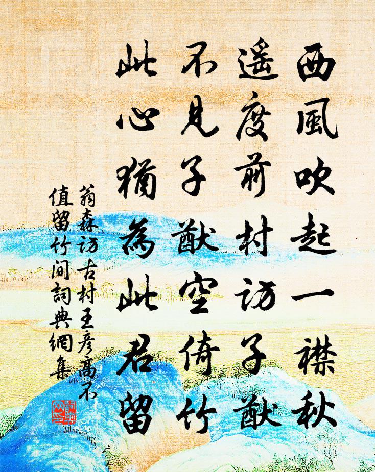 詩詞名句歷史字典書法欣賞書法字典國語詞典說文解字康熙字典古漢語字典標 題 作 者 詩 句 訪古村王彥高不值留竹間作者:翁森 朝代:宋代訪古村王彥高不值留竹間原文西風吹起一襟秋,遙度前村訪子猷。不見子猷空倚竹,此心猶為此君留。詩詞問答問:訪古村王彥高不值留竹間的作者是誰?答:翁森問:訪古村王彥高不值留竹間寫於哪個朝代?答:宋代翁森訪古村王彥高不值留竹間書法欣賞訪古村王彥高不值留竹間書法作品詩詞推薦偈頌七十八首釋正覺〔宋代〕玉線金針相續難,劫壺空處妙投關。香林煙暖風排雪,月窟冰寒影轉山。里許借功方得活,那時退位不知閒。宗家度芙蓉嶺洪邁〔宋代〕幽泉端為誰,放溜雜琴築。山深春未老,泛泛亂蕊馥。娟娟菖蒲花,可玩不可觸。靈根盤翠崖,老作蛙蚓蹙。褰裳山居詩釋延壽〔宋代〕野景陶情皆得意,凡夫舉目盡堪愁。秦川幾度埋番骨,棘路還曾聳玉樓。幻體不知波上沫,狂心須認鏡中頭。浮生生查子佚名〔宋代〕朔風吹凍雲,雲破天容碧。新月過溪來,隱見橫雲色。天與水爭妍,花與月爭白。一倩管城君,寄此春訊息。贈臨川浦城昌鄧二術士曾豐〔宋代〕試出希夷手,偷傳混沌機。不容天地遁,可使鬼神歸。為我推奇偶,從今驗是非。萬猶失其一,卻更問 * 。詠史下蜀先主陳普〔宋代〕北投南走若窮猿,極目蒼梧欲斷魂。如許英雄不成事,止緣的是靖王孫。送曹比部赴袁州鄭獬〔宋代〕船頭獵獵兩旗翻,六月江風灑面寒。一日卻稱新太守,十年曾是舊郎官。中間憂患誠為甚,向老風情亦未闌。紫背中夜起出門月露浩然歸坐燈下有賦陸游〔宋代〕月白萬瓦霜,露重四山雨。開門忽驚嘆,秋色已如許!去蜀如昨日,坐閱四寒暑。無才屏朝跡,有罪宜野處。平生荊山夜泊與親友遇許彬〔唐代〕山海兩分歧,停舟偶此期。別來何限意,相見卻無詞。坐永神疑夢,愁多鬢欲絲。趨名易遲晚,此去莫經時。獲硯劉克莊〔宋代〕二硯溫如玉琢成,信知天地有精英。馬肝紫潤尤宜沐,鵒眼青圓宛似生。未愛潘郎呼作友,便教米老拜為兄。今年閨情陳允平〔宋代〕閒拈花片貼紗窗,繡幕斜飛燕子雙。細數歸期相次近,倚樓日日望春江。卜運算元(壽族弟藻夫婦八十)陳著〔宋代〕月下百年緣,天上雙星樣。九秩齊開自是稀,清健那堪兩。紅葉景翻新, * 香宜晚。笑擁眉開祝壽聲,滿勸鴛鴦殘春感事十首方回〔宋代〕格磔禽穿戶,延緣蟻上衣。雨來山氣潤,花過樹陰肥。去去春如夢,行行慕獨歸。偶無賓友至,自取一杯揮。閒中口占數絕觀書困甚鄭清之〔宋代〕眼欲觀書身欲眠,斜拖黃捲曲肱邊。不須身眼爭然否,試待醒來問孝先。送李評事赴潭州使幕錢起〔唐代〕湖南遠去有餘情,蘋葉初齊白芷生。謾說簡書催物役,遙知心賞緩王程。興過山寺先雲到,嘯引江帆帶月行。幕下清明後一日同諸友湖上值雨韓元吉〔宋代〕出遊初不計陰晴,聊喜湖山信馬行。弱柳自隨煙際綠,幽花還傍雨邊明。嫩蒲碧水人家好,密竹疏鬆野寺清。爛醉憶嵇師奧觀梅並貴行弟歿後之思薛嵎〔宋代〕不到嵇師今幾春,淒涼疋馬去無因。同遊人葬梅花下,應笑花開不見人。釣台艾性夫〔宋代〕自有諸公作帝師,故人相與竟何辭。可能密密同床話,不及周南第一詩。烏鵲李覯〔宋代〕烏鵲翩翩競羽毛,南飛無樹過良宵。就中管得他人事,祗與天孫倩作橋。簡贈吳仲權鎰趙蕃〔宋代〕江西名士多所識,盡道延陵有異孫。賦就早能傳學子,詩成晚更徹宗門。經過縣郭辦相覓,邂逅心期欲暫論。禁省名句推薦永懷愁不寐,松月夜窗虛。孟浩然《歲暮歸南山 / 歸故園作 / 歸終南山》 繞池閒步看魚游,正值兒童弄釣舟。白居易《觀游魚》 枯楊枯楊爾生稊,我獨七十而孤棲。李白《雉朝飛》 養心須淡泊,凡足以累吾心者勿為也。王永彬《圍爐夜話·第九八則》 車轔轔,馬蕭蕭,行人弓箭各在腰。杜甫《兵車行》 勿以身貴而賤人,勿以獨見而違眾。姜子牙《六韜·龍韜·立將》 欲心難厭如溪壑,財物易盡若漏卮。程登吉《幼學瓊林·卷三·人事》 秋晚蓴鱸江上,夜深兒女燈前。辛棄疾《木蘭花慢·滁州送范倅》 山重水複疑無路,柳暗花明又一村。陸游《游山西村》 守身不敢妄為,恐貽羞於父母王永彬《圍爐夜話·第三四則》